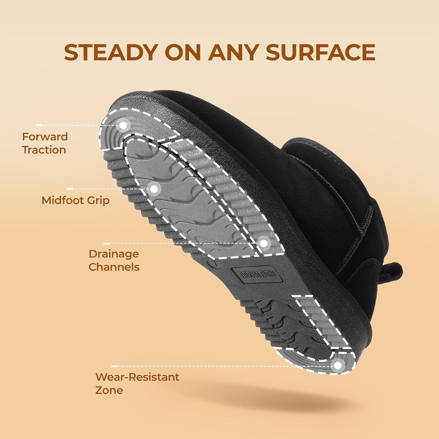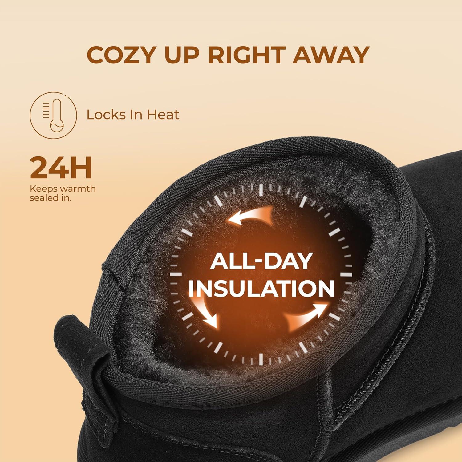DREAM PAIRS Ankle Winter Mini Boots for Women Genuine Suede Faux Fur Lining Water Resistant Warm Snow Boots Slip On Memory Foam Comfort Booties FuzzyClassic(Black)