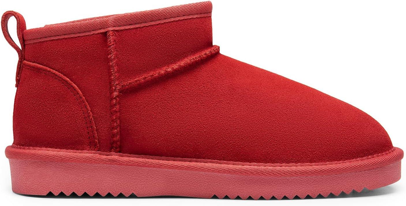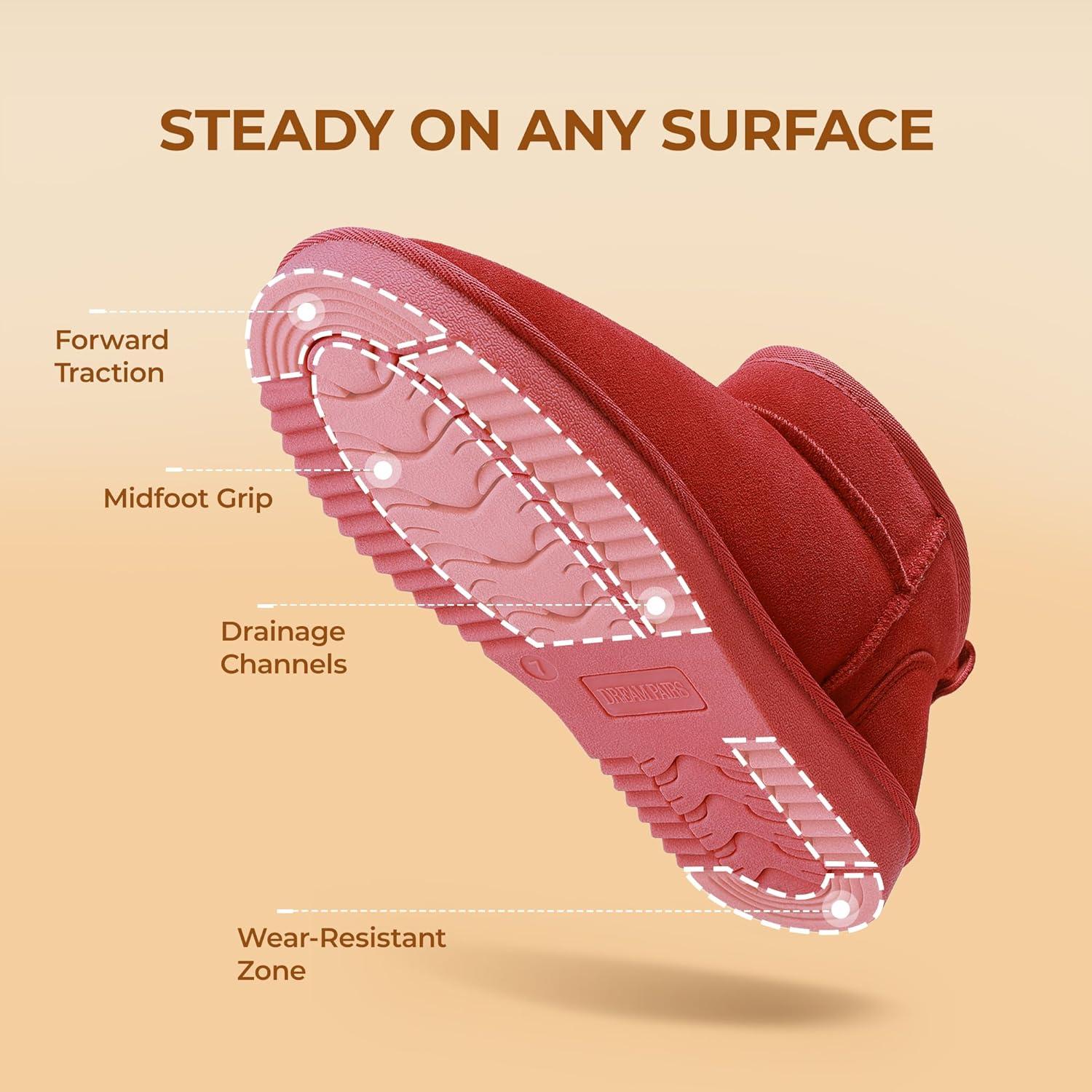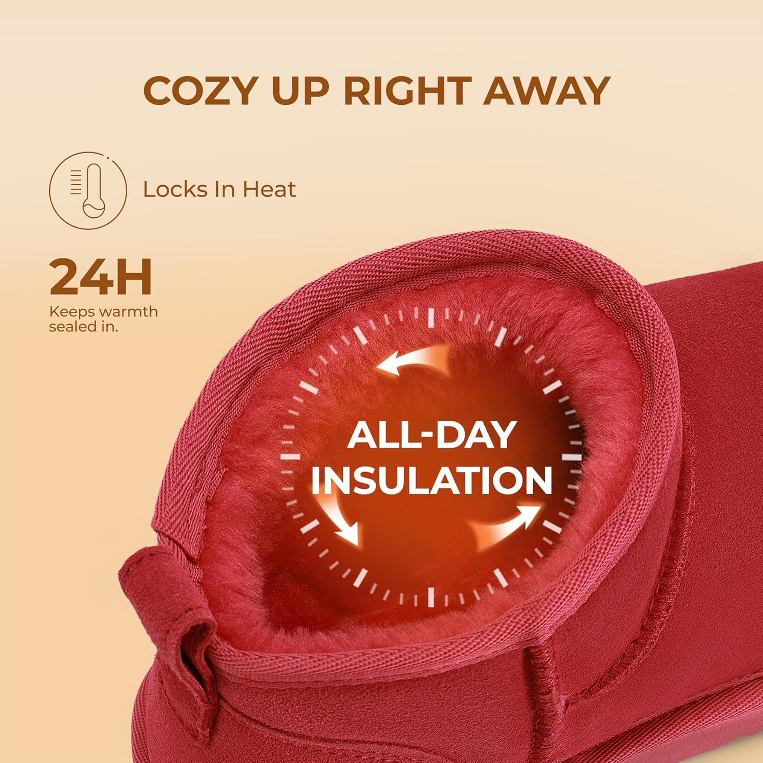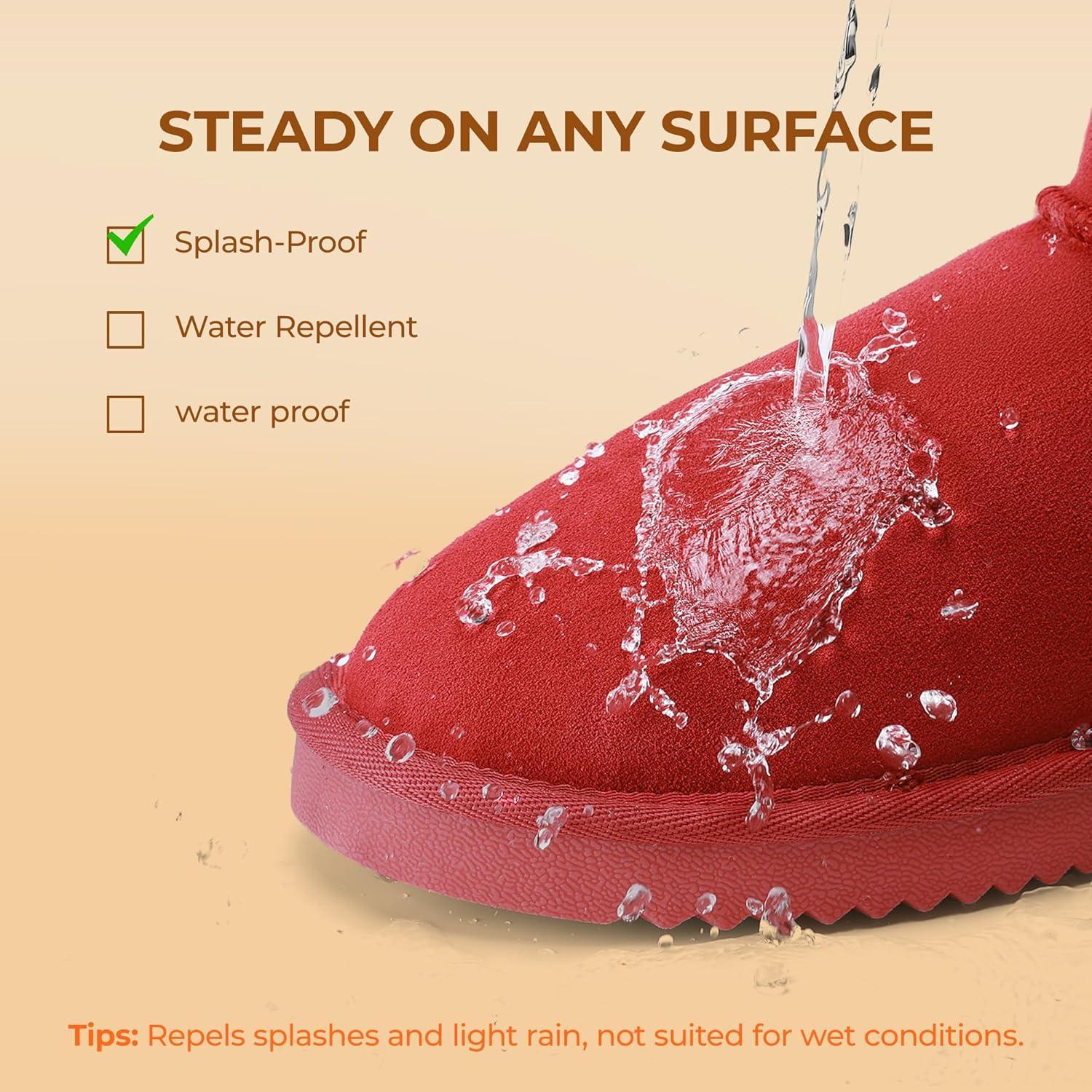 DREAM PAIRS Ankle Winter Mini Boots for Women Genuine Suede Faux Fur Lining Water Resistant Warm Snow Boots Slip On Memory Foam Comfort Booties FuzzyClassic(Red)