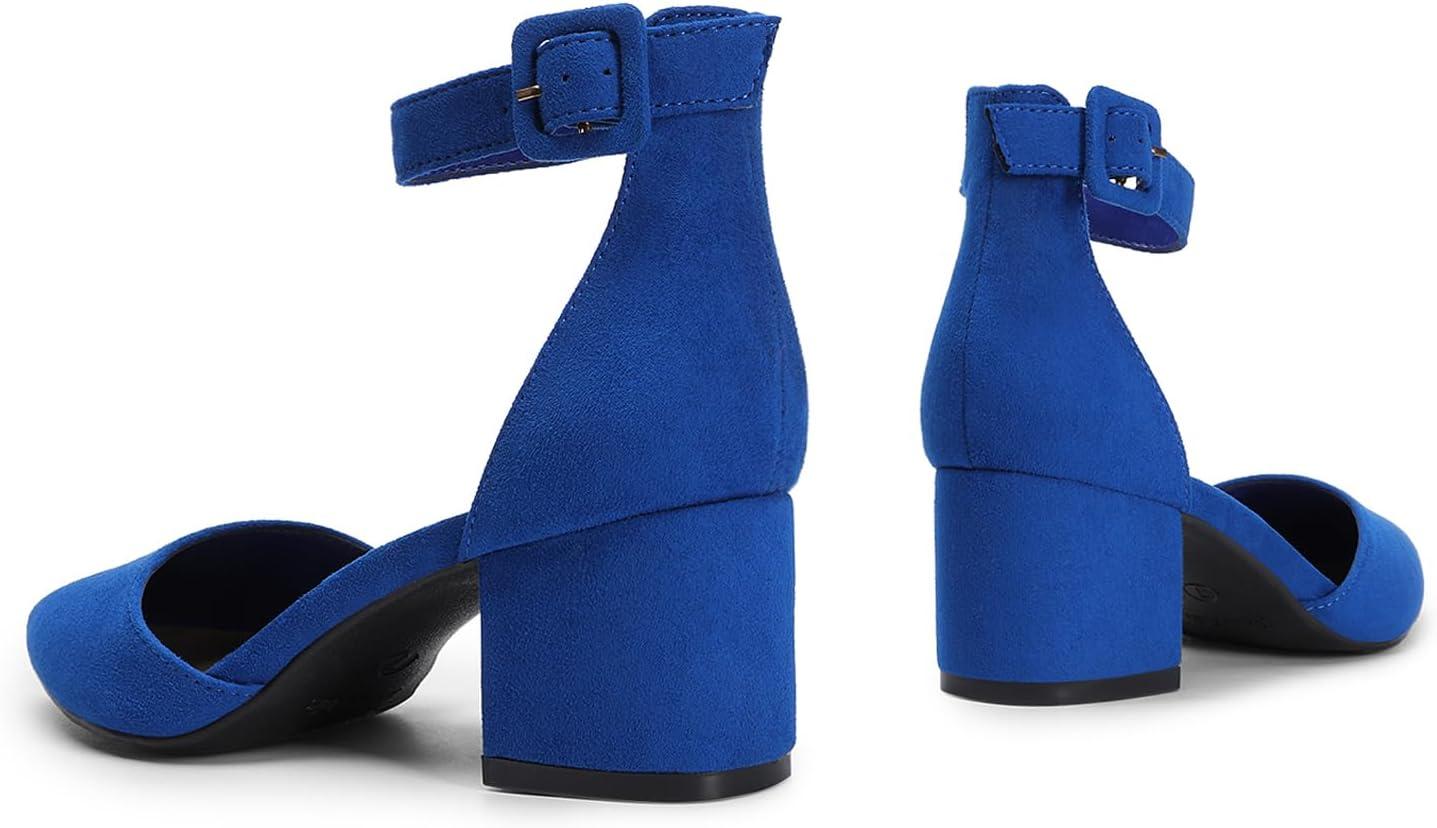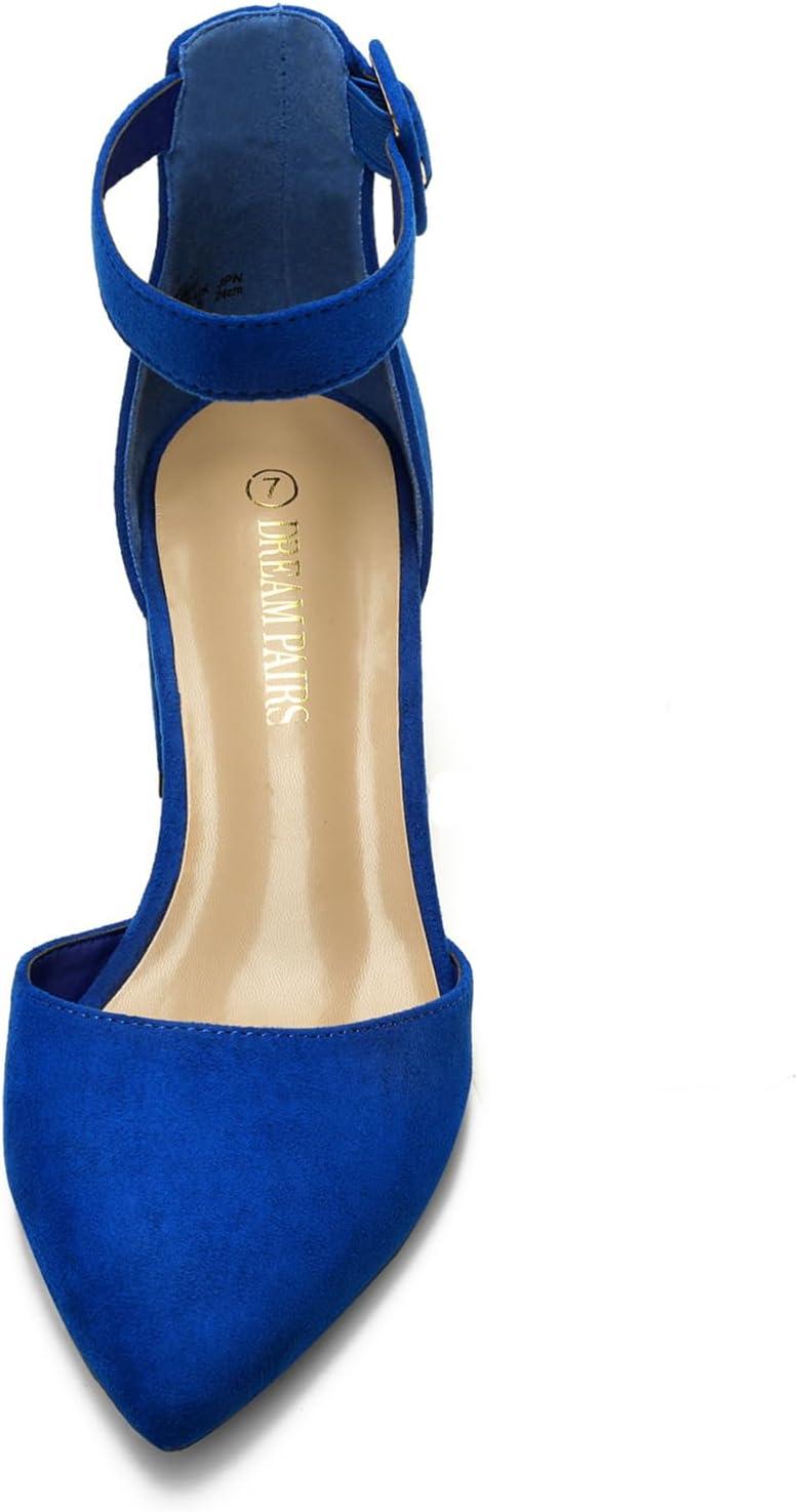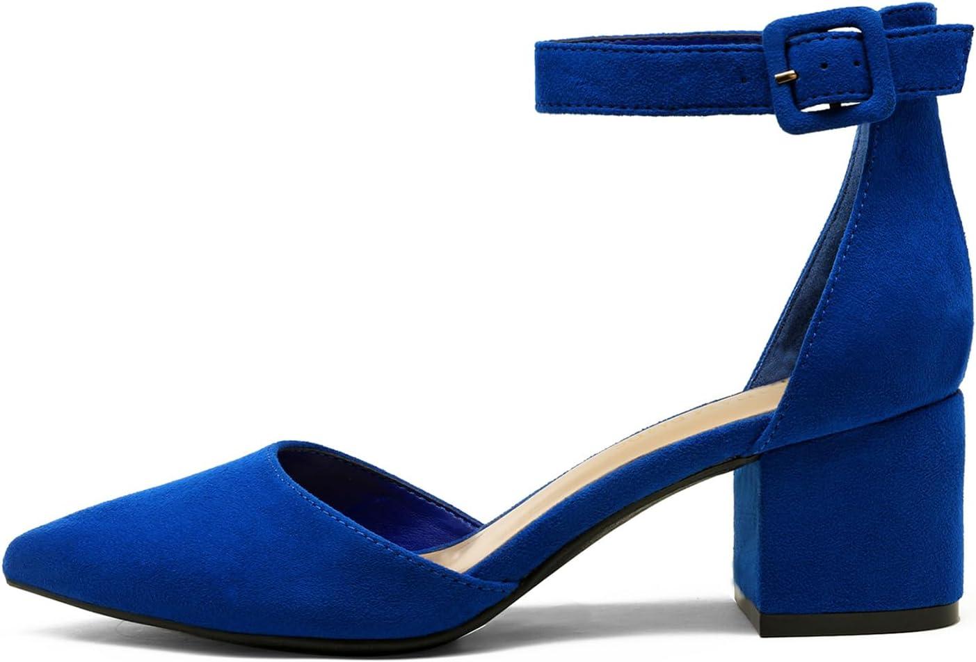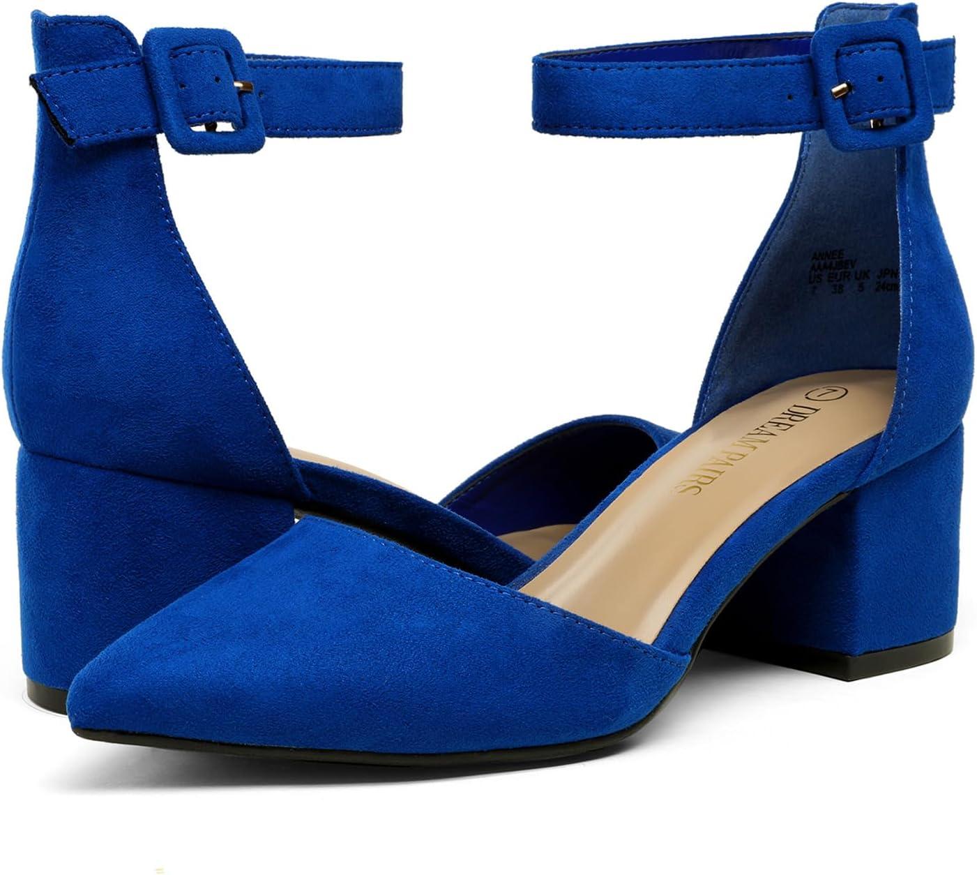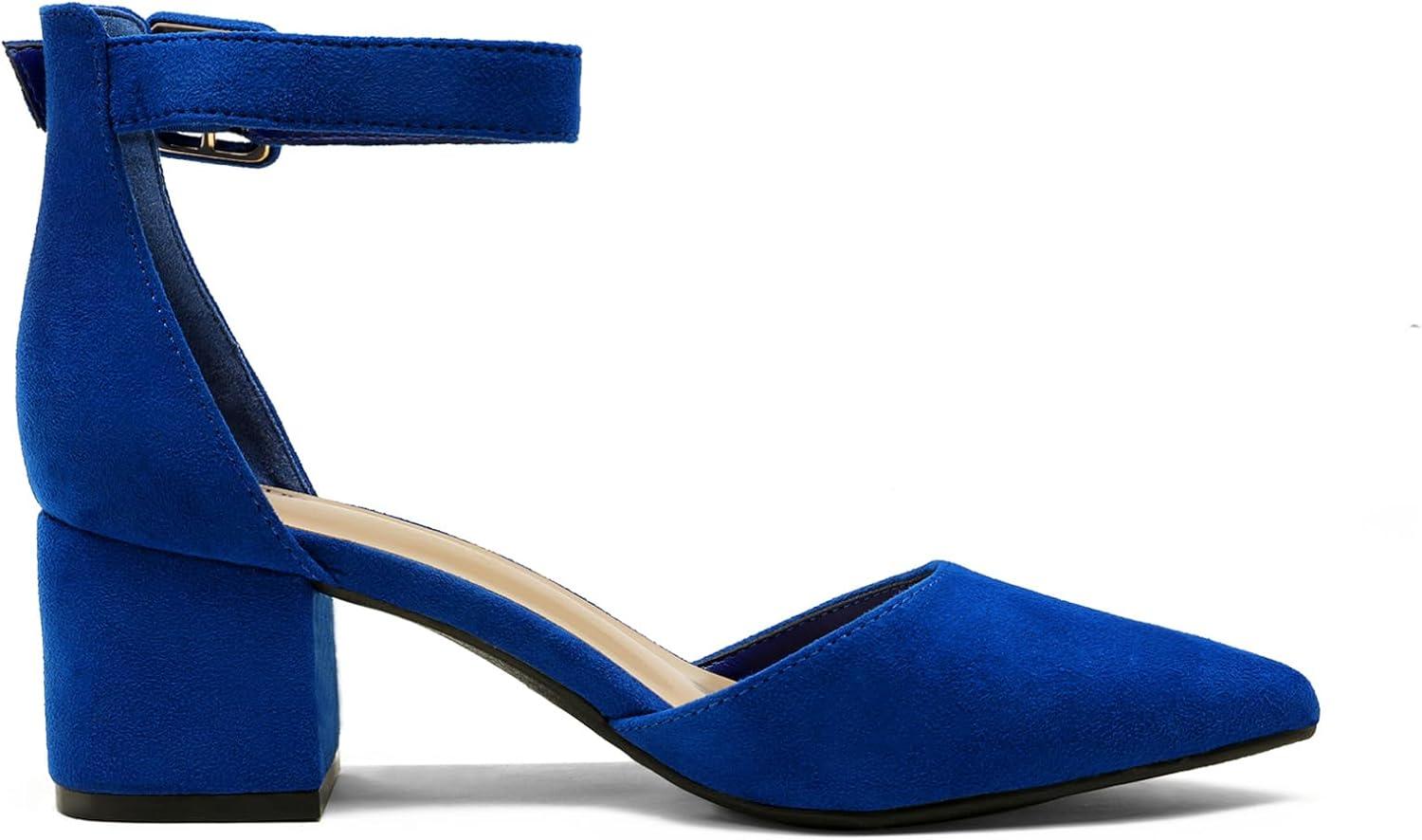 DREAM PAIRS ANNEE Pointed Toe Low Chunky Heels Pump Shoes(Royal/Blue)