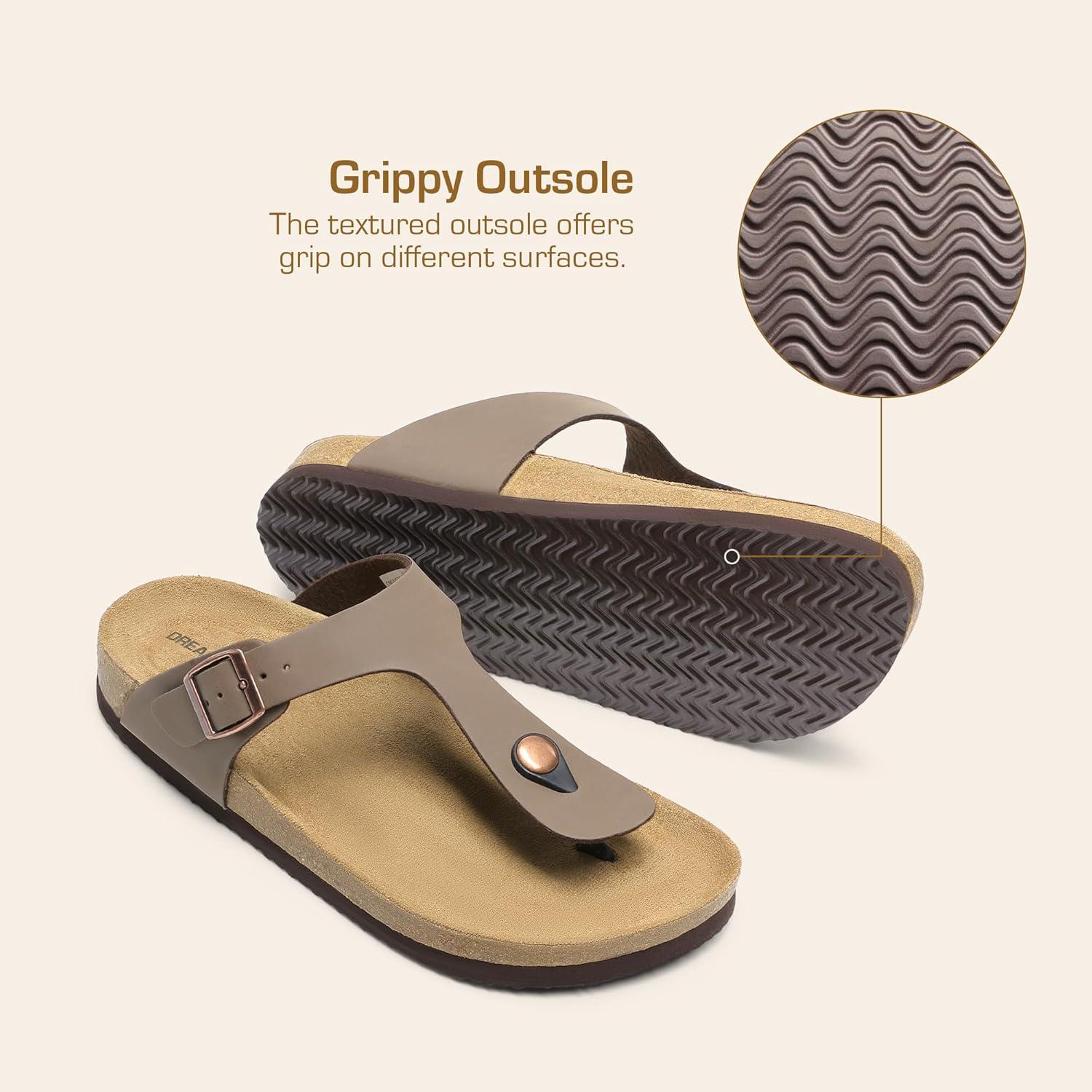 DREAM PAIRS Arch Support Thong Sandals for Women Casual Leather Flip Flops Dressy Slides with Soft Cork Footbed Adjustable Strap for Summer Beach Vacation(Brown)