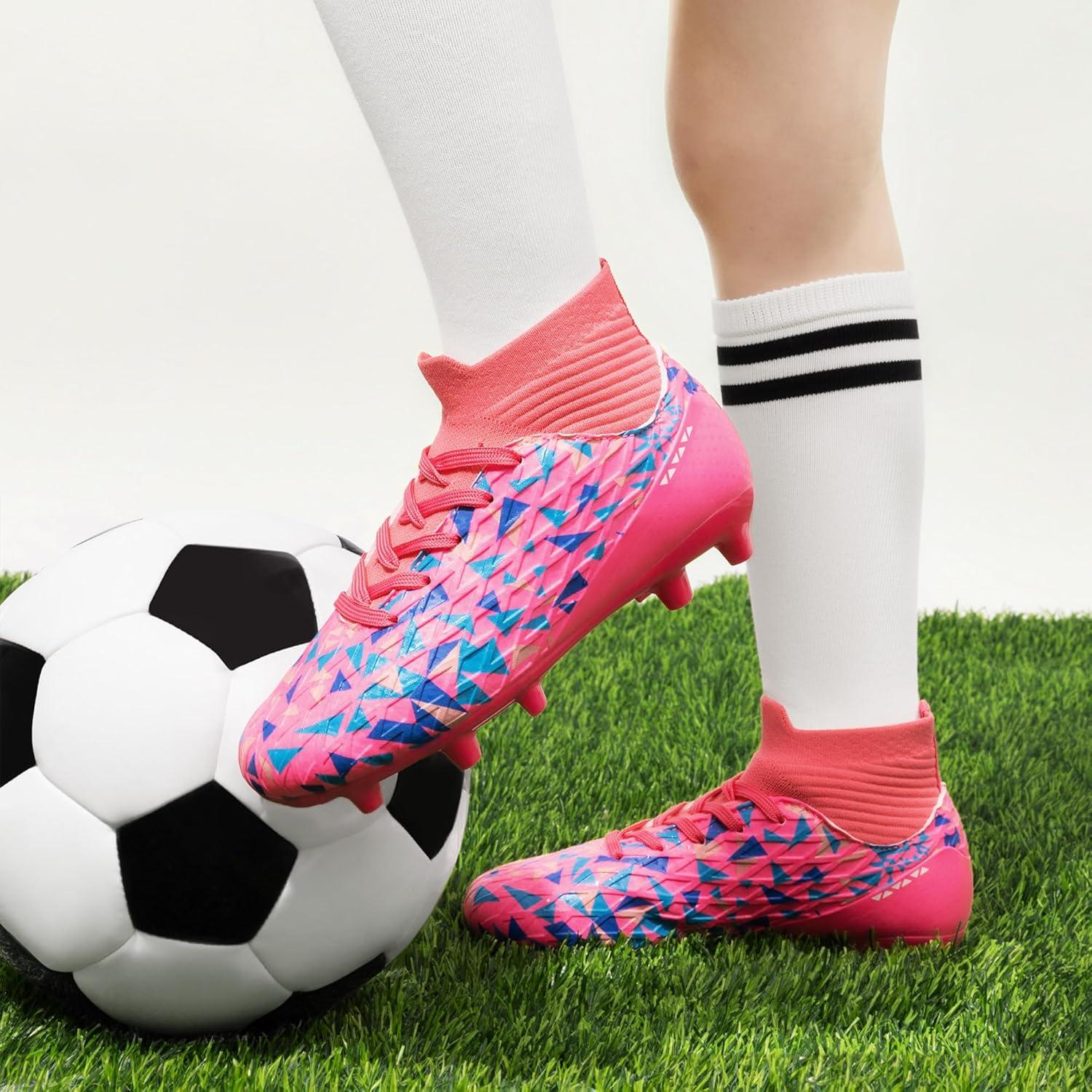 DREAM PAIRS Boys Football Cleats Youth High Top Firm Ground Soccer Shoes for Little/Big Kids(Hot Pink/Royal Blue)