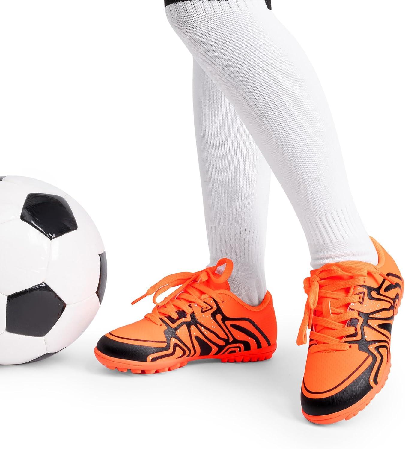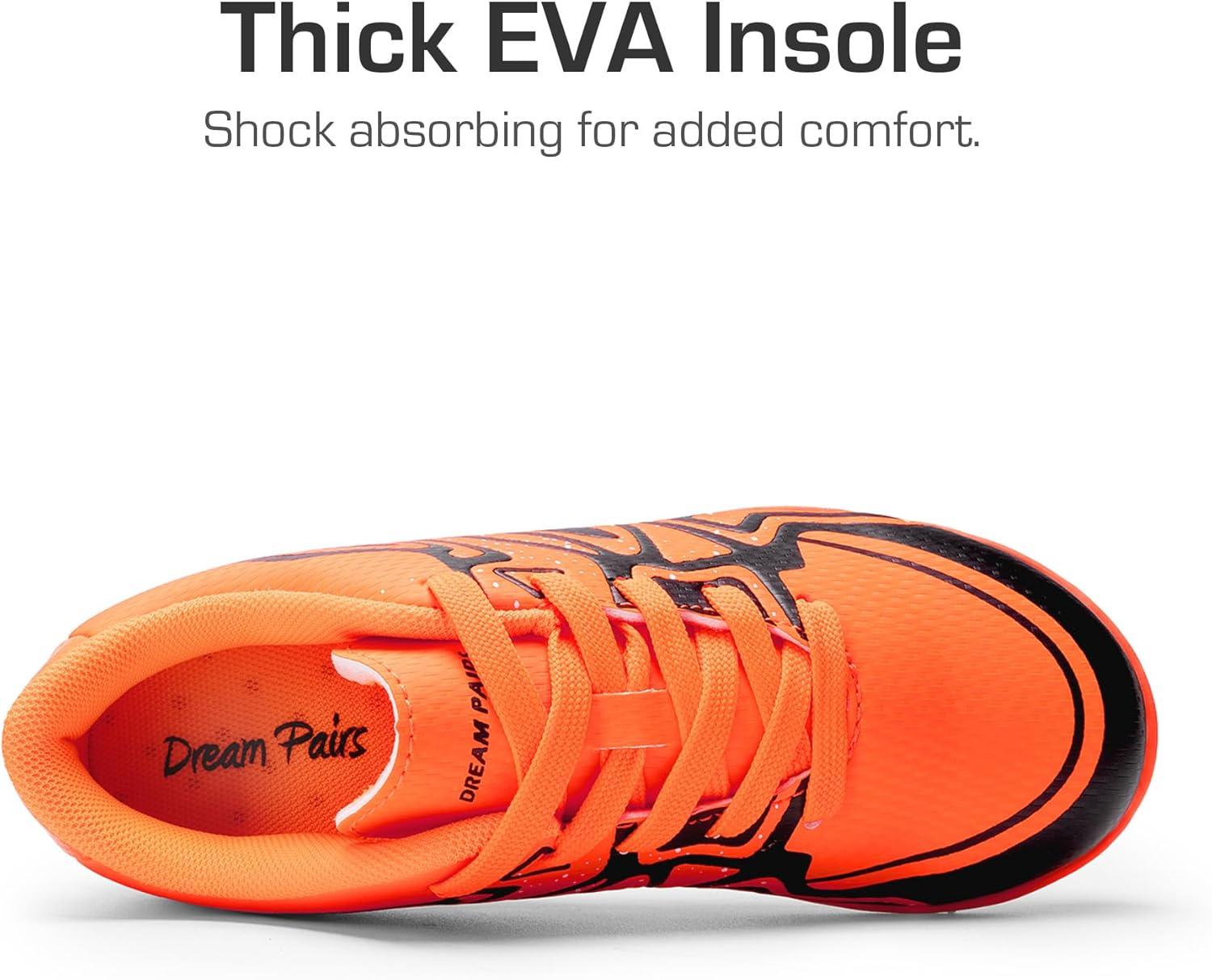 DREAM PAIRS Boys Girls Indoor Turf Soccer Cleats Lace Up Athletic Youth Futsal Football Shoes for Little/Big Kid(Orange)