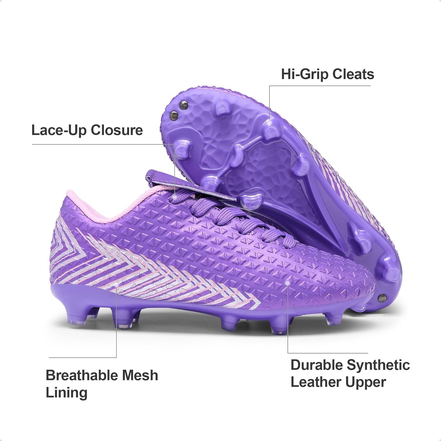 DREAM PAIRS Boys Girls Outdoor Soccer Cleats Football Shoes for Little/Big Kid(Light/Purple/Pink)