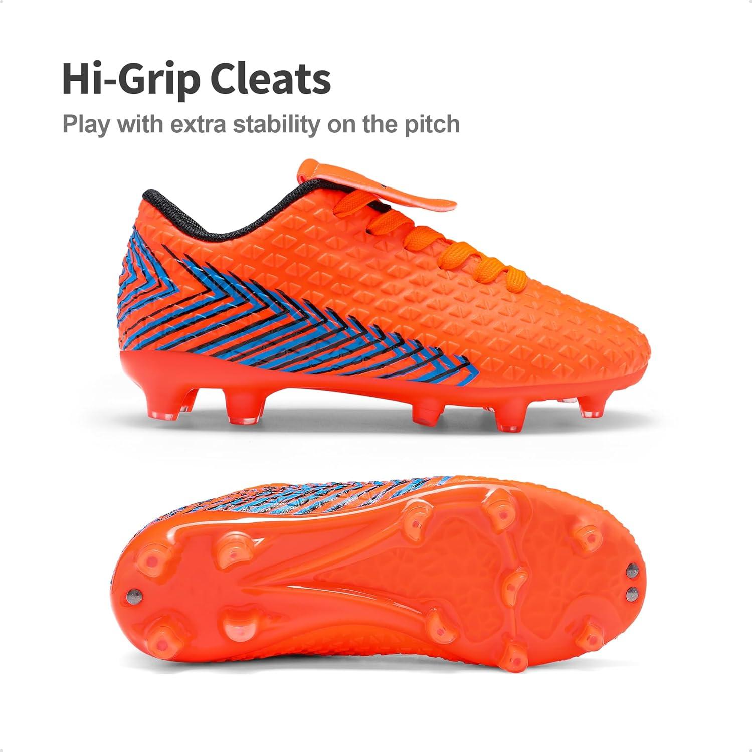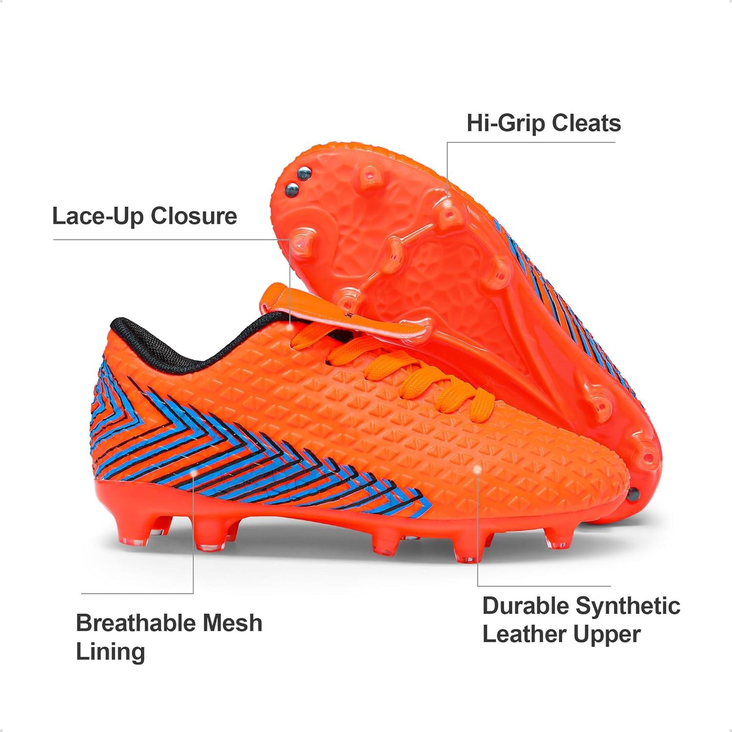 DREAM PAIRS Boys Girls Outdoor Soccer Cleats Football Shoes for Little/Big Kid(Orange/Black)