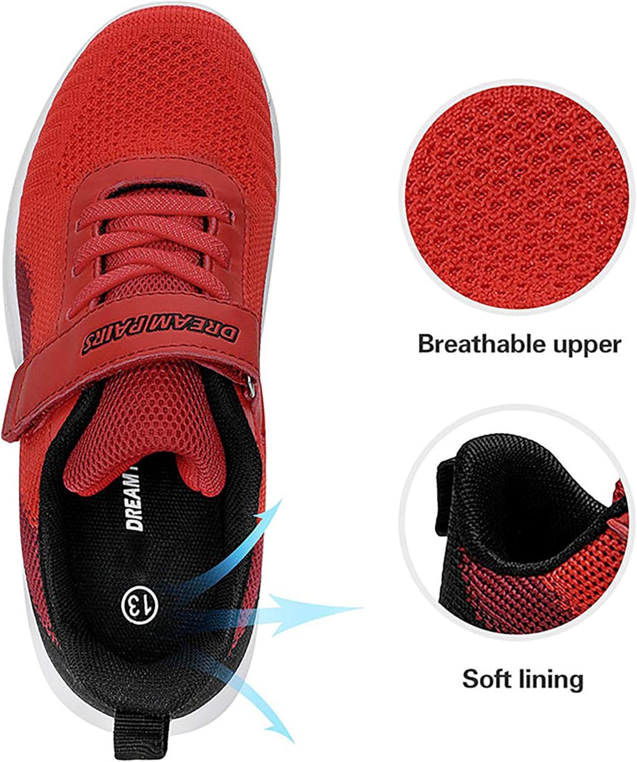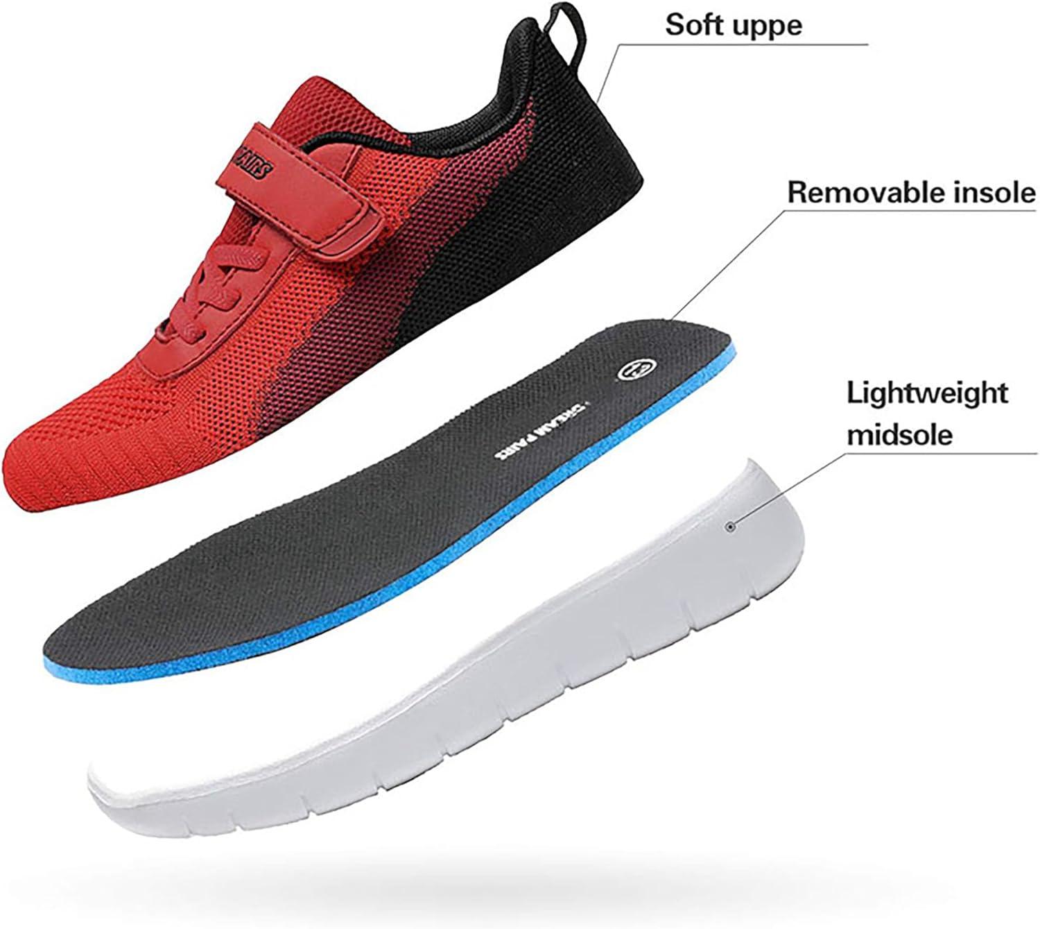 DREAM PAIRS Boys Girls Shoes Kids Tennis EZ-Ons MagicZips Athletic Running Walking Barefoot Zero Drop Sneakers(Red/Black)