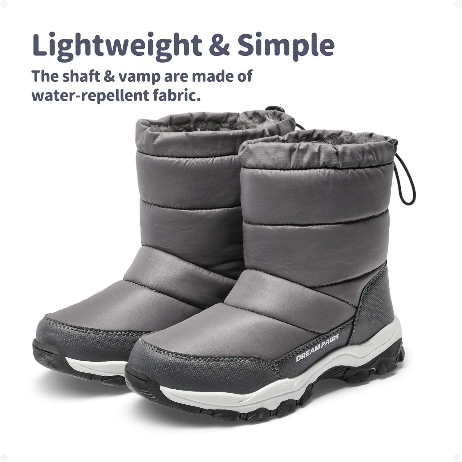 DREAM PAIRS Boys Girls Snow Boots Lightweight Slip Resistant Mid Calf Winter Shoes for Little/Big Kid(Dark Gray)