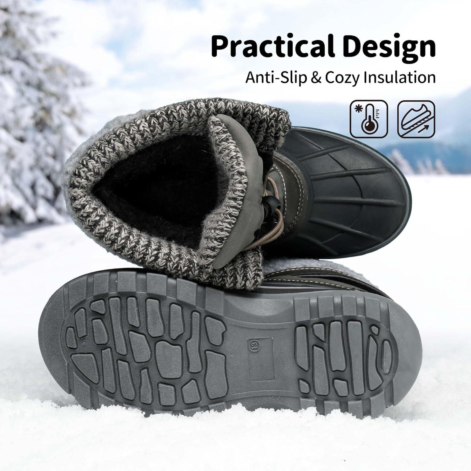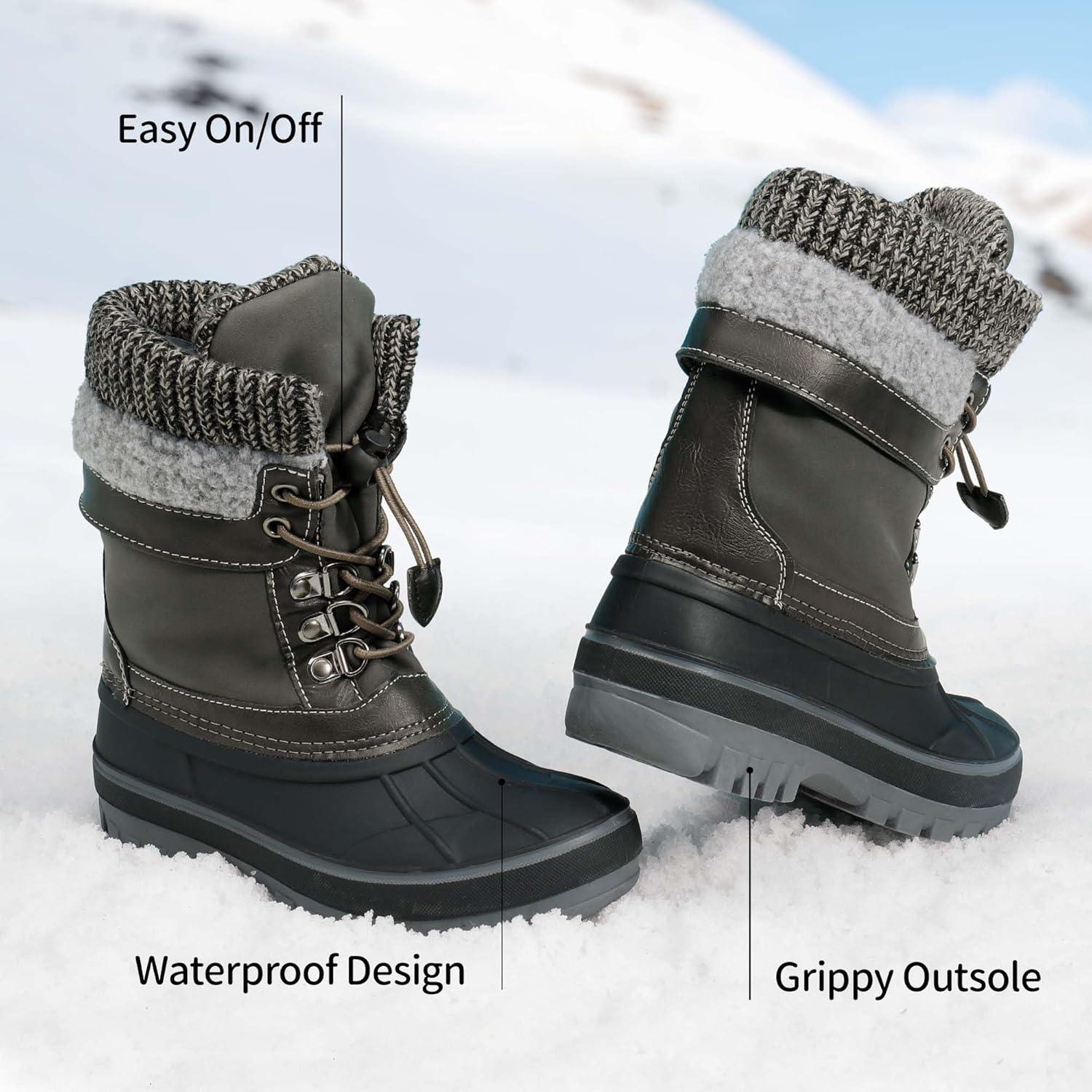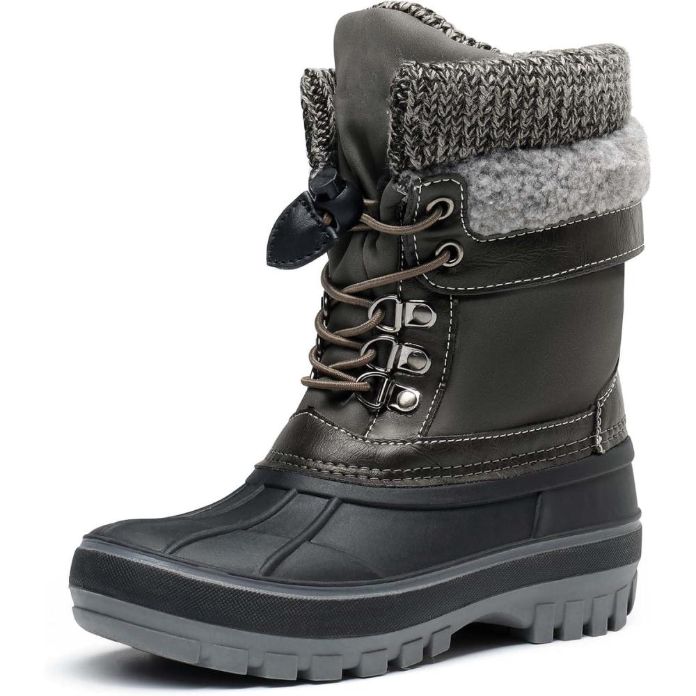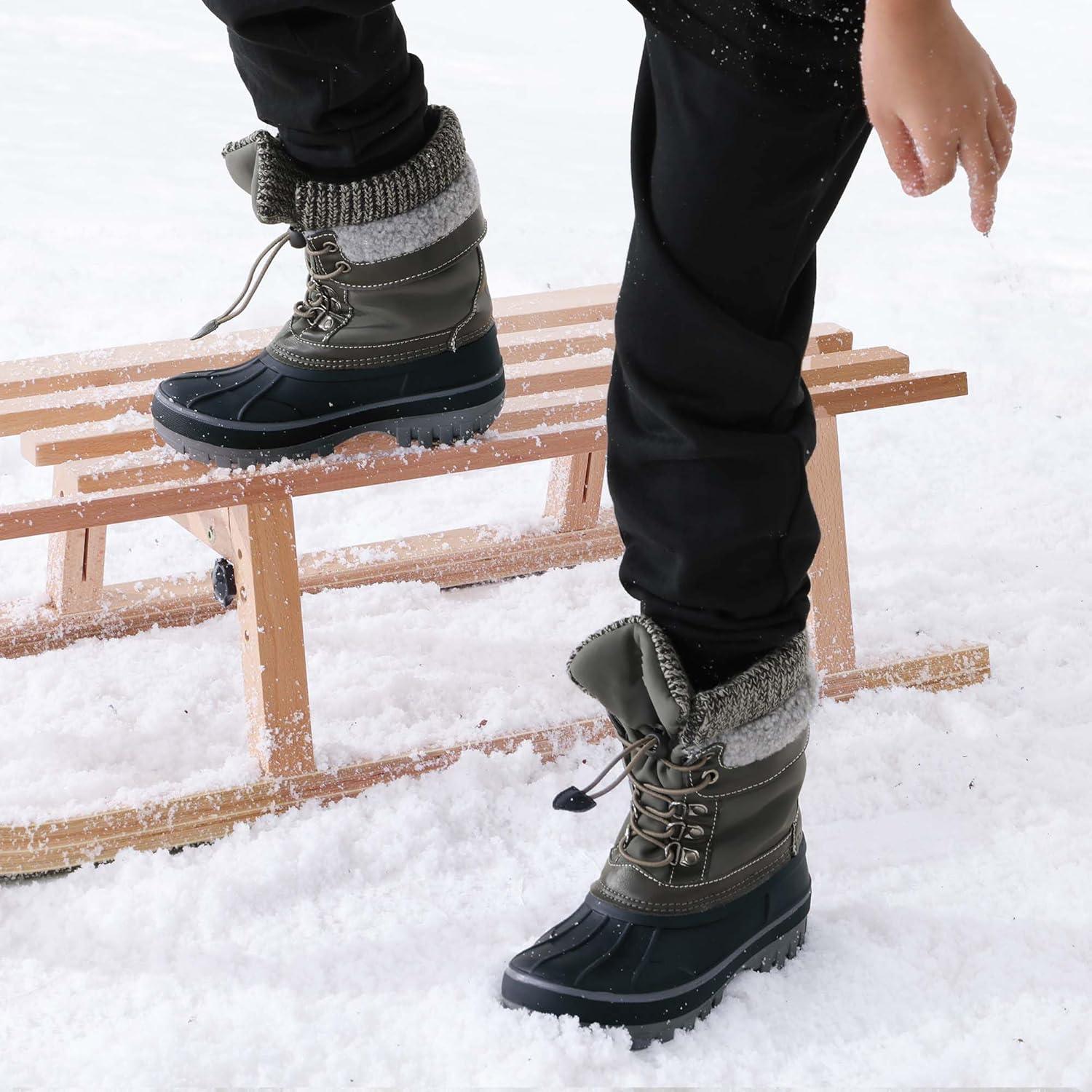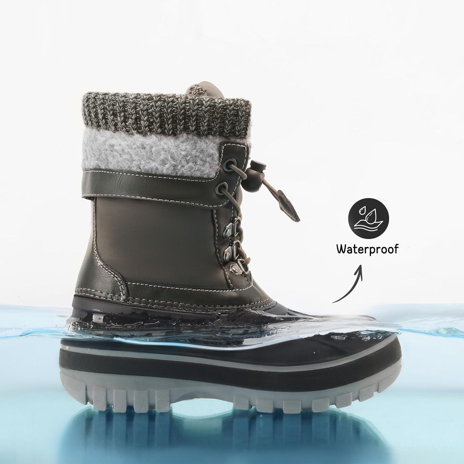 DREAM PAIRS Boys Girls Snow Boots Water-Resistant Outdoor Warm Cozy Anti-Slip Mid Calf Faux Fur Lining Insulated Winter Shoes for Little/Big Kids(Black/Grey)
