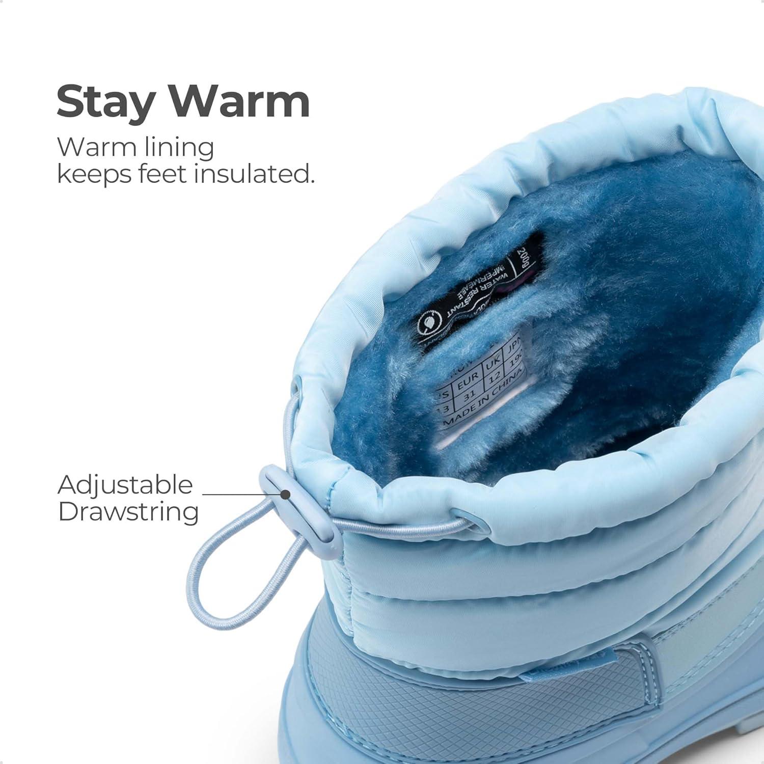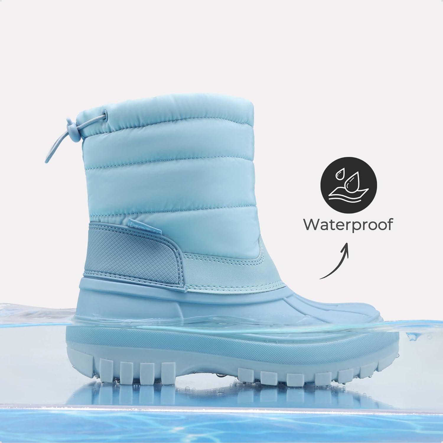 DREAM PAIRS Boys Girls Snow Boots Water-Resistant Outdoor Warm Cozy Anti-Slip Mid Calf Faux Fur Lining Winter Shoes for Toddler/Little/Big Kids(Blue)