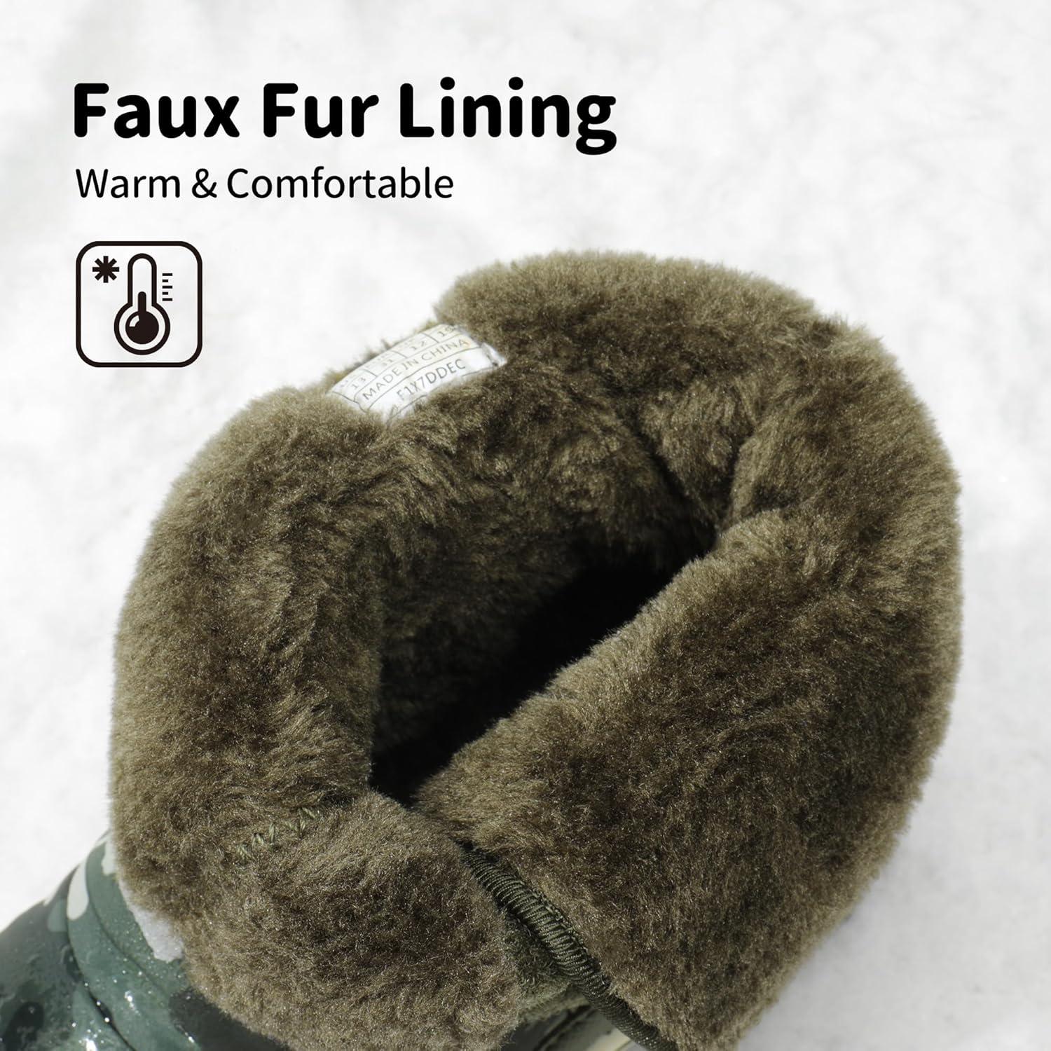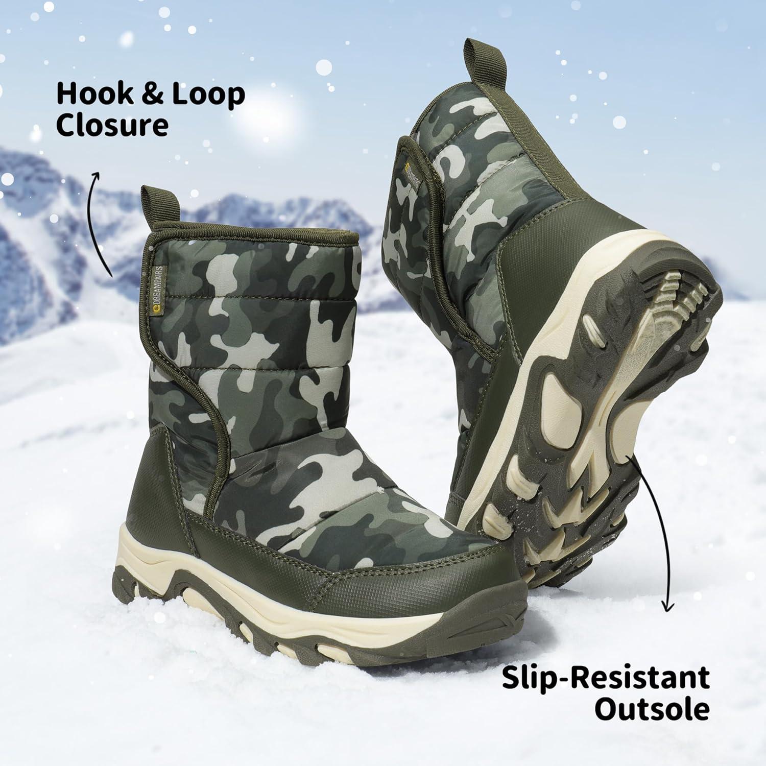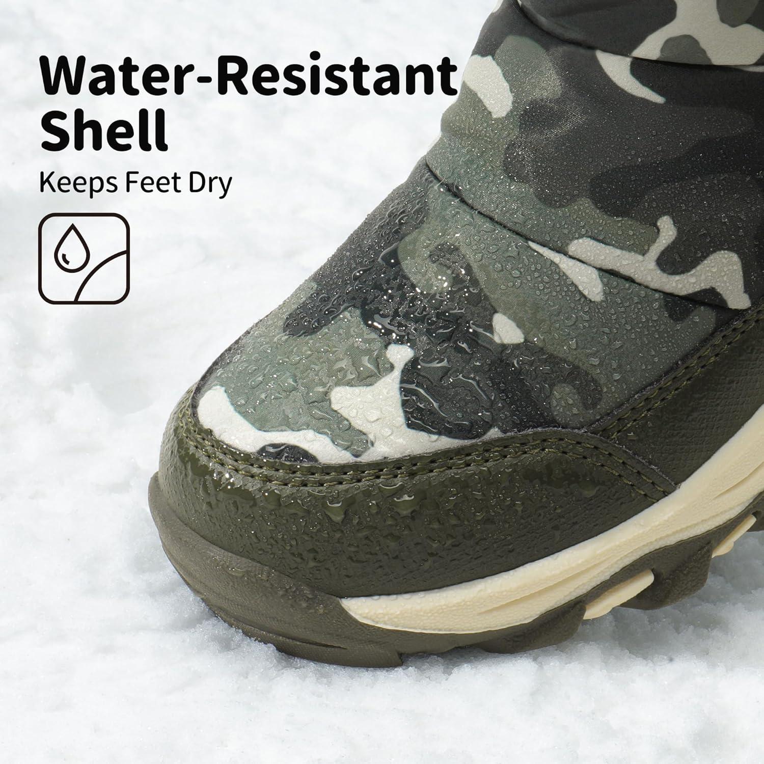 DREAM PAIRS Boys Girls Snow Boots Waterproof Hook and Loop Mid Calf Faux Fur Lining Winter Shoes for Little/Big Kids(Camo/Green)