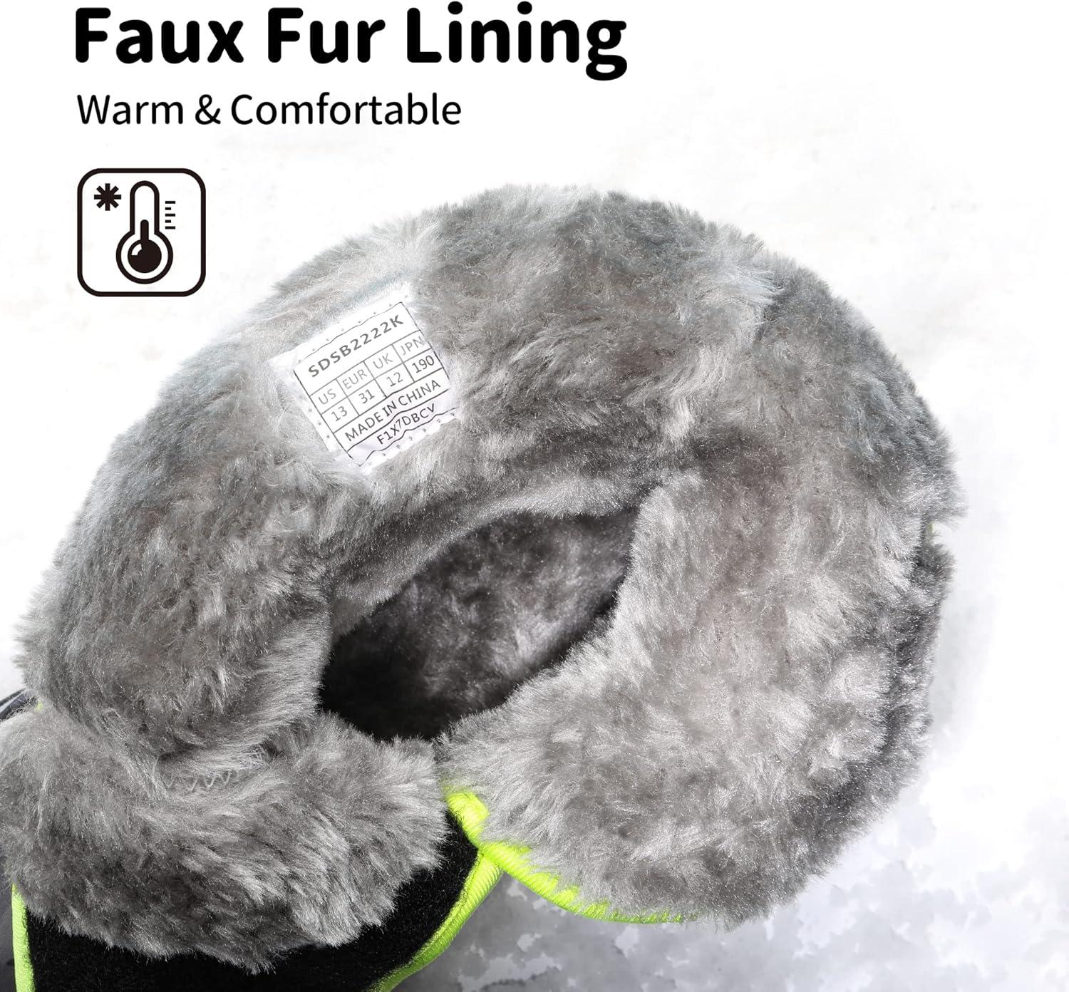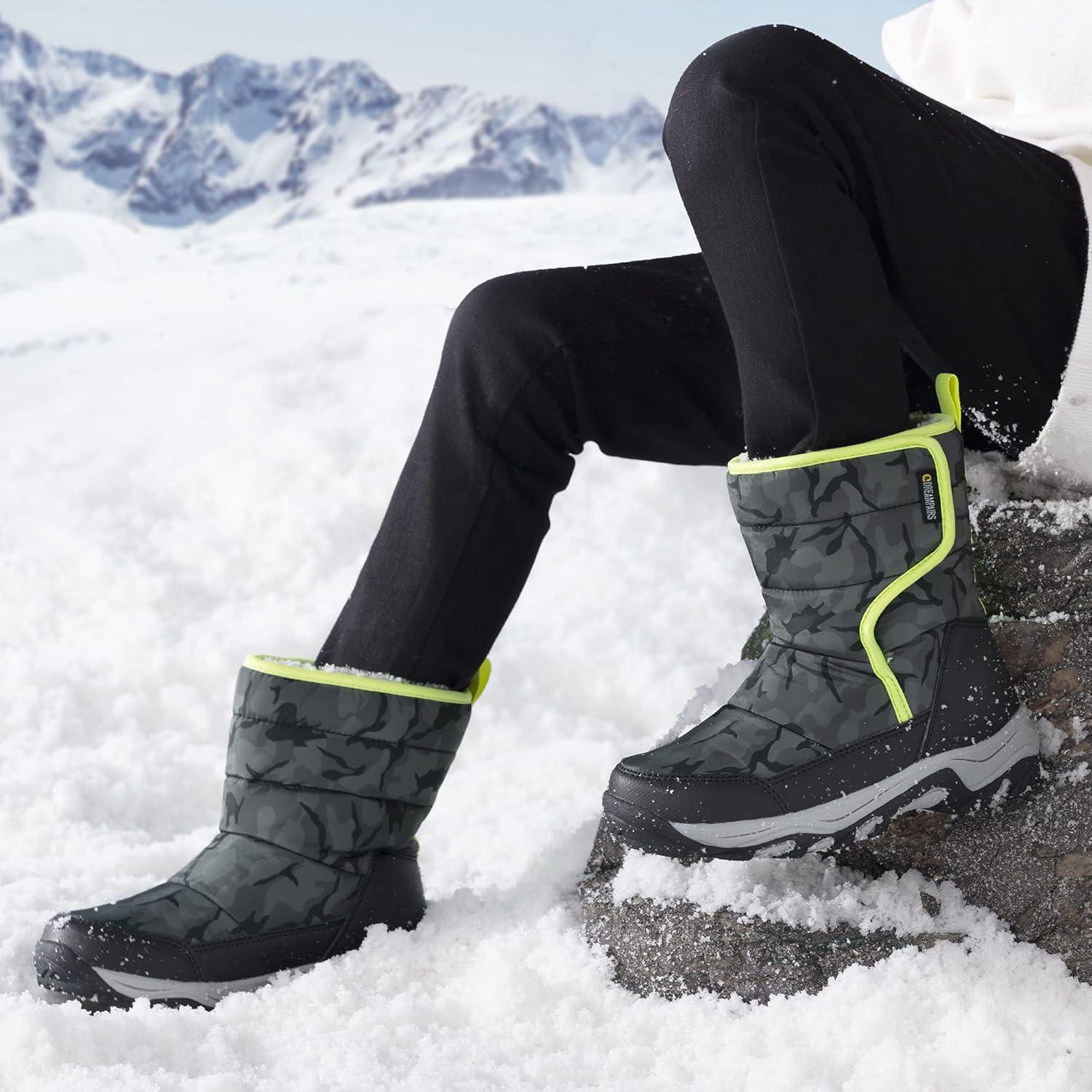 DREAM PAIRS Boys Girls Snow Boots Waterproof Hook and Loop Mid Calf Faux Fur Lining Winter Shoes for Little/Big Kids(Camouflage/Gray)