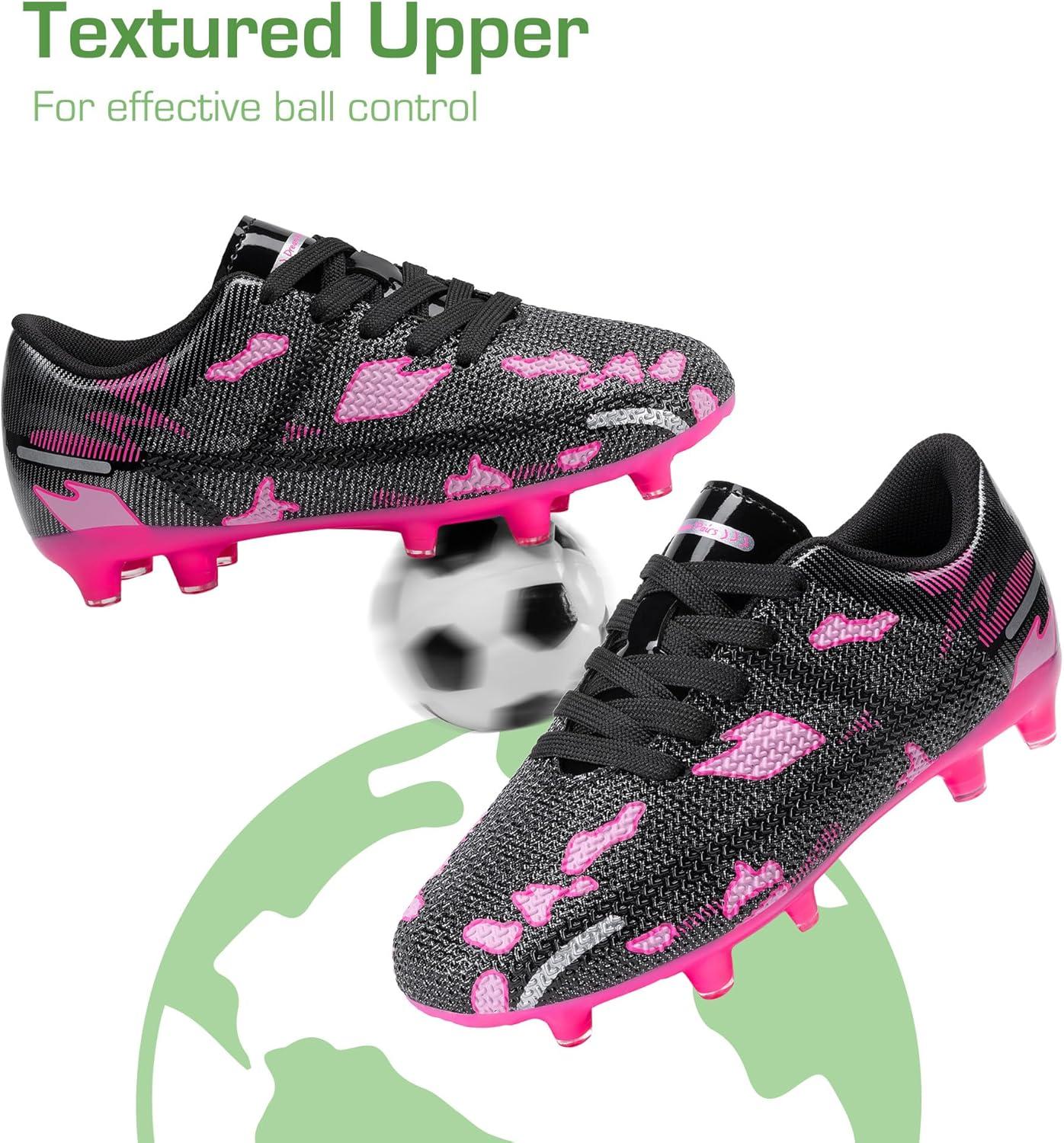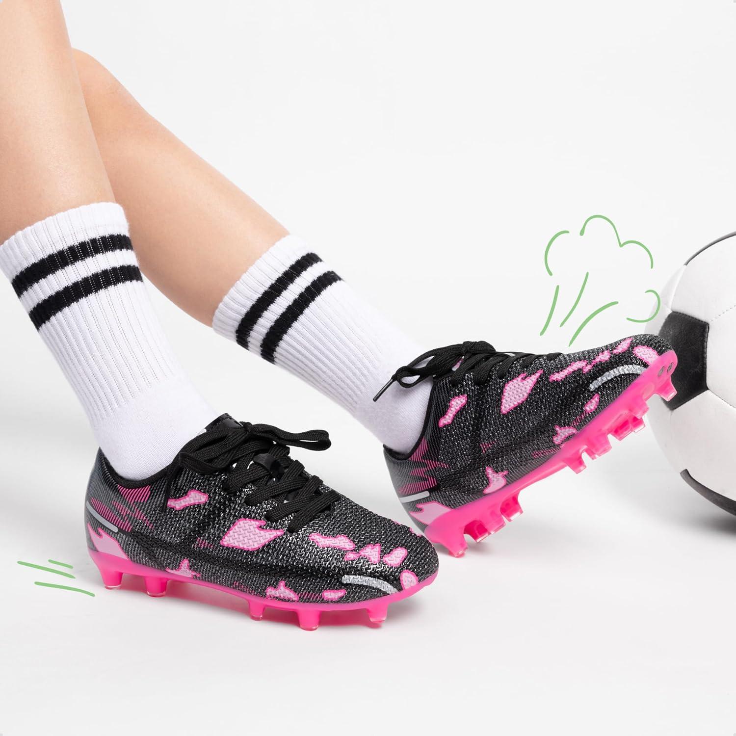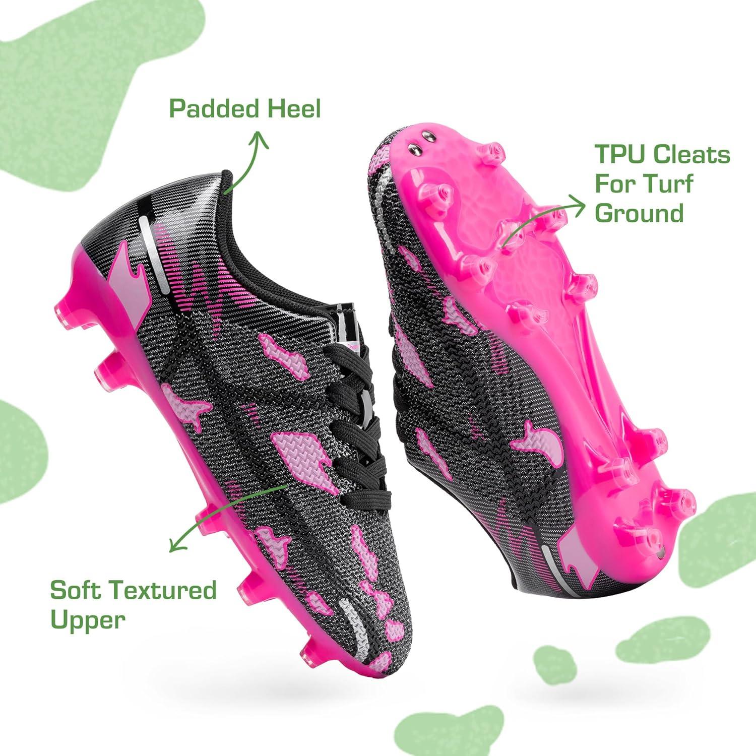 DREAM PAIRS Boys Girls Soccer Cleats Kids Football Shoes for Little/Big Kid(Black/Hot Pink)
