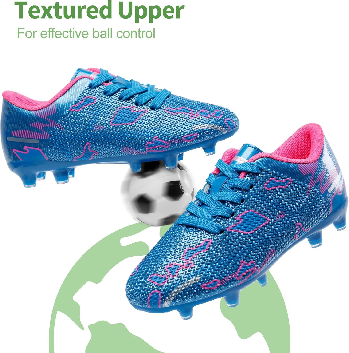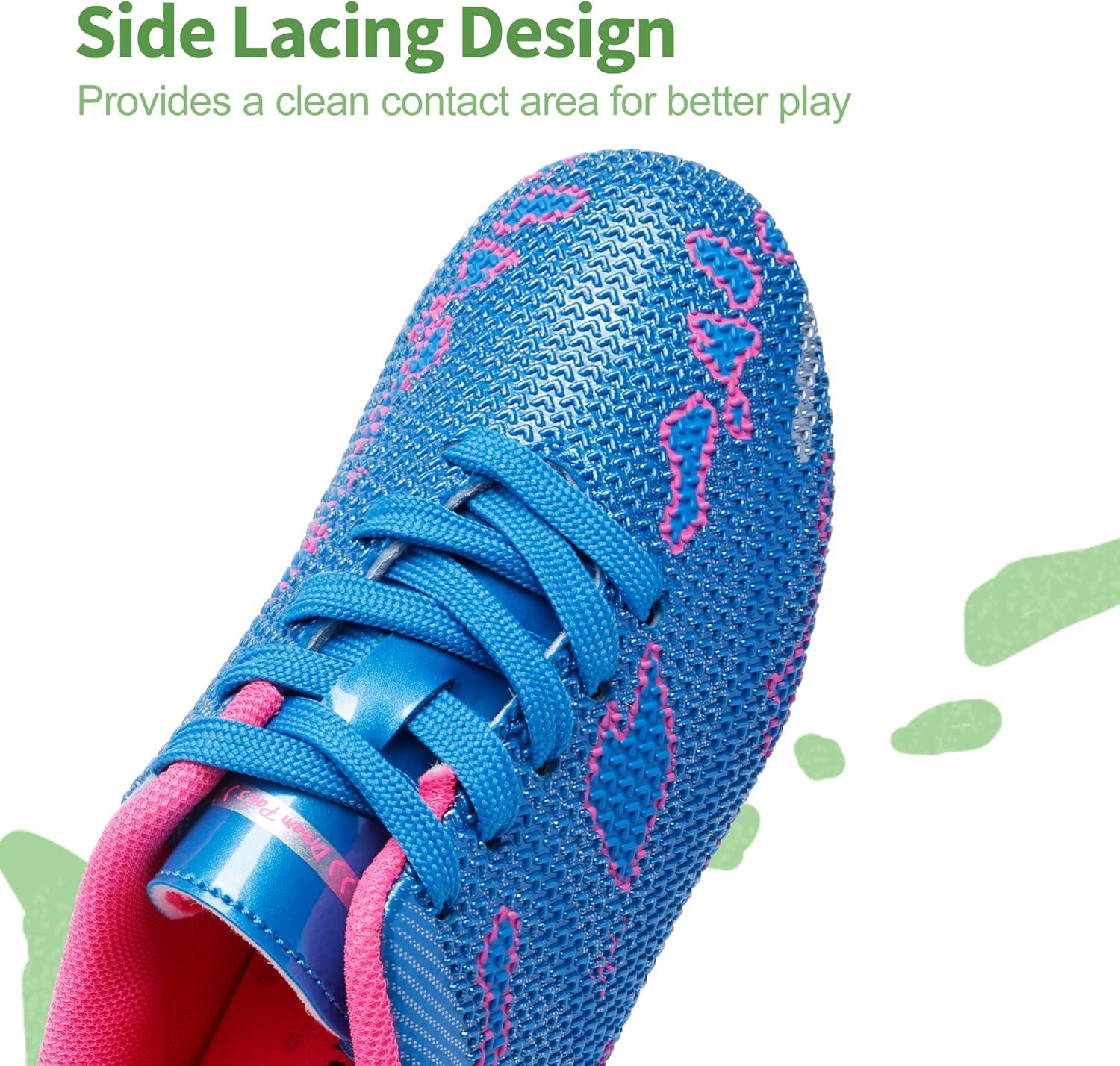 DREAM PAIRS Boys Girls Soccer Cleats Kids Football Shoes for Little/Big Kid(Blue/Hot Pink)