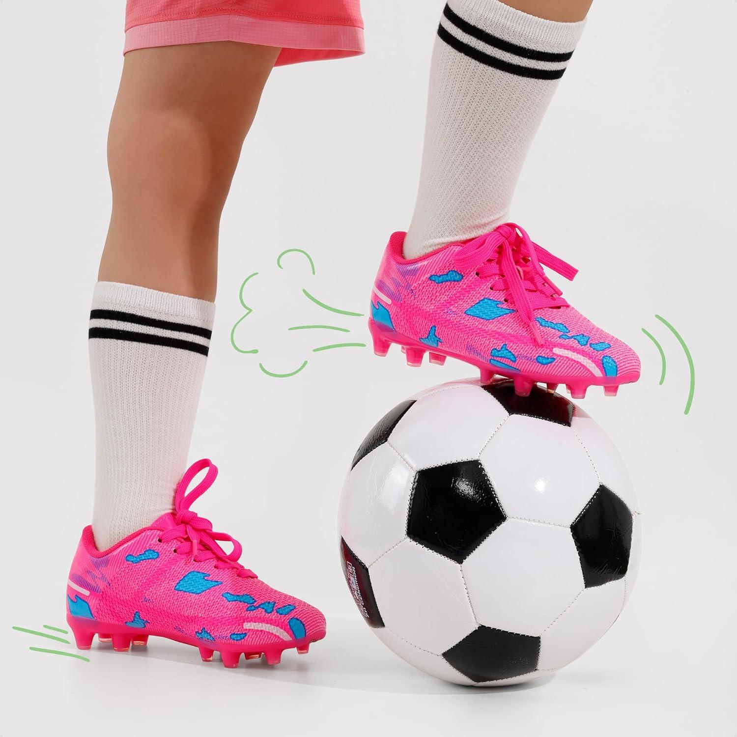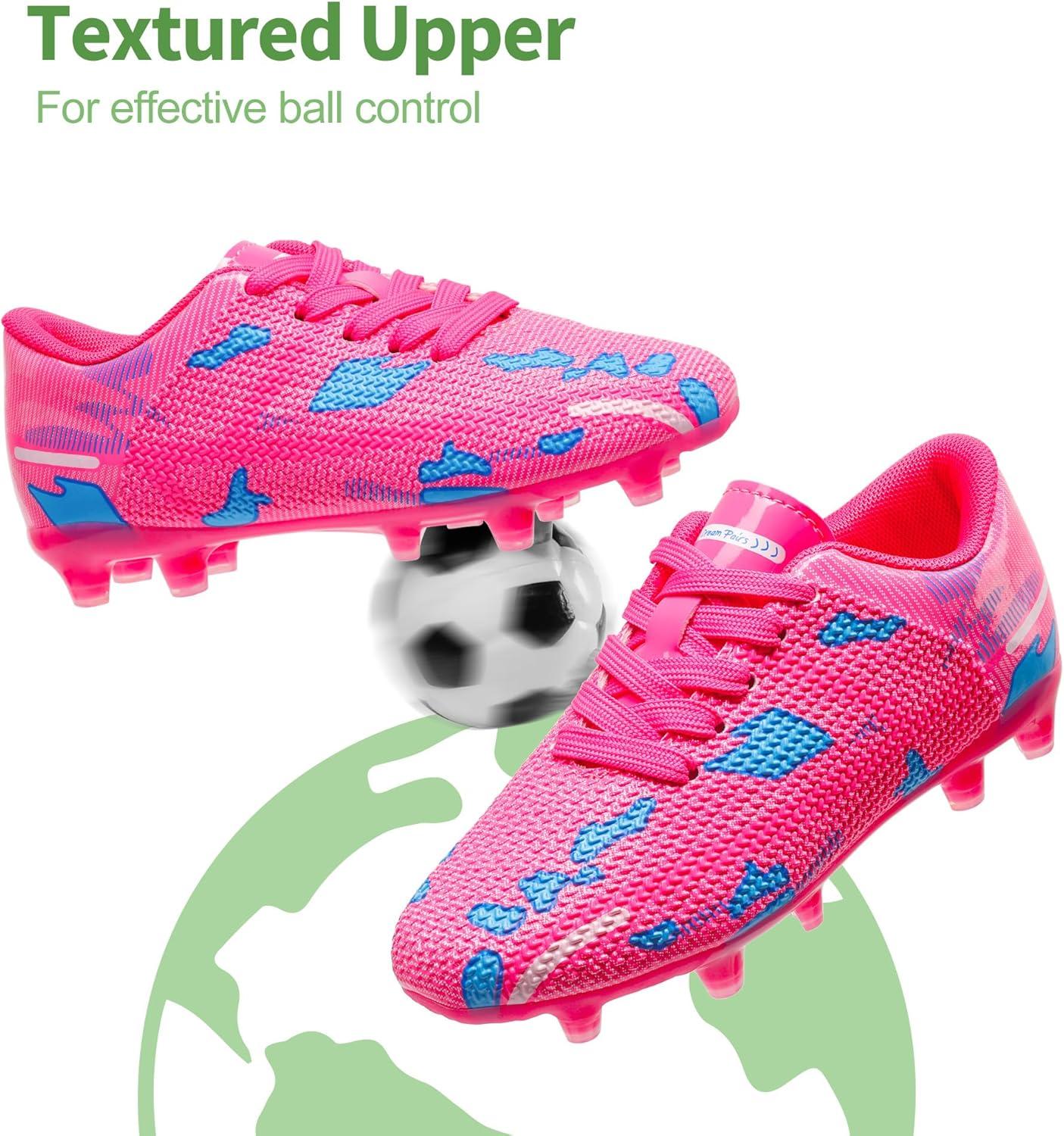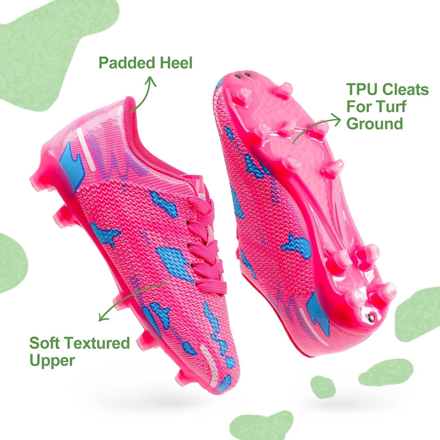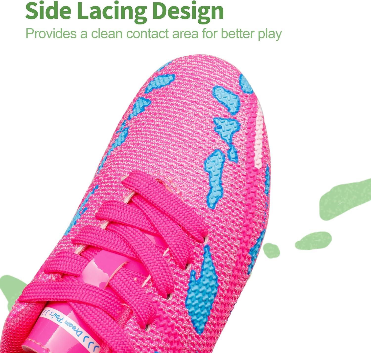 DREAM PAIRS Boys Girls Soccer Cleats Kids Football Shoes for Little/Big Kid(Hot Pink/Blue)