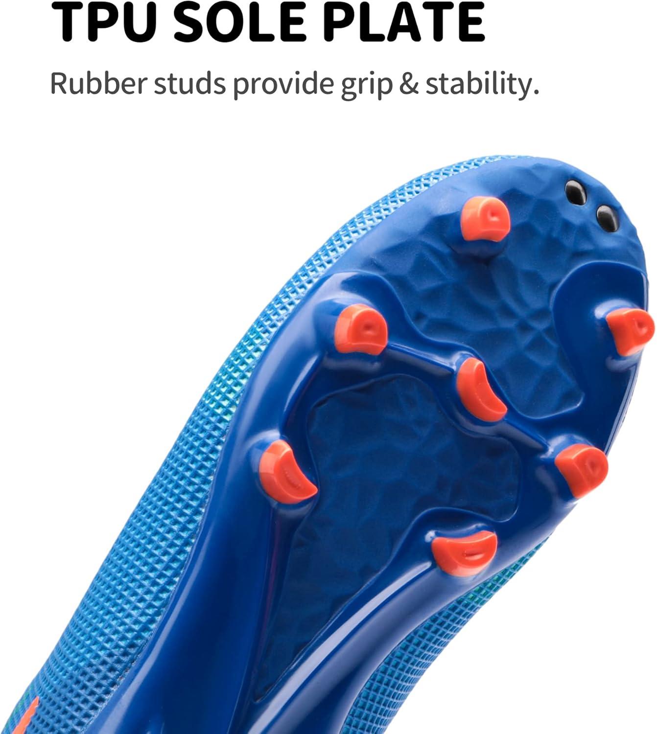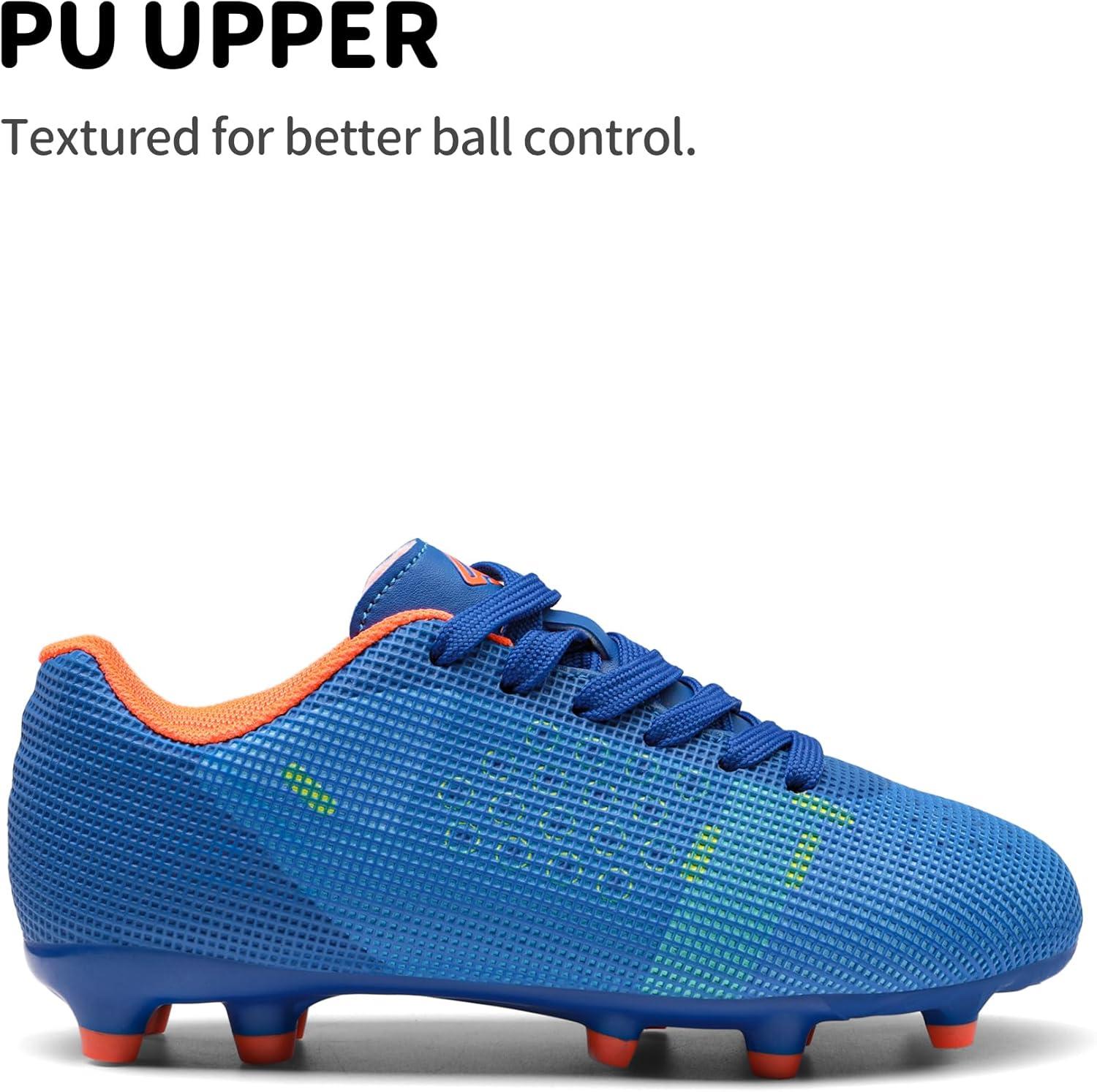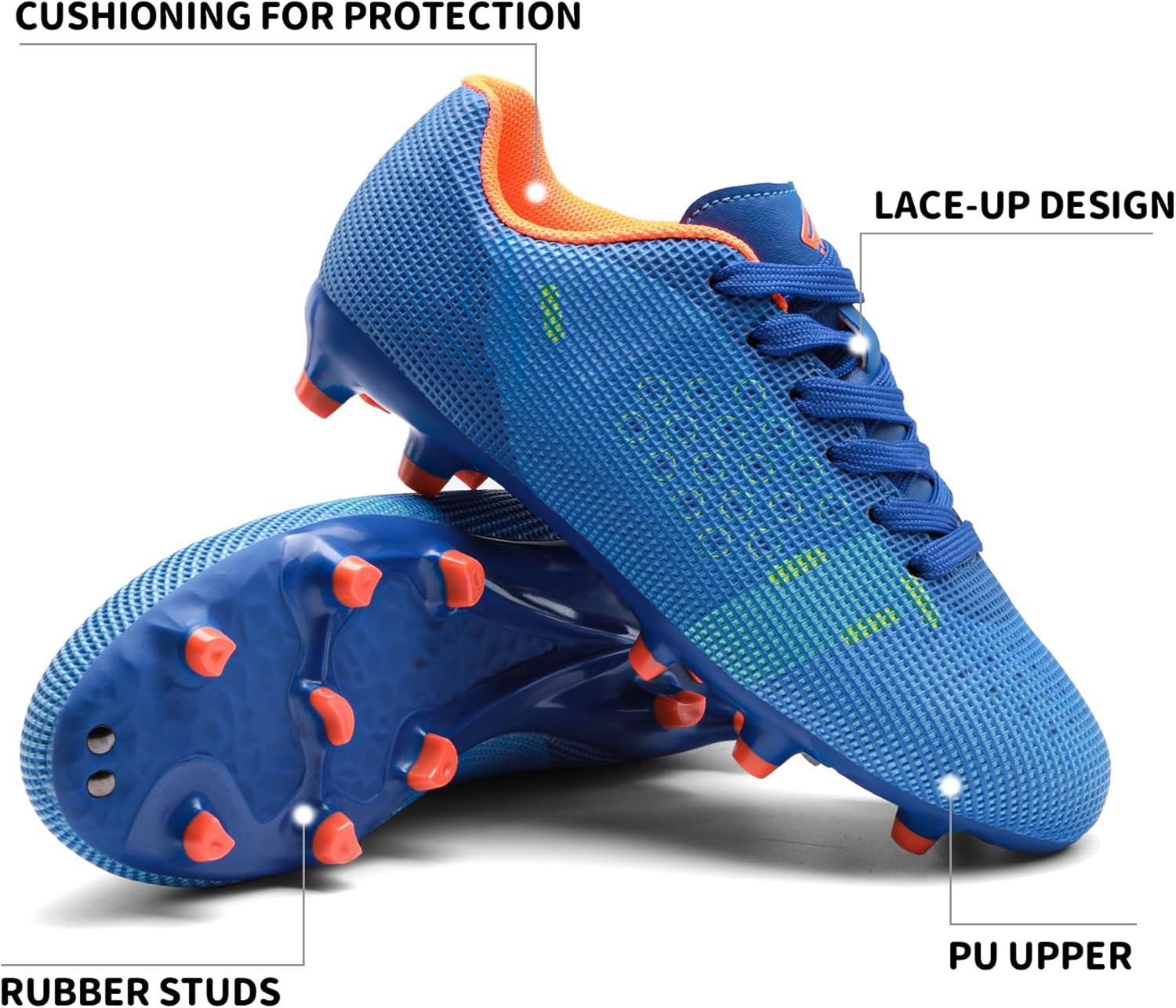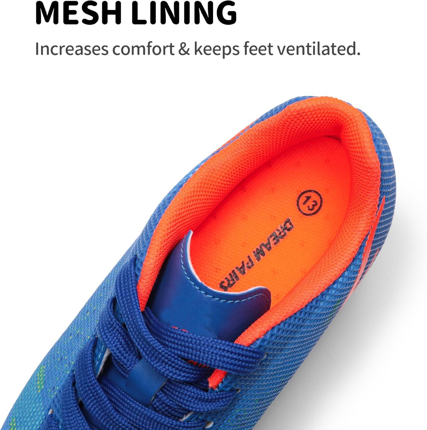 DREAM PAIRS Boys Girls Soccer Cleats Youth Firm Groud Athletic Outdoor Trainning Football Shoes for Little/Big Kid(Royal Blue/Orange)