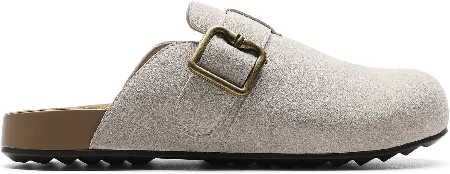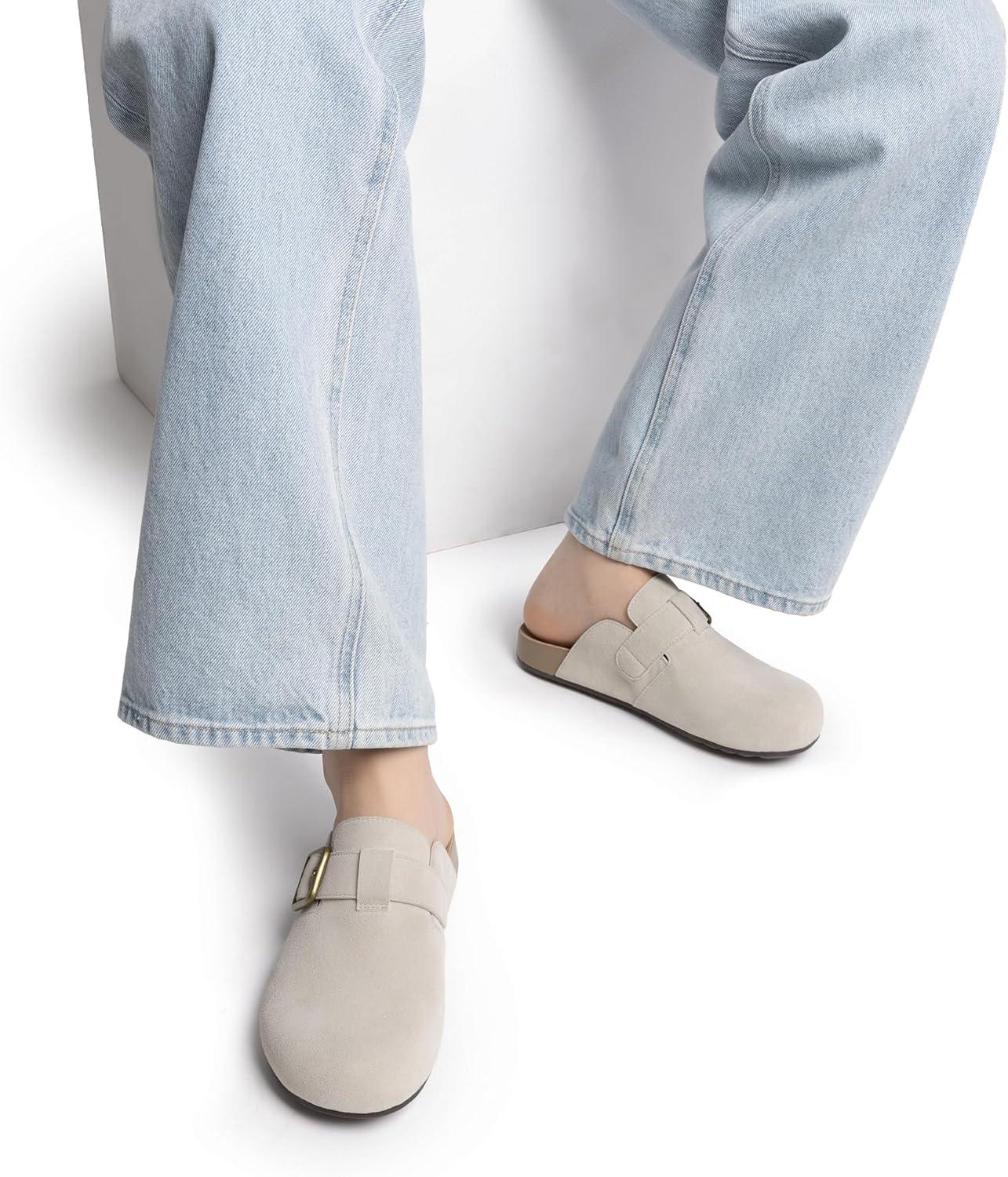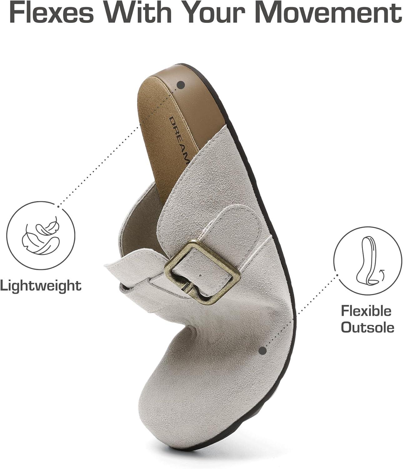 DREAM PAIRS Clogs for Women Suede Mules Wide Toe Shoes Wide Width Slip On Comfortable Clogs with Lightweight Soft Footbed, Anti-Slip Outsole, Arch Support(Grey)