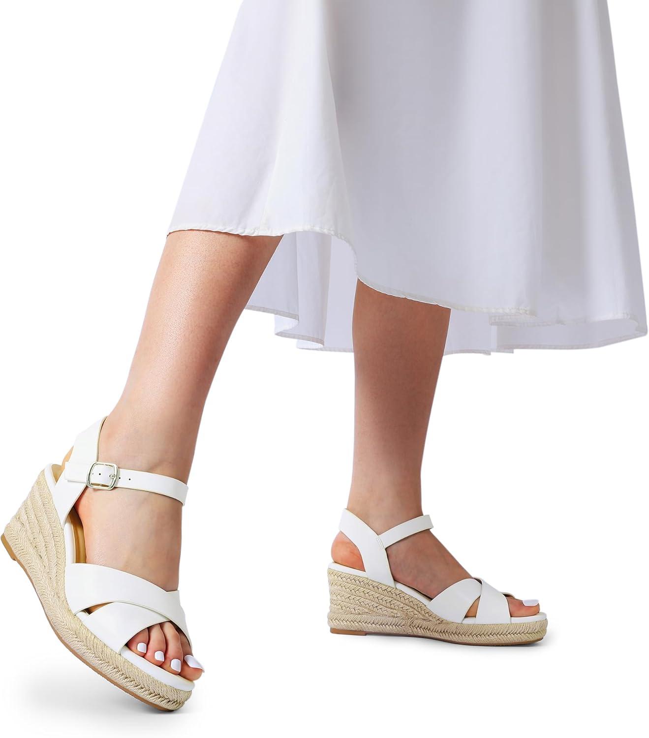 DREAM PAIRS Espadrille Dressy Wedge Sandals, Women’s Platform Sandals Casual Summer, Comfortable High Heeled Wedges with Adjustable Buckle(White-pu)