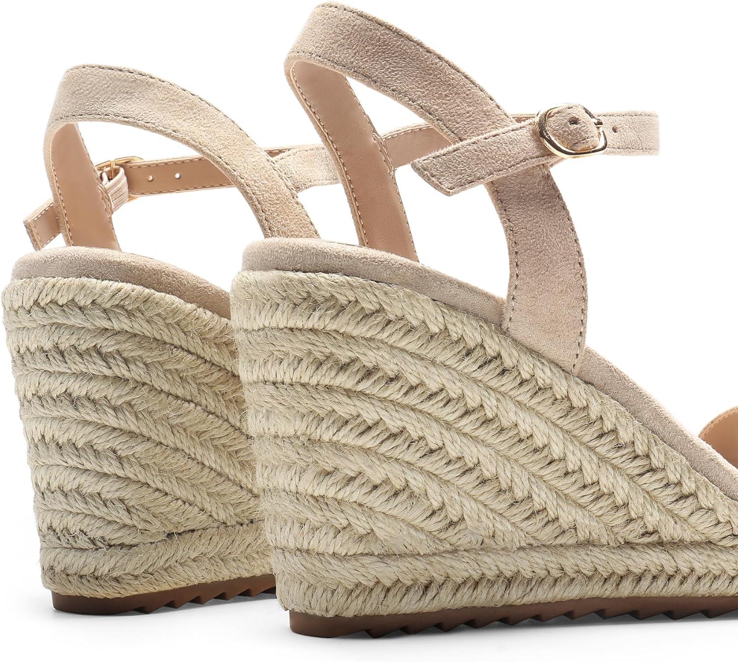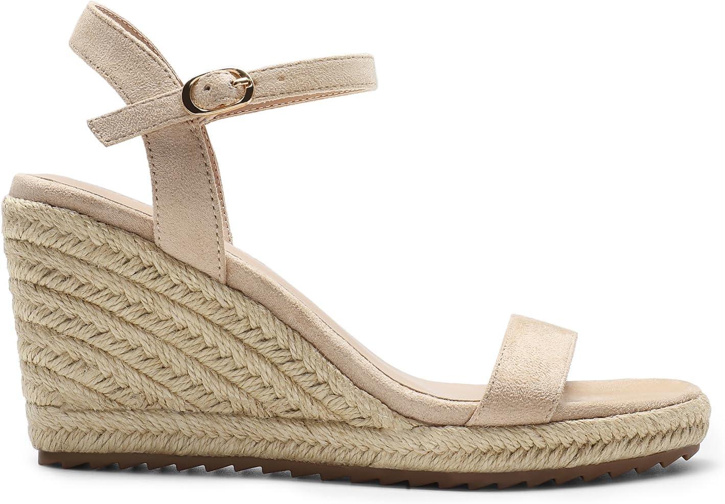 DREAM PAIRS Espadrilles Wedge Sandals for Women, Women’s Open Toe Summer Dressy Sandals with Adjustable Ankle Strap and Soft Footbed,Size 8,Nude,DWUMWS2502