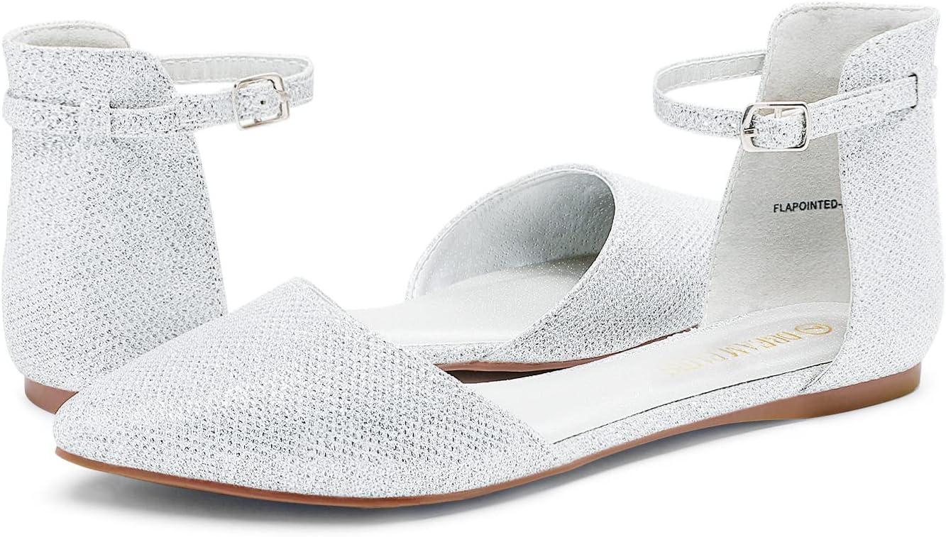 DREAM PAIRS Flapointed Women’s Casual D’Orsay Pointed Plain Ballet Comfort Soft Slip On Flats Shoes(All Silver)