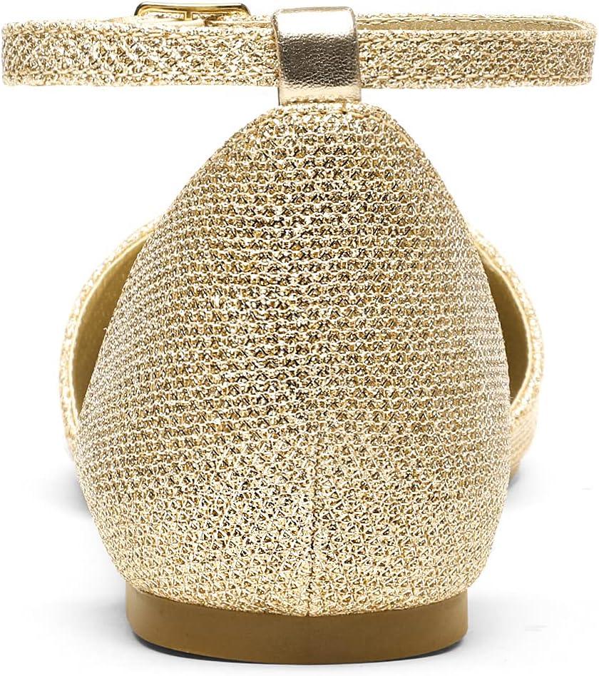 DREAM PAIRS Flapointed Women’s Casual D’Orsay Pointed Plain Ballet Comfort Soft Slip On Flats Shoes(Gold/Glitter)