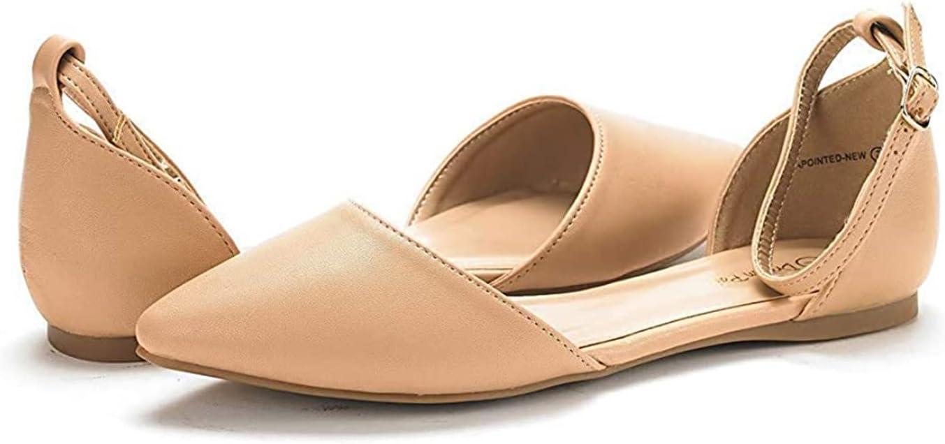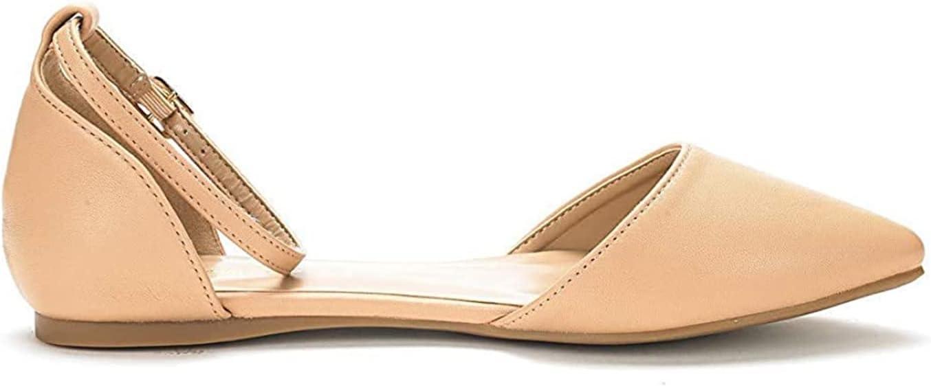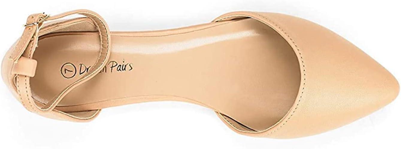 DREAM PAIRS Flapointed Women’s Casual D’Orsay Pointed Plain Ballet Comfort Soft Slip On Flats Shoes(Nude/Pu)