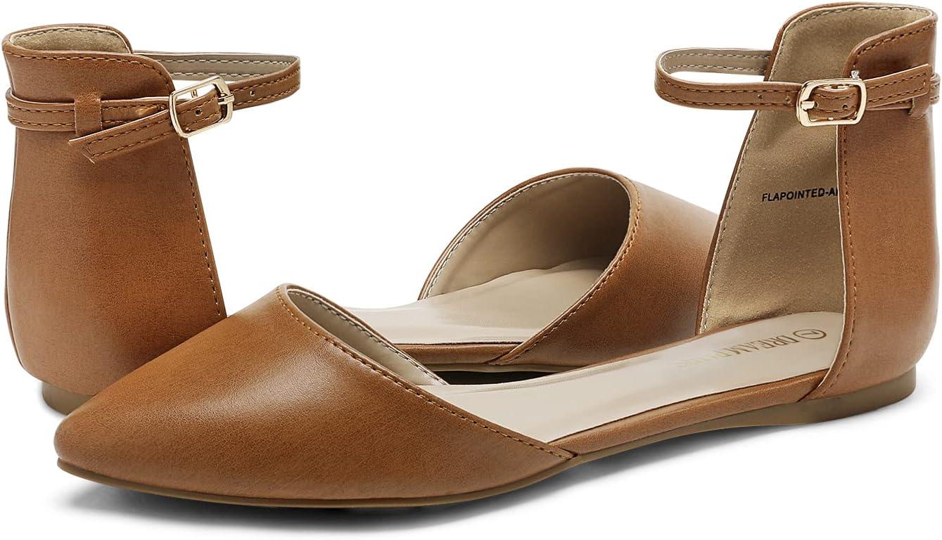 DREAM PAIRS Flapointed Women’s Casual D’Orsay Pointed Plain Ballet Comfort Soft Slip On Flats Shoes(Tan)