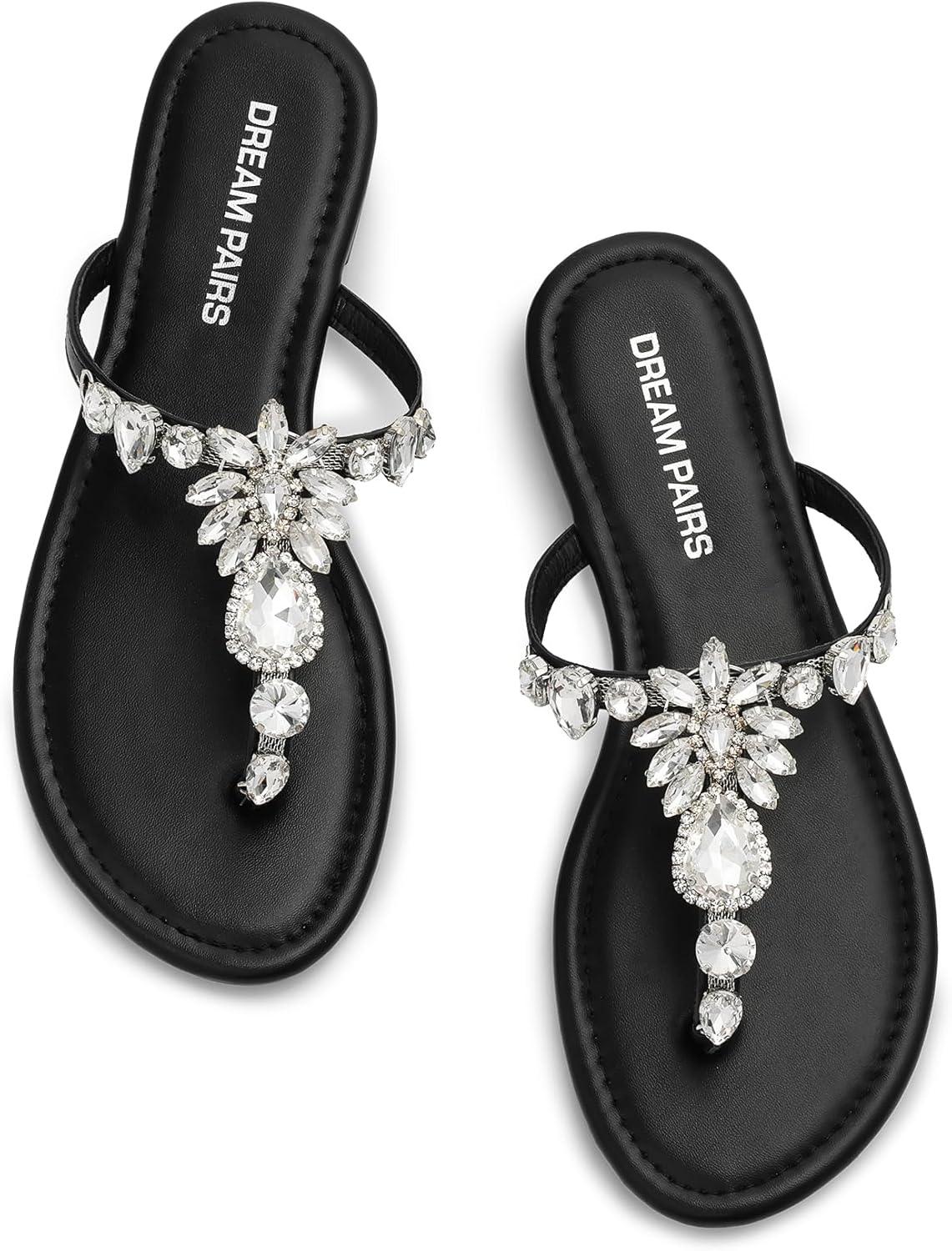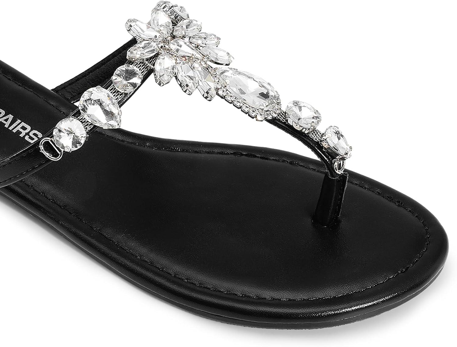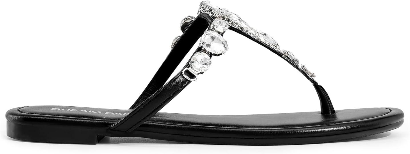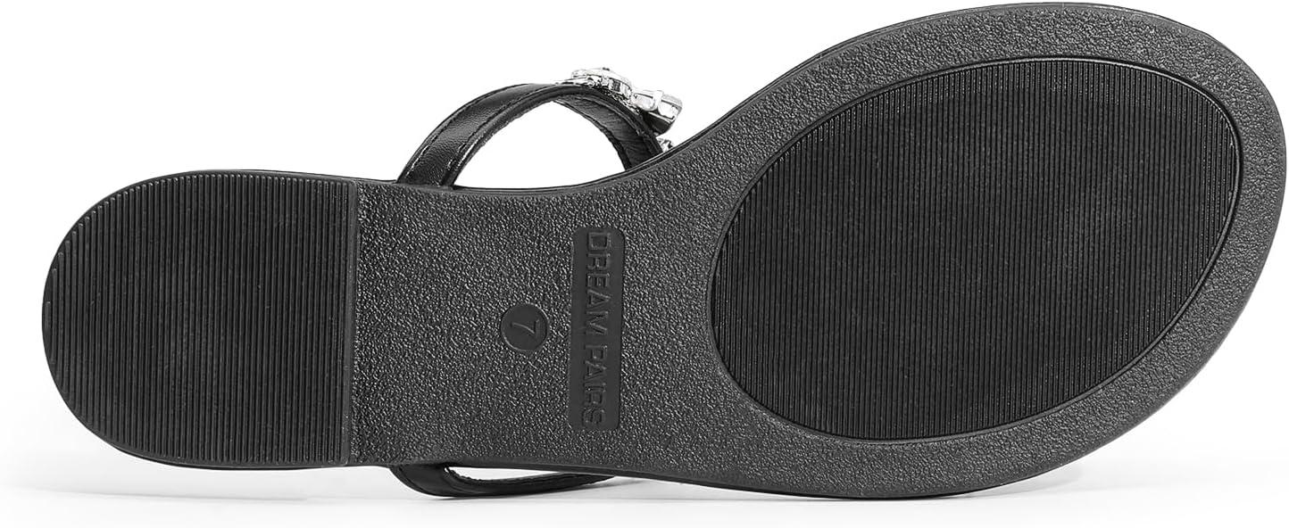DREAM PAIRS Flip Flops for Women Dressy Rhinestone T-Strap Thong Sandals for Summers Dress Beach(Black)