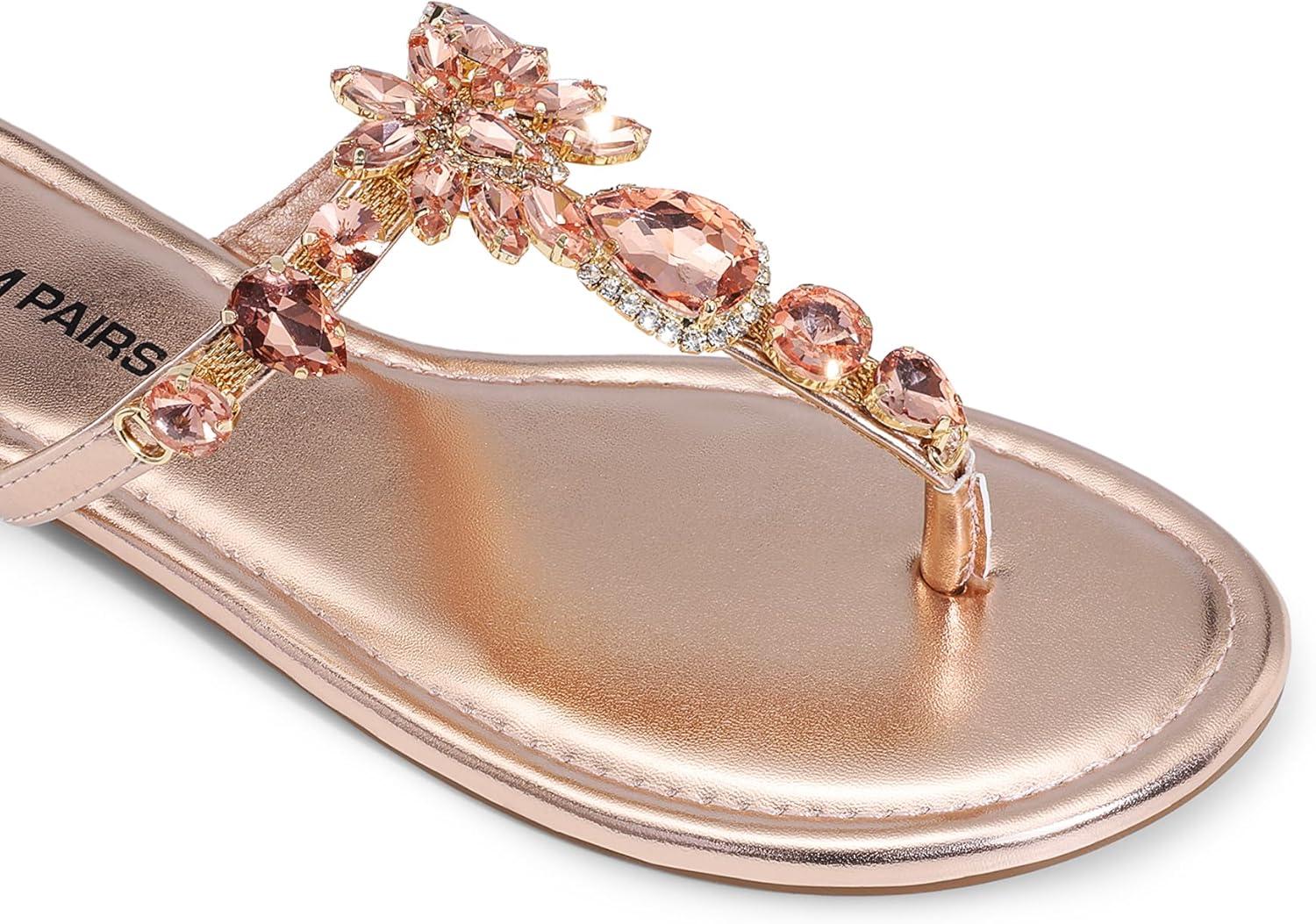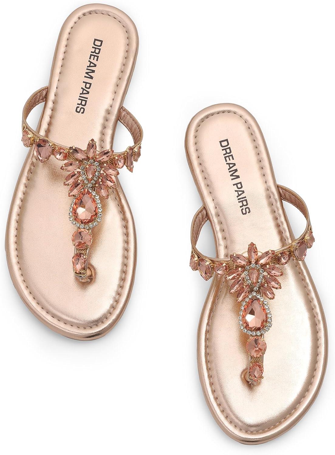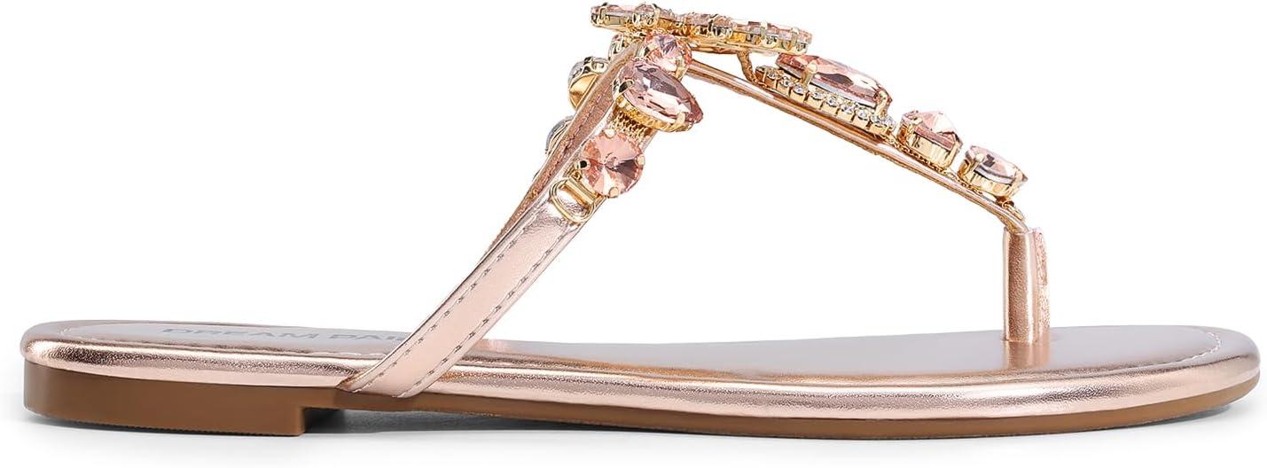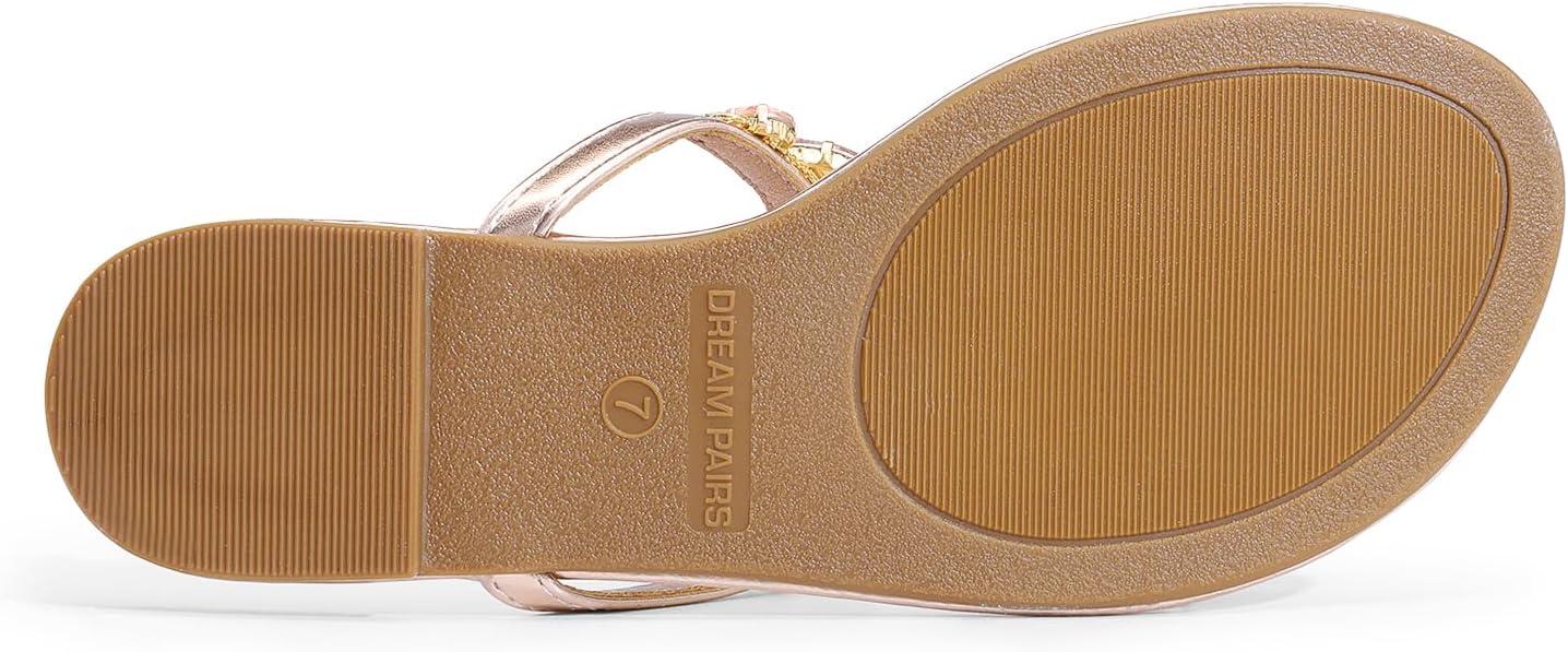 DREAM PAIRS Flip Flops for Women Dressy Rhinestone T-Strap Thong Sandals for Summers Dress Beach(Champagne)