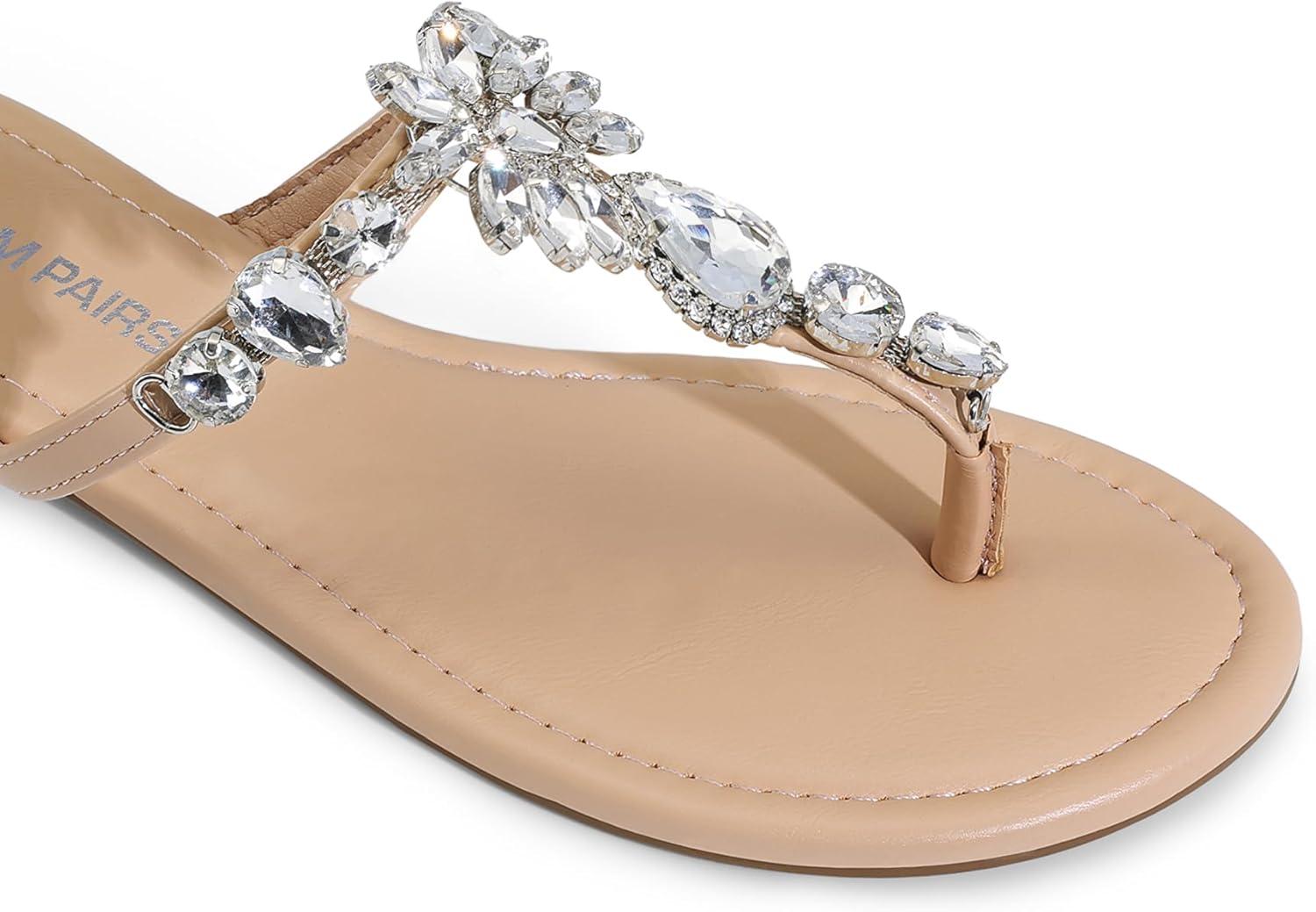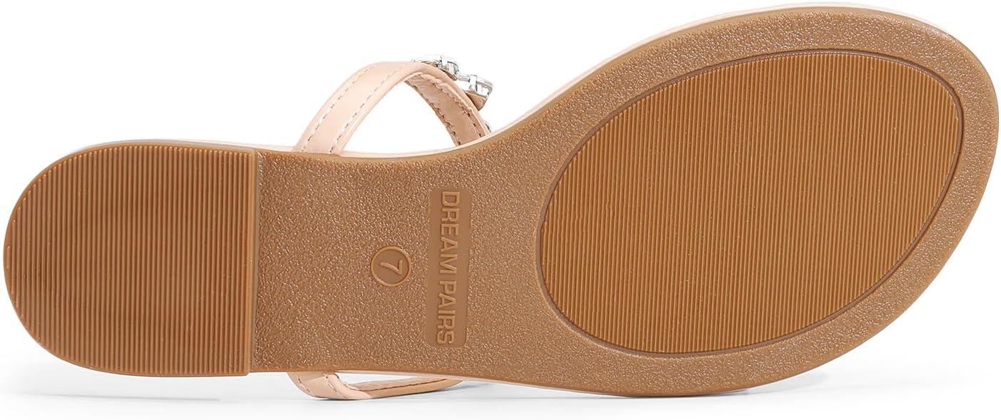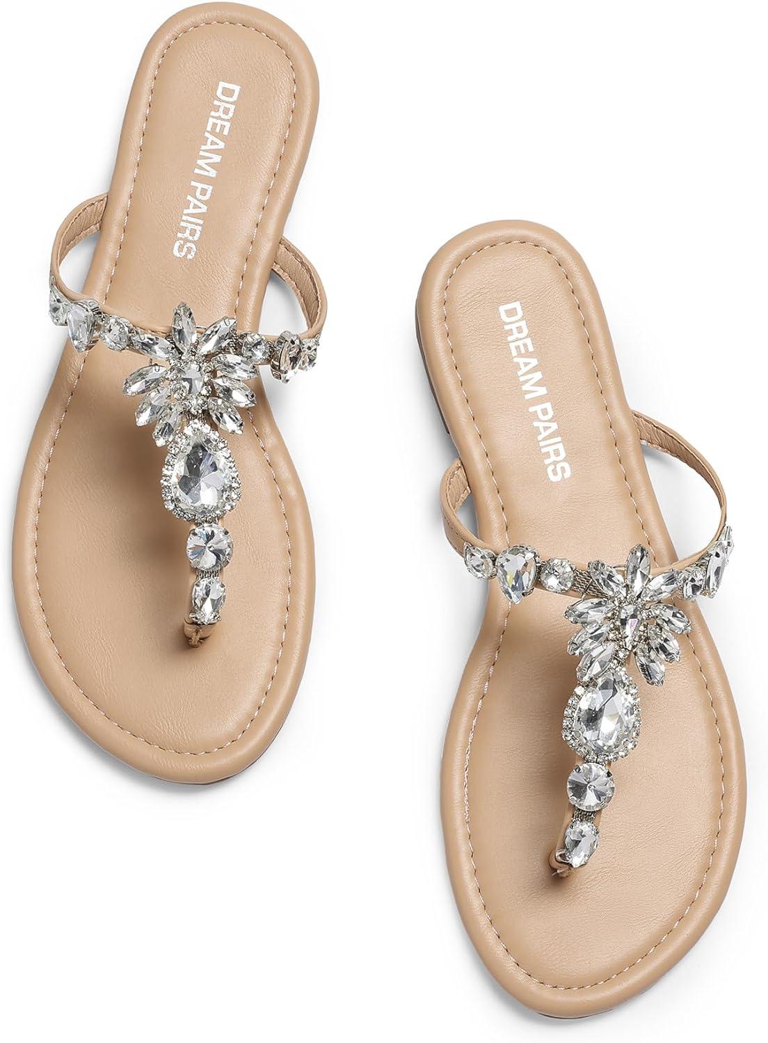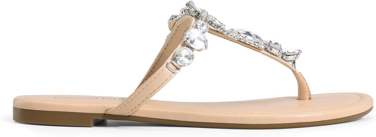 DREAM PAIRS Flip Flops for Women Dressy Rhinestone T-Strap Thong Sandals for Summers Dress Beach(Nude)