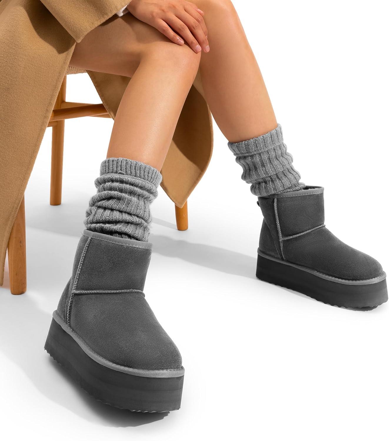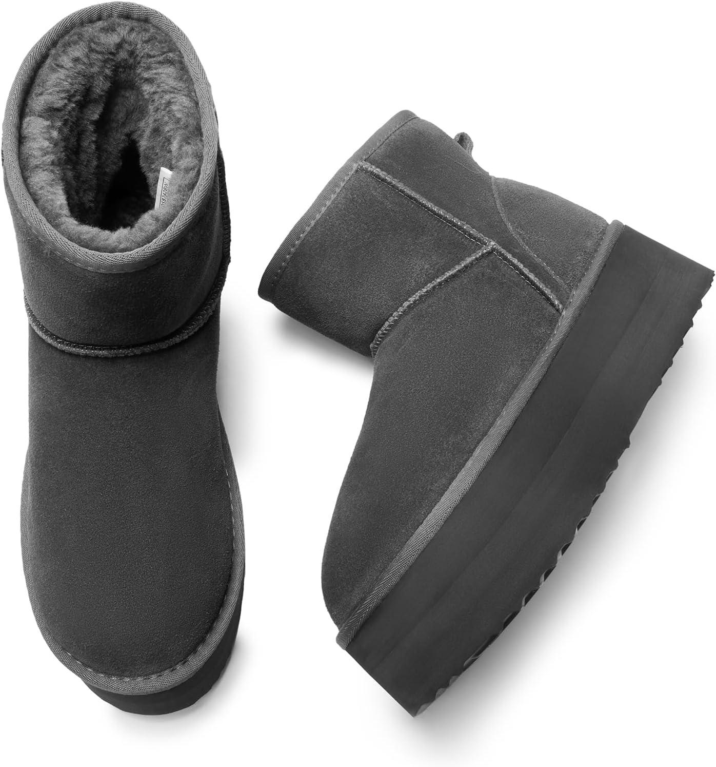 Be the first to review “DREAM PAIRS Genuine Suede Classic Platform Boots for Women Water Resistant FuzzyClassic Ankle Winter Snow Low Boots with DIY Bows Faux Fur Lining Memory Foam Anti-Slip(Grey)”