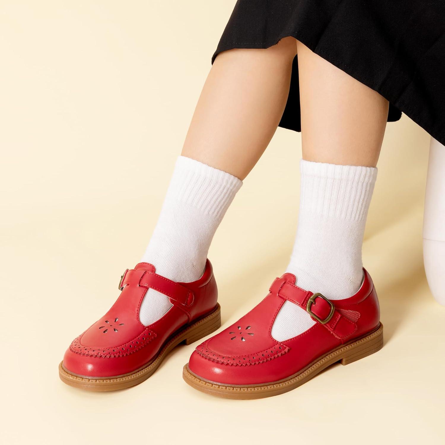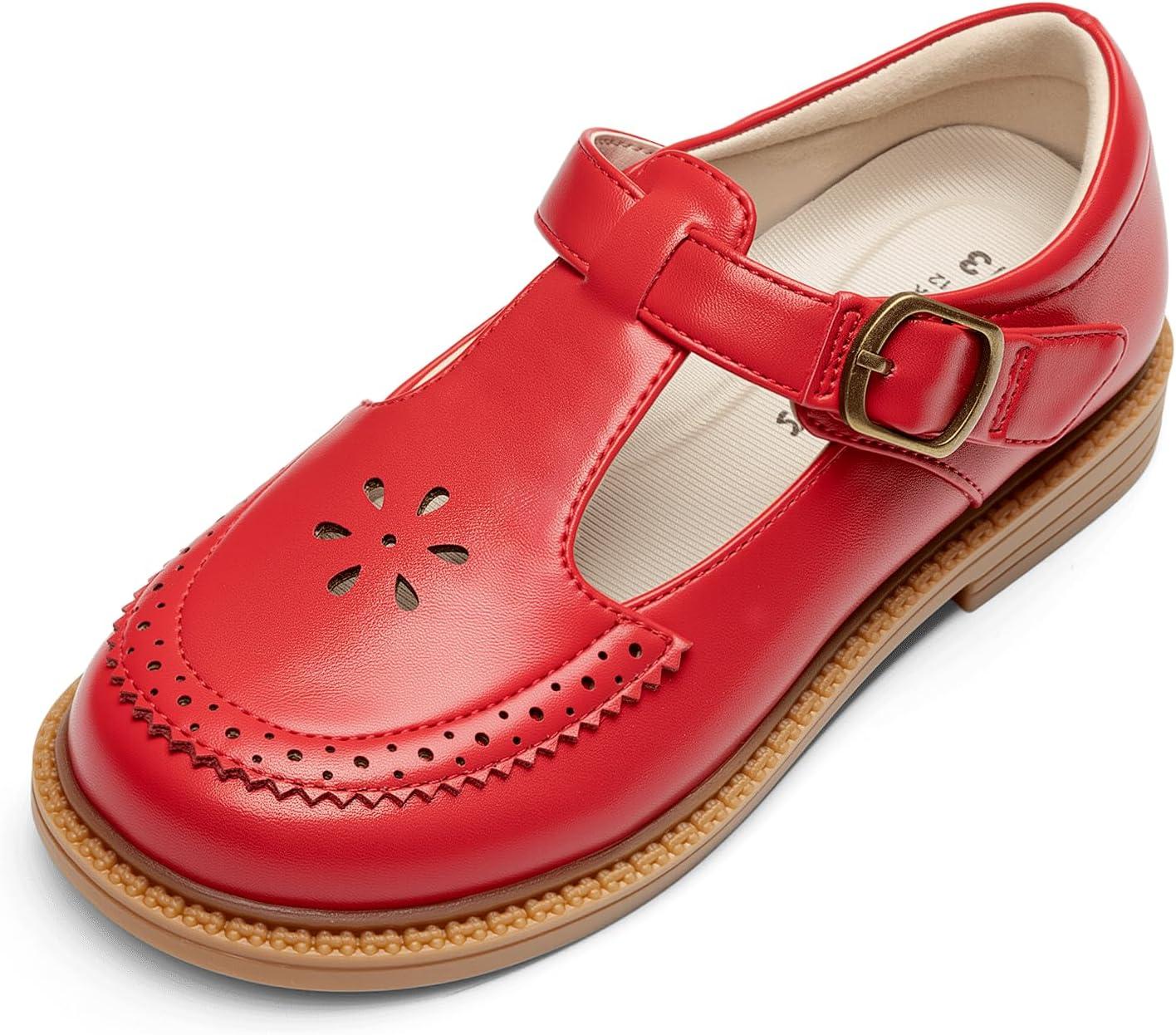 DREAM PAIRS Girl Mary Jane Dress Shoes – Ballet Flats for Girl School Uniform Shoes for Toddler Little Girls(Red)
