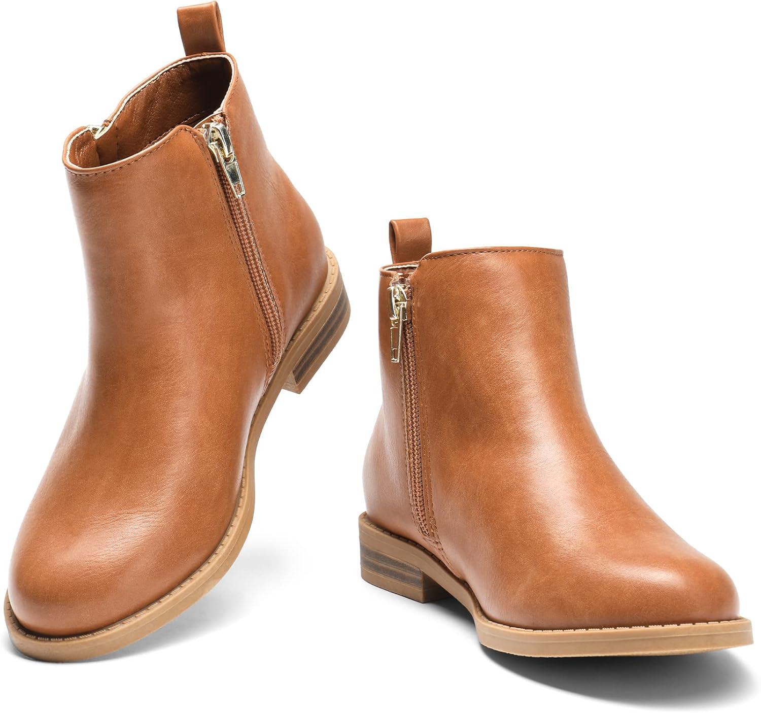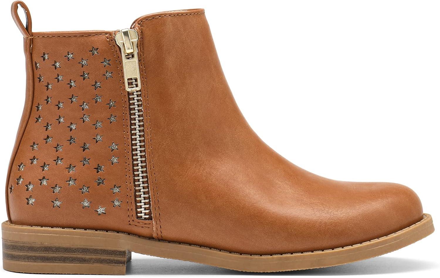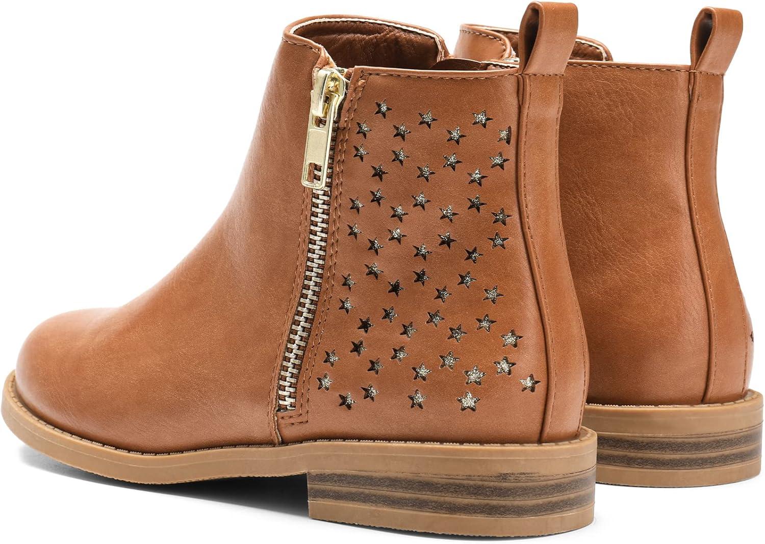 DREAM PAIRS Girls Ankle Boots Kids Fashion Booties with Glitter Stars Side Zipper Low Heels Warm Shoes for Toddler/Little Kid/Big Kid(Tan/Pu)