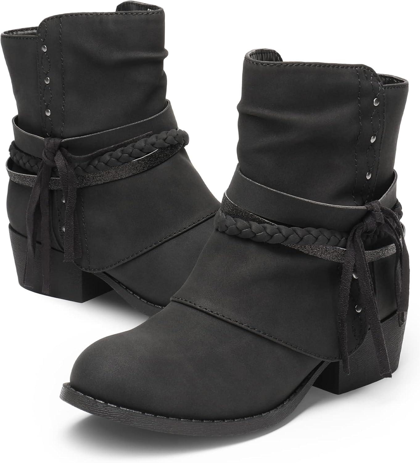 DREAM PAIRS Girls Ankle Boots Side Zipper Low Heels Boots Little Kid/Big Kid(Black)
