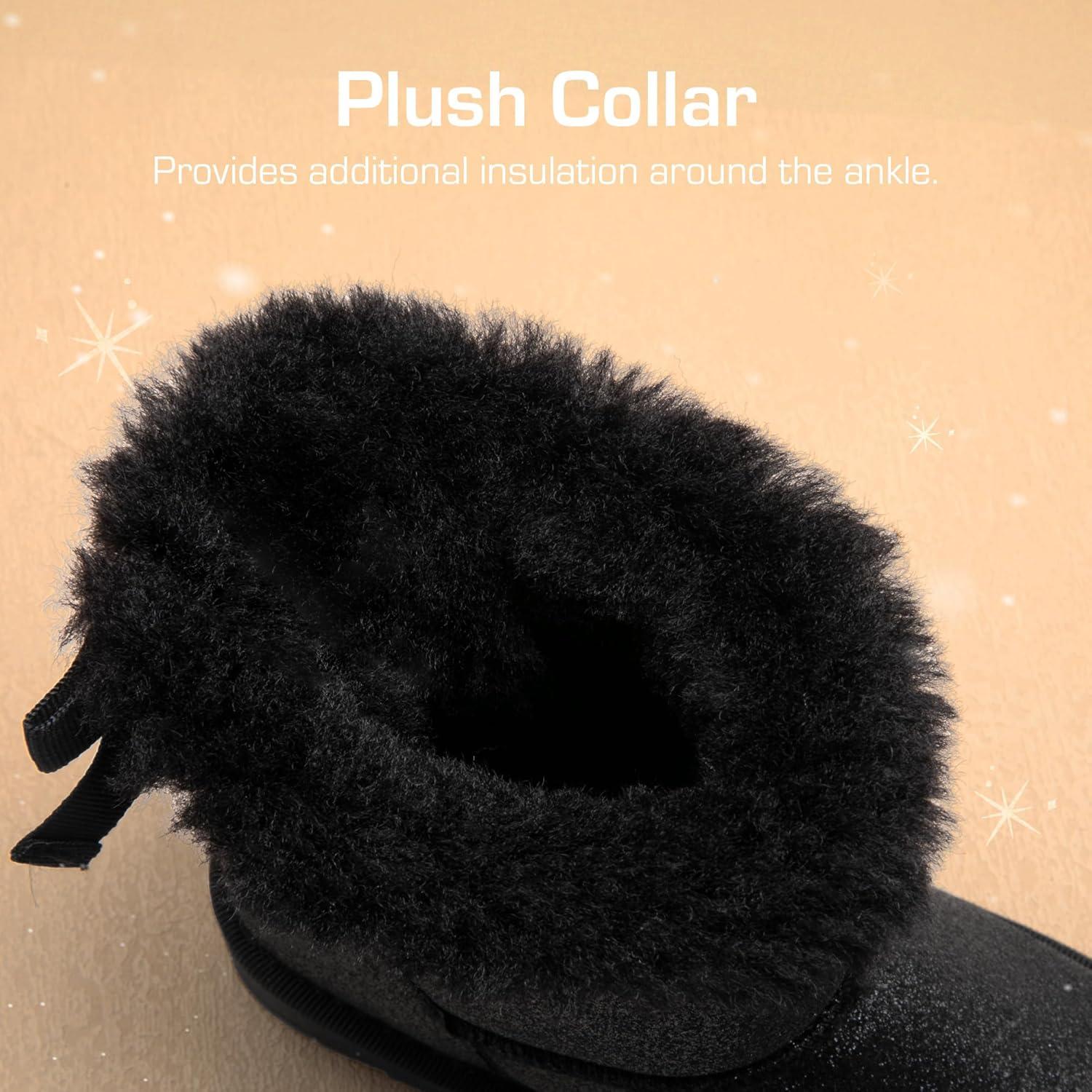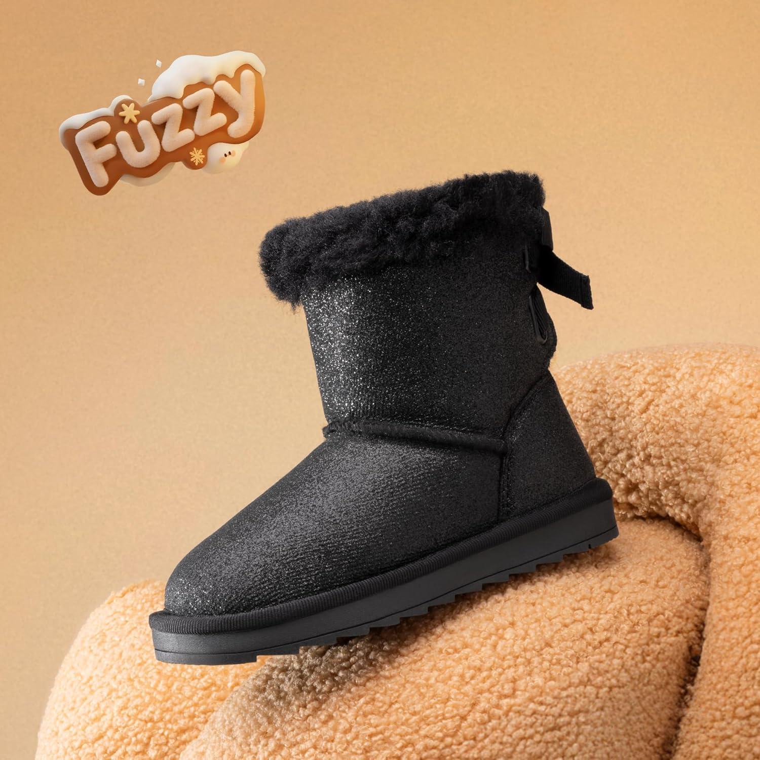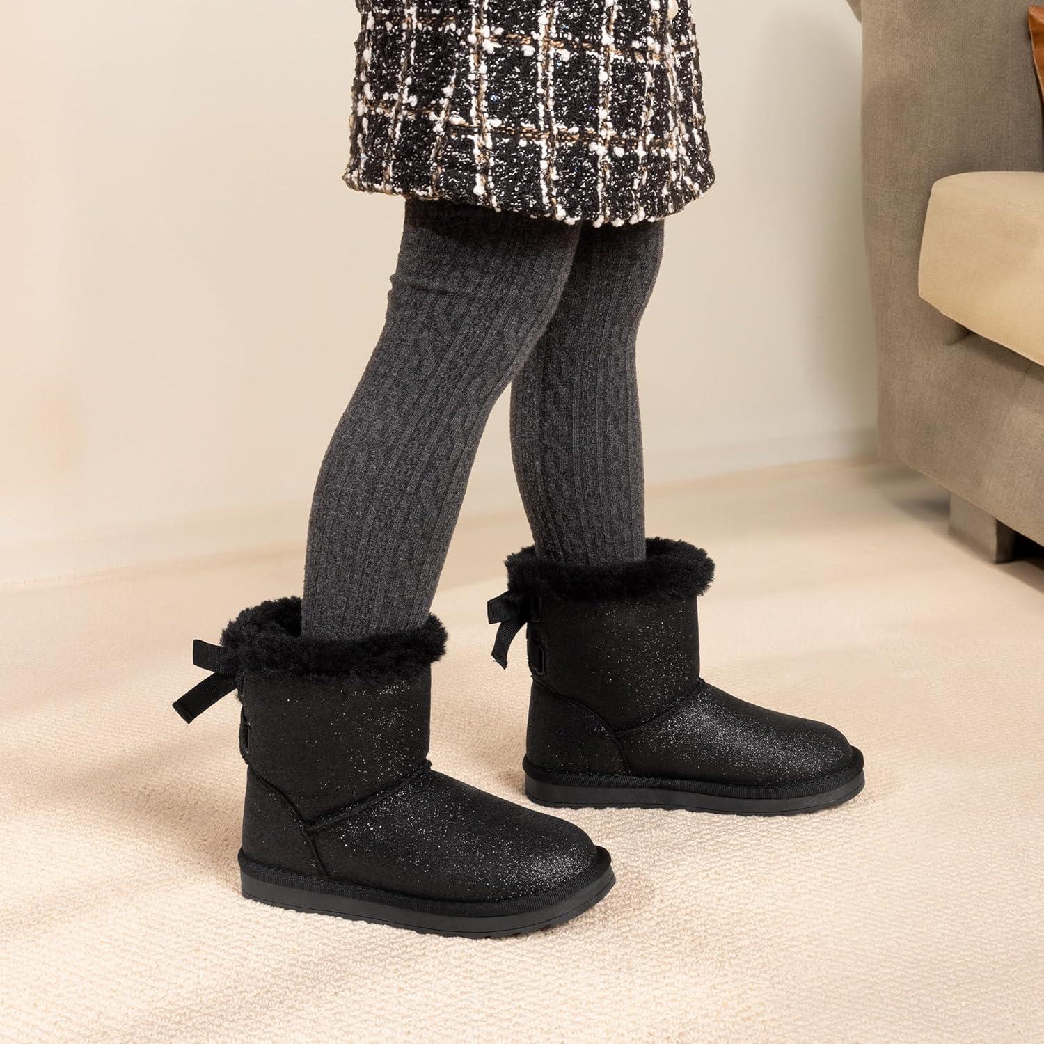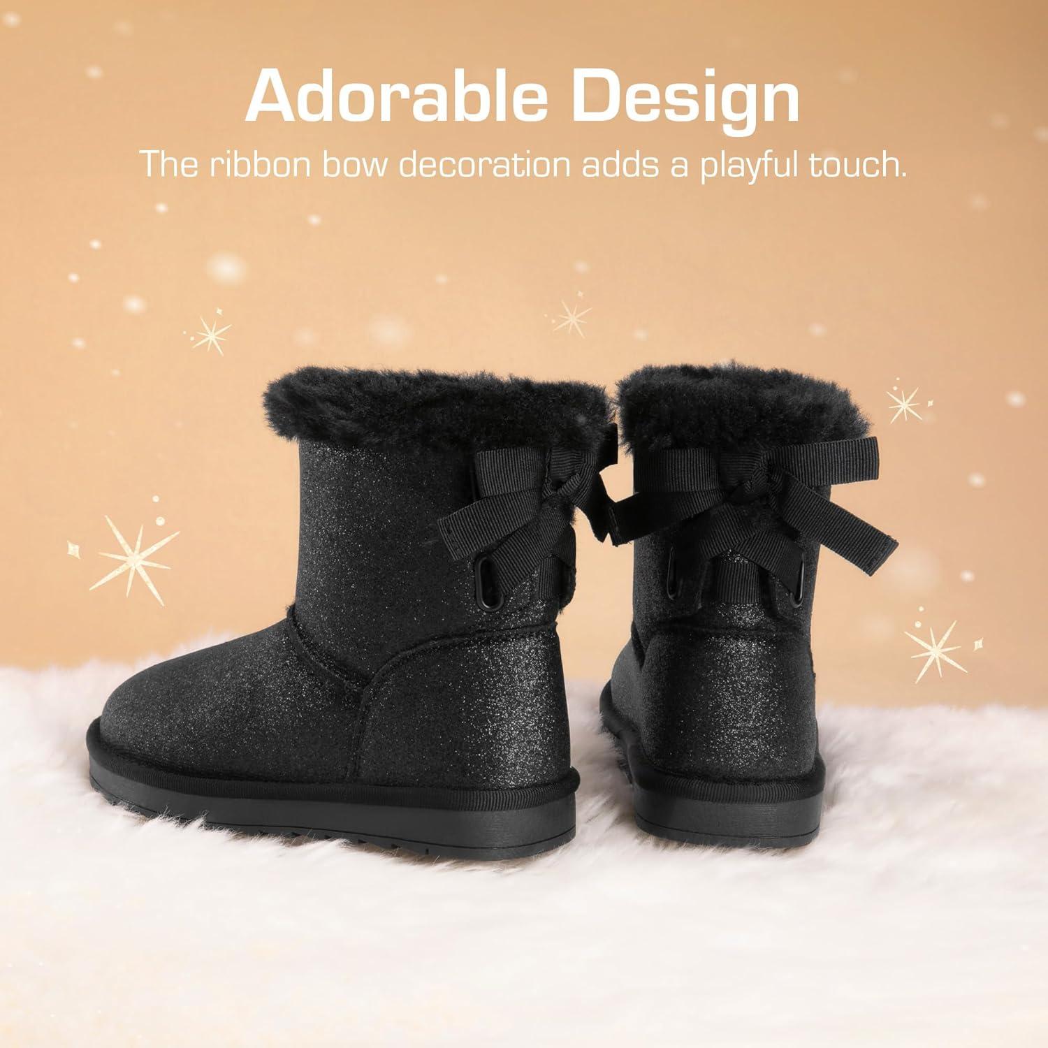 DREAM PAIRS Girls Boots Kids Winter Faux Fur Warm Snow Ankle FuzzyChic Kid’s Bow Boots for Toddler/Little Kid(Black/Glitter)