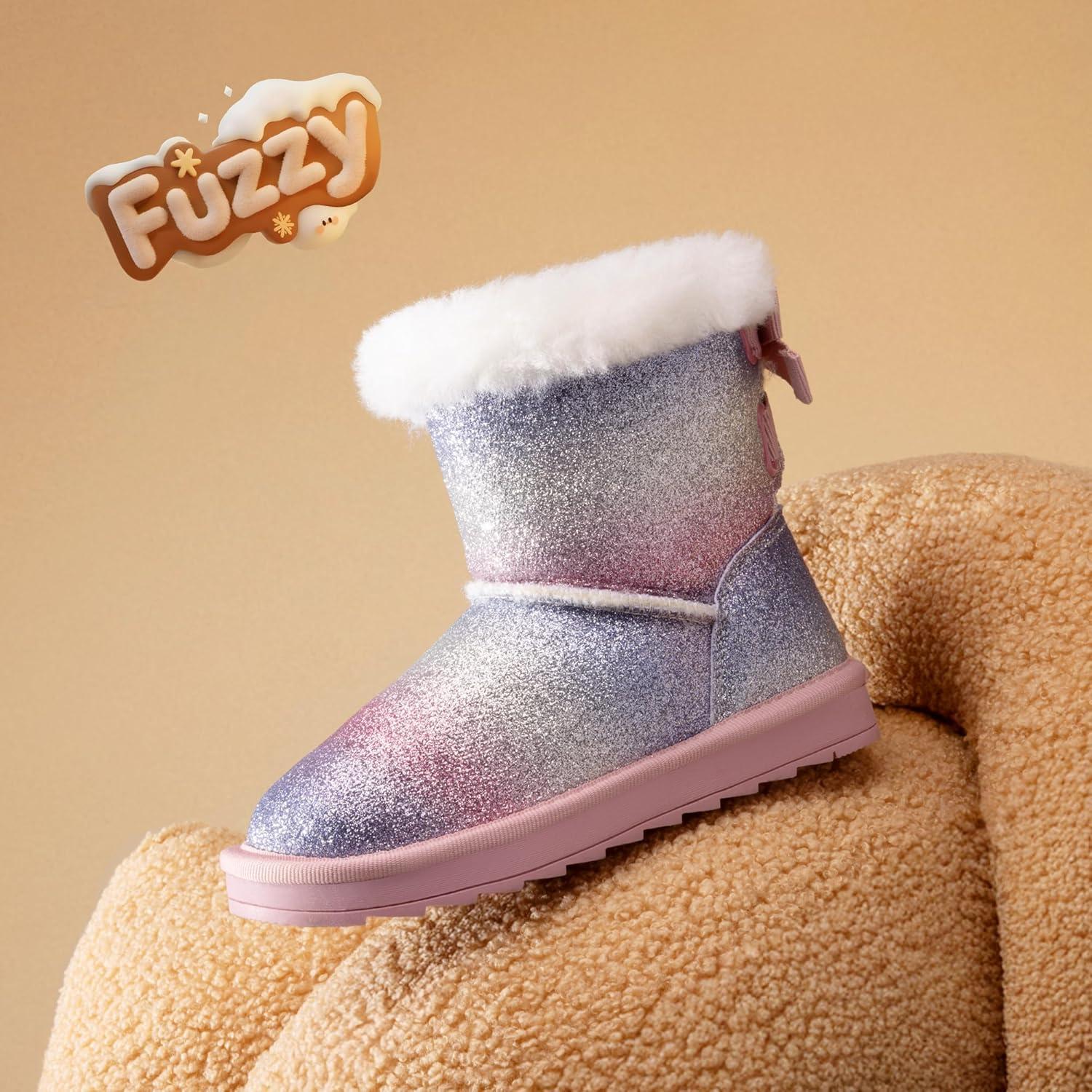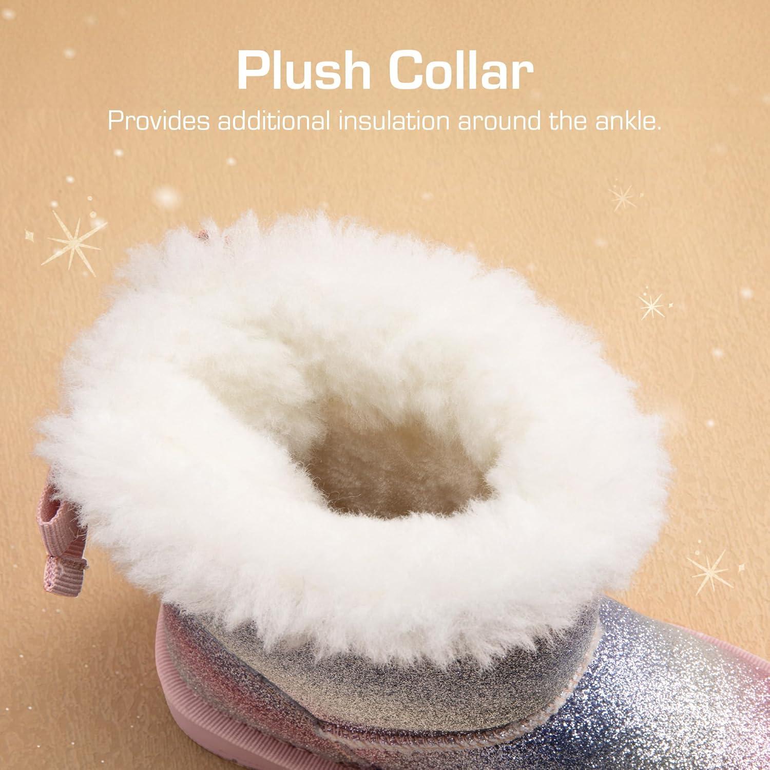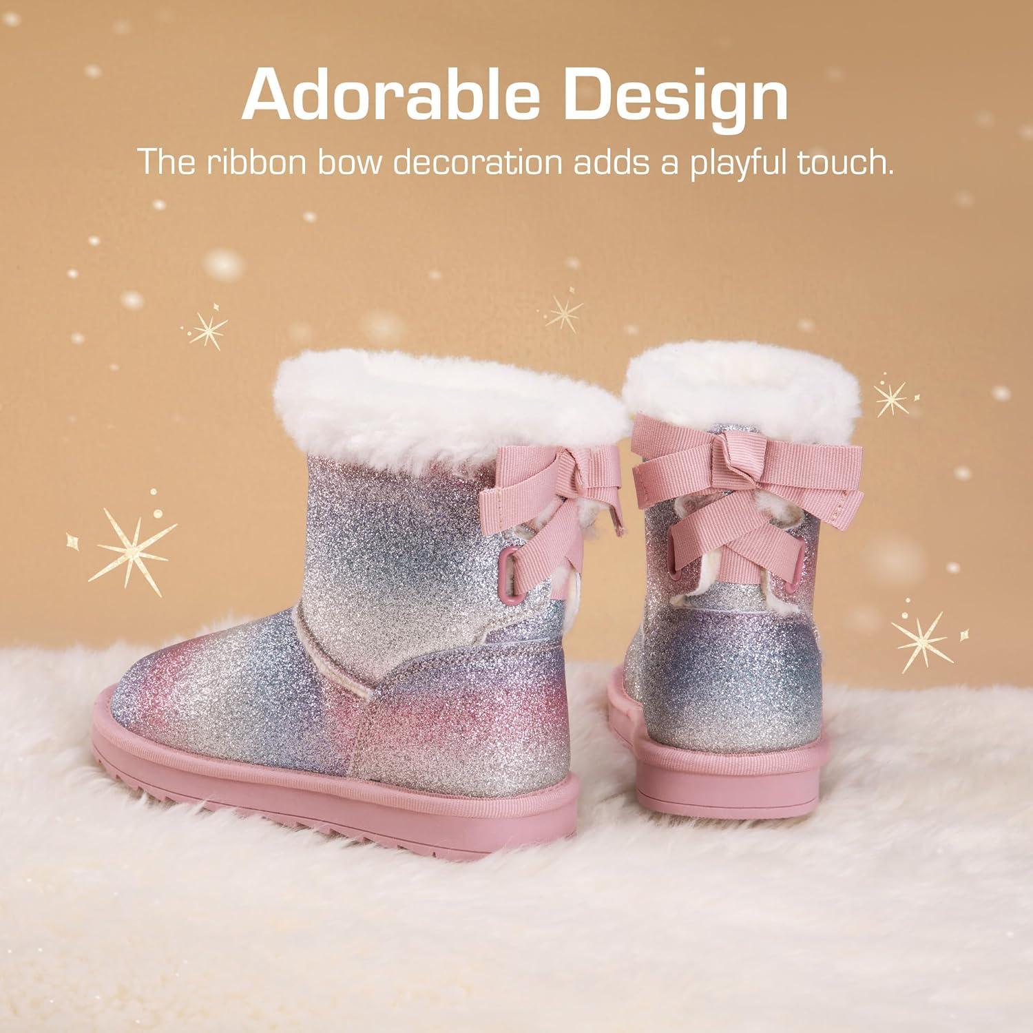 DREAM PAIRS Girls Boots Kids Winter Faux Fur Warm Snow Ankle FuzzyChic Kid’s Bow Boots for Toddler/Little Kid(Rainbow/Glitter)