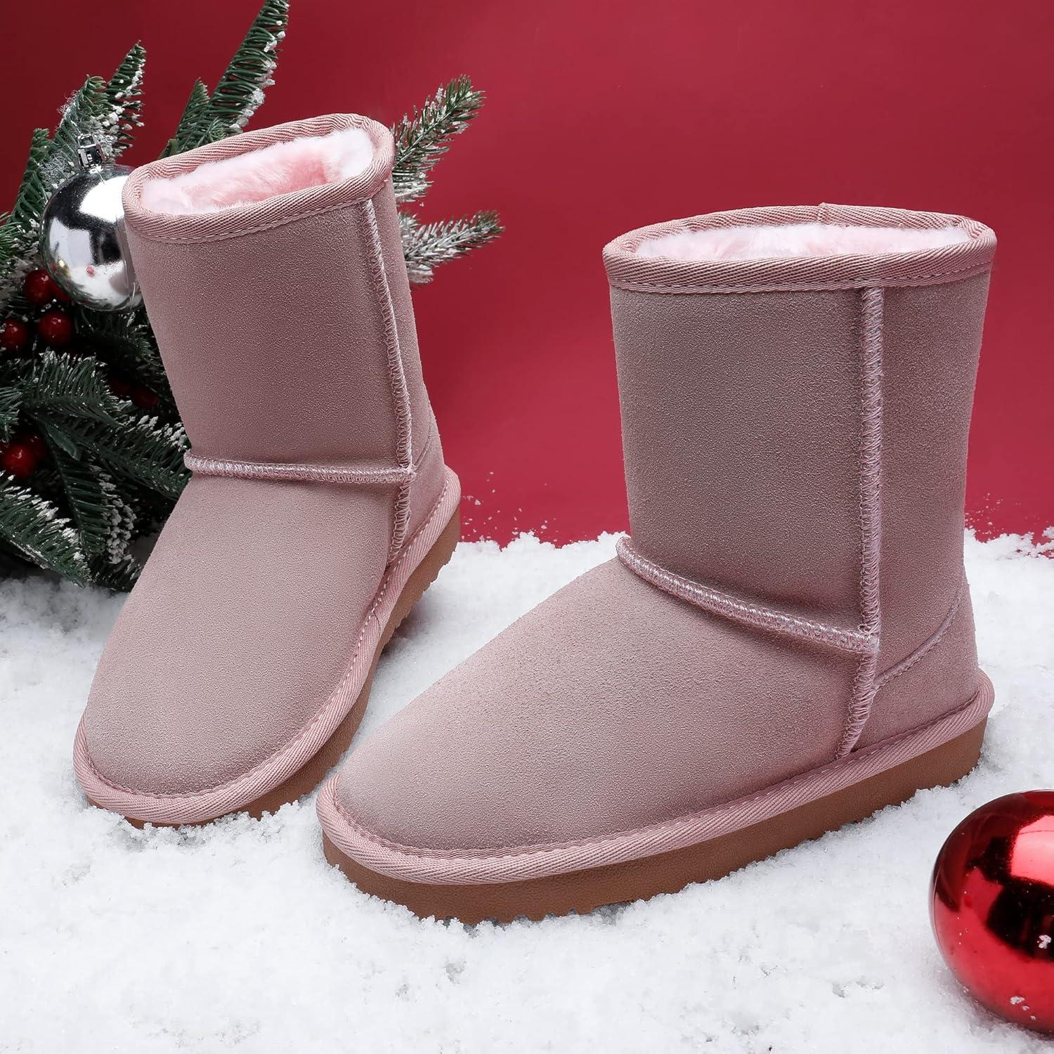 DREAM PAIRS Girls Boys Boots Kids Faux Fur Lined Winter Snow FuzzyClassic Kid’s Mid Boot(Pink)