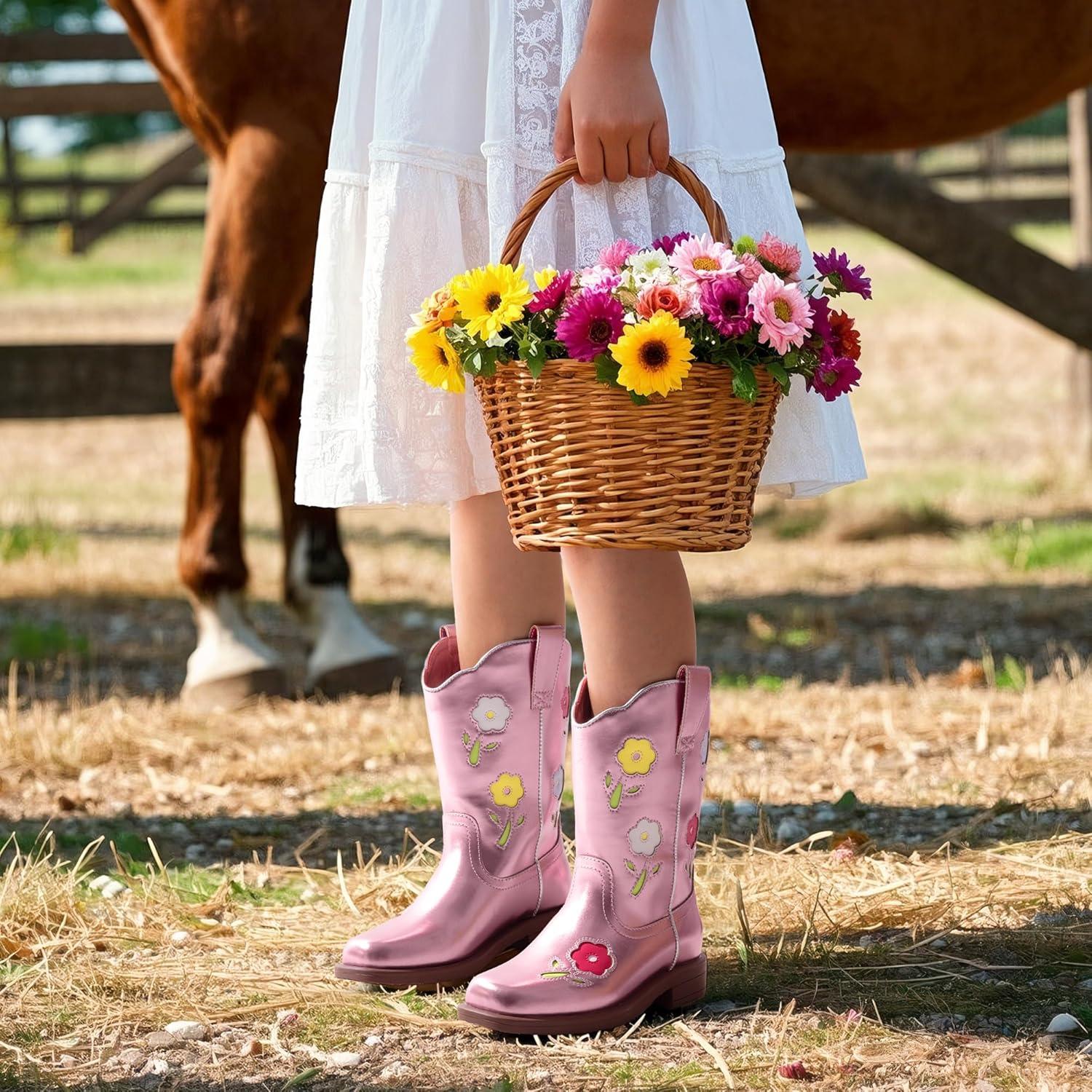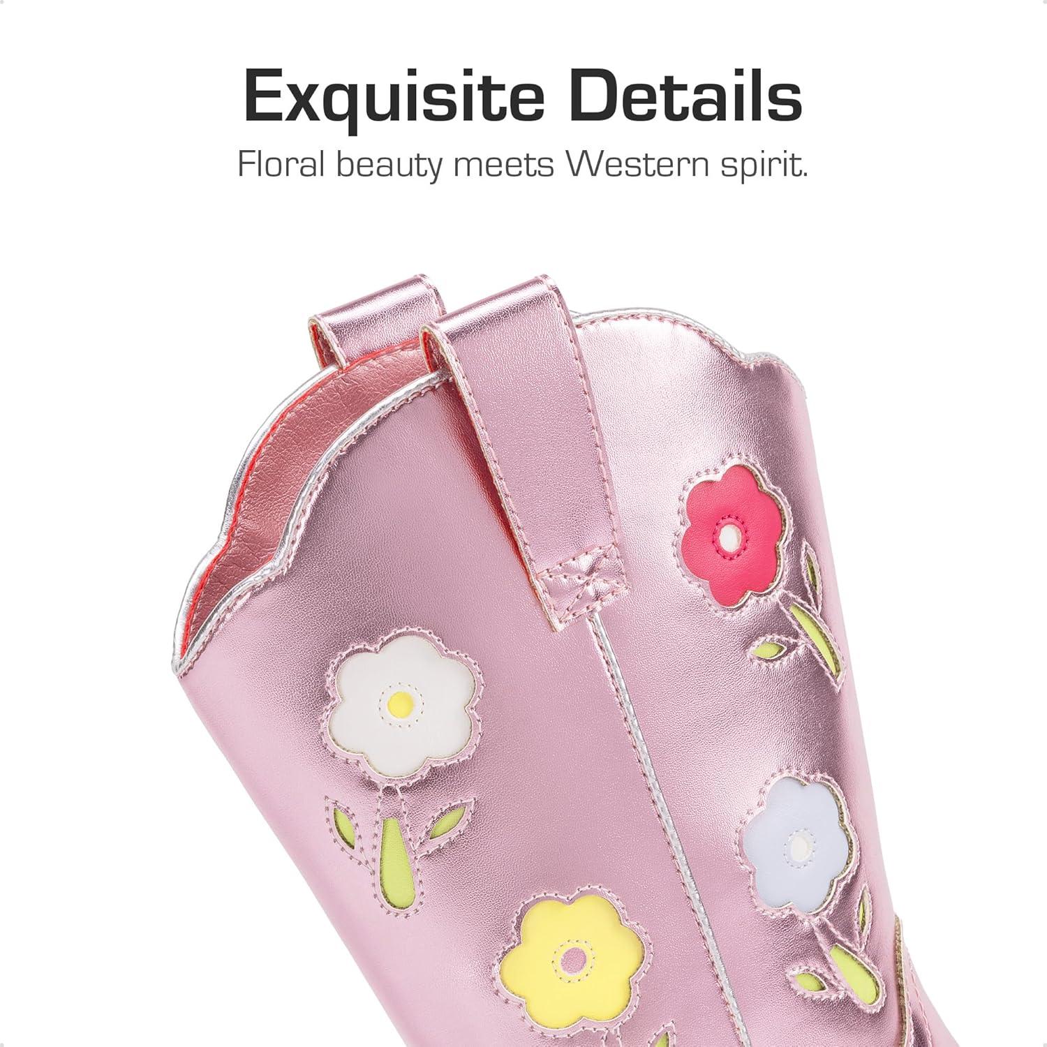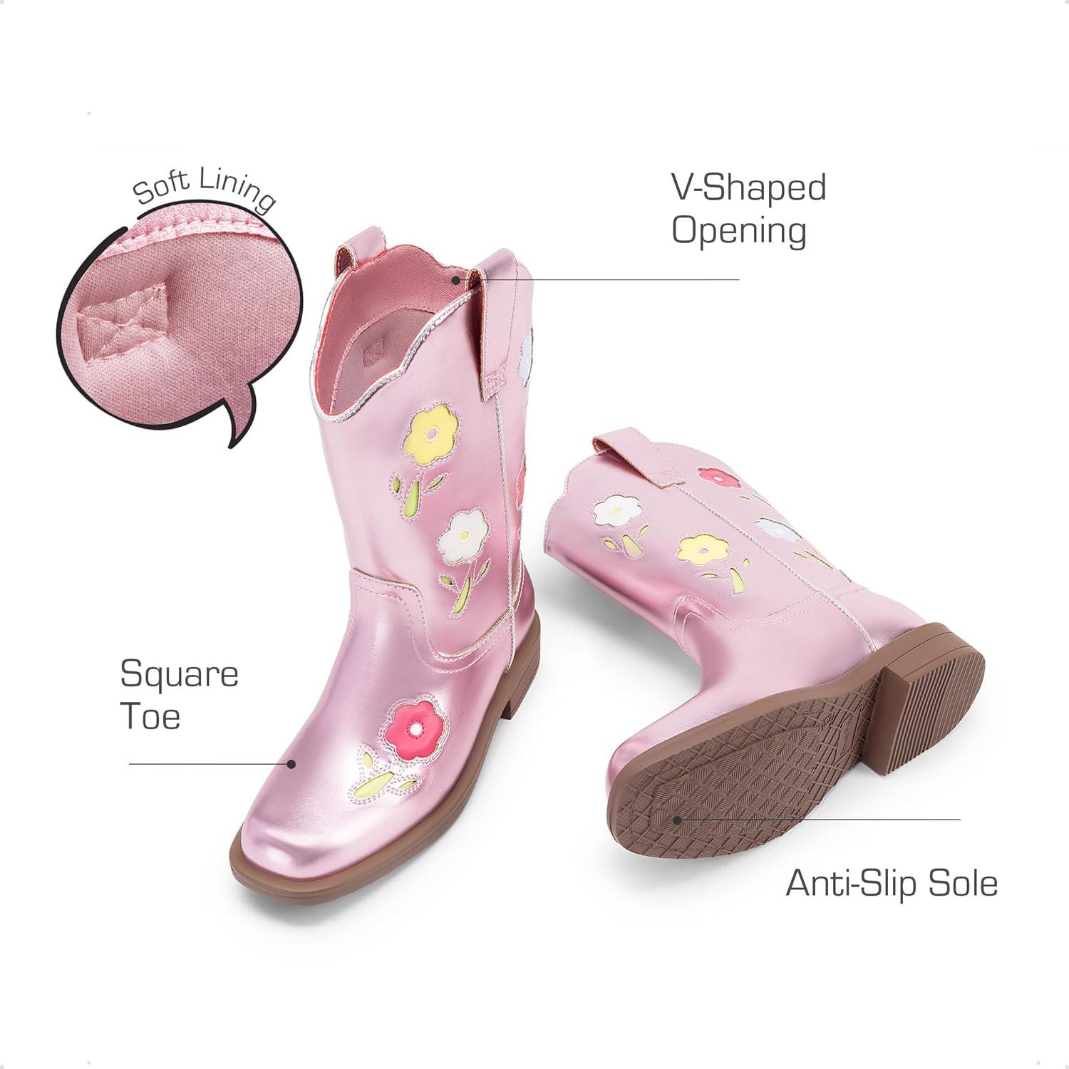 DREAM PAIRS Girls Cowgirl Boots Kids Mid Calf Western Boots Riding Shoes for Toddler/Little Kid/Big Kid(Pink)