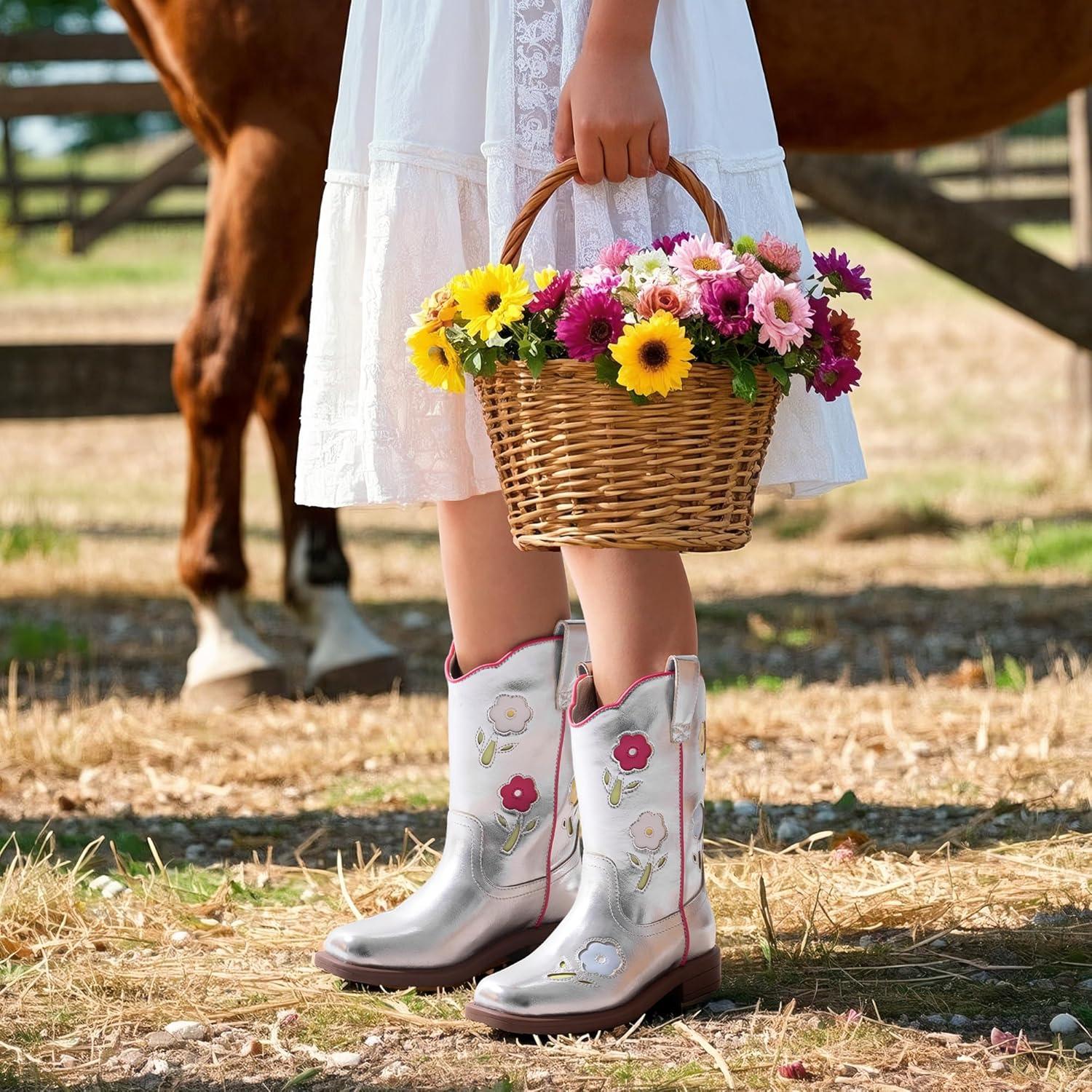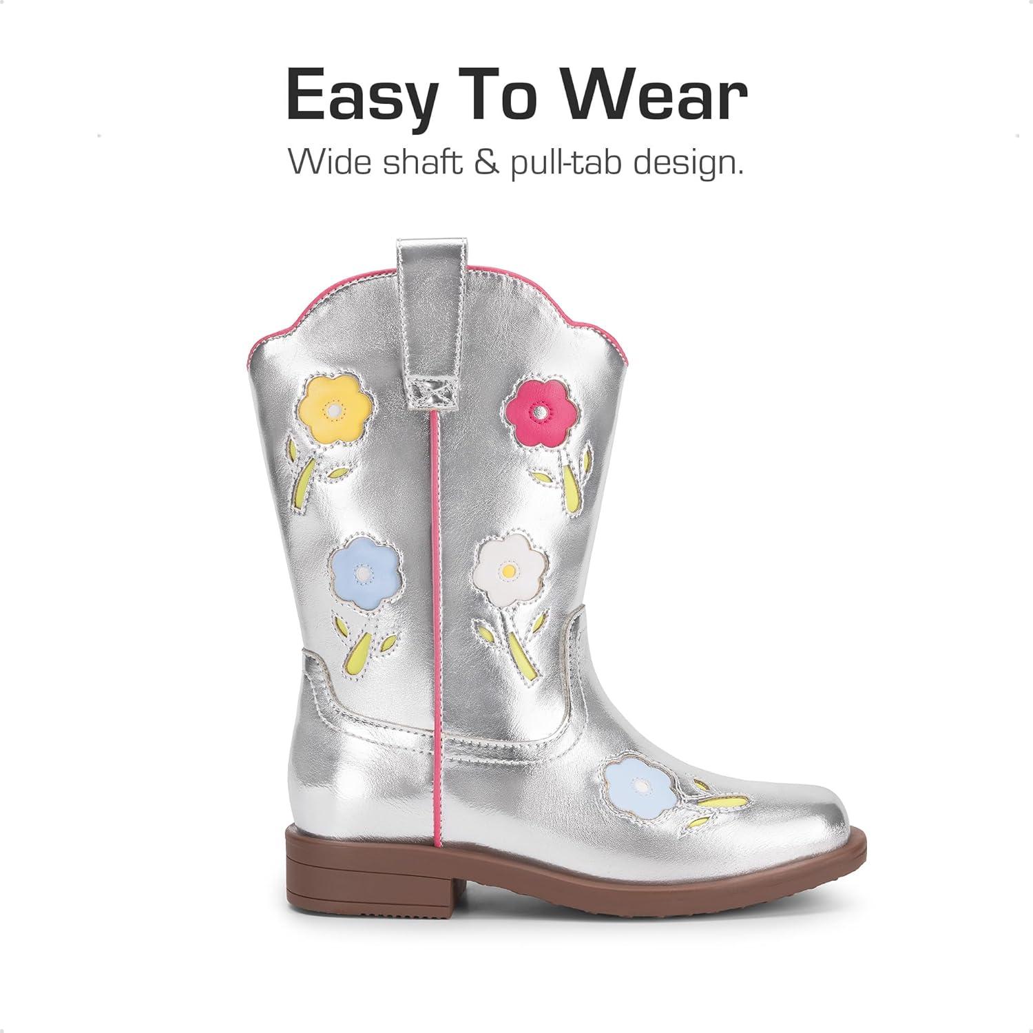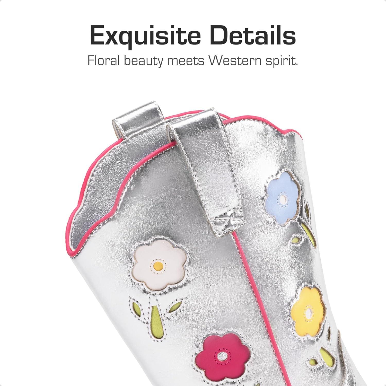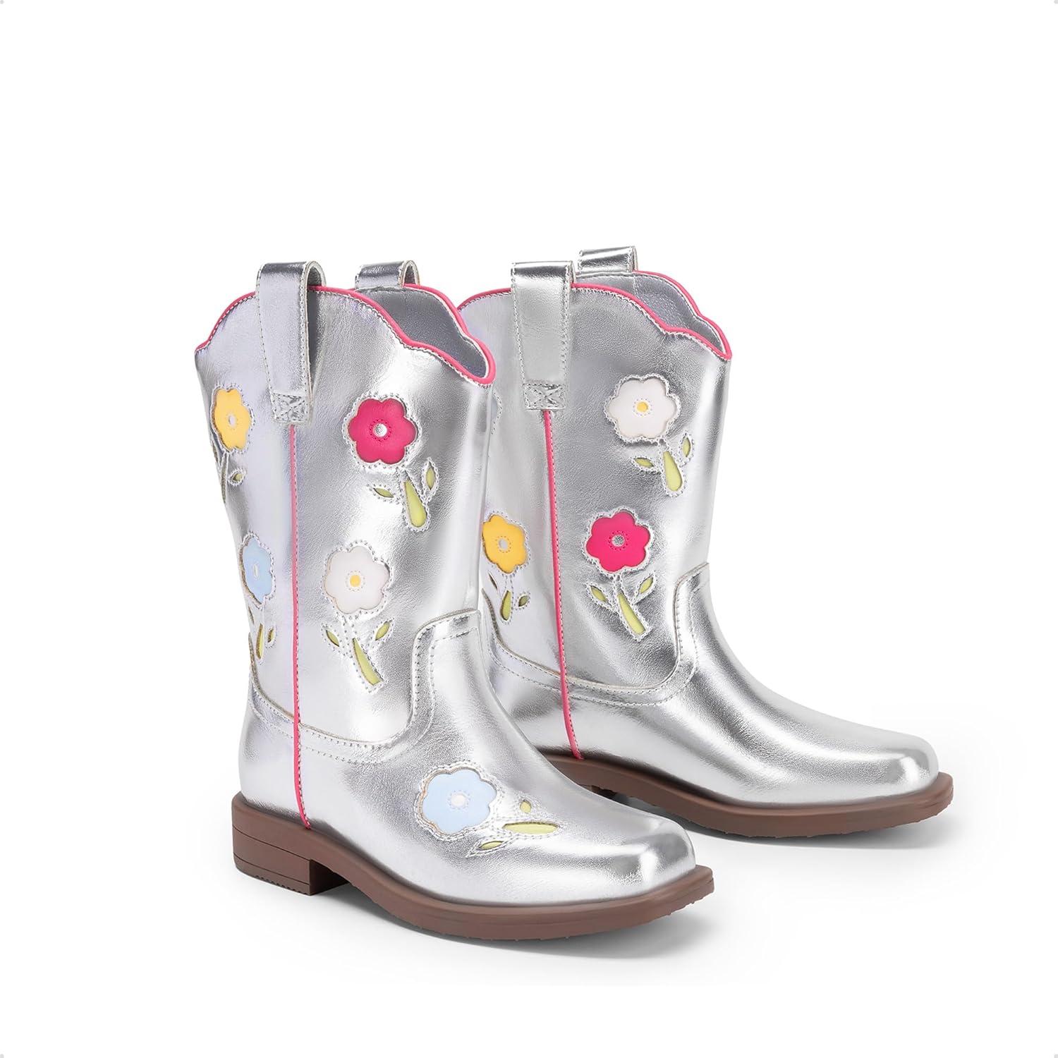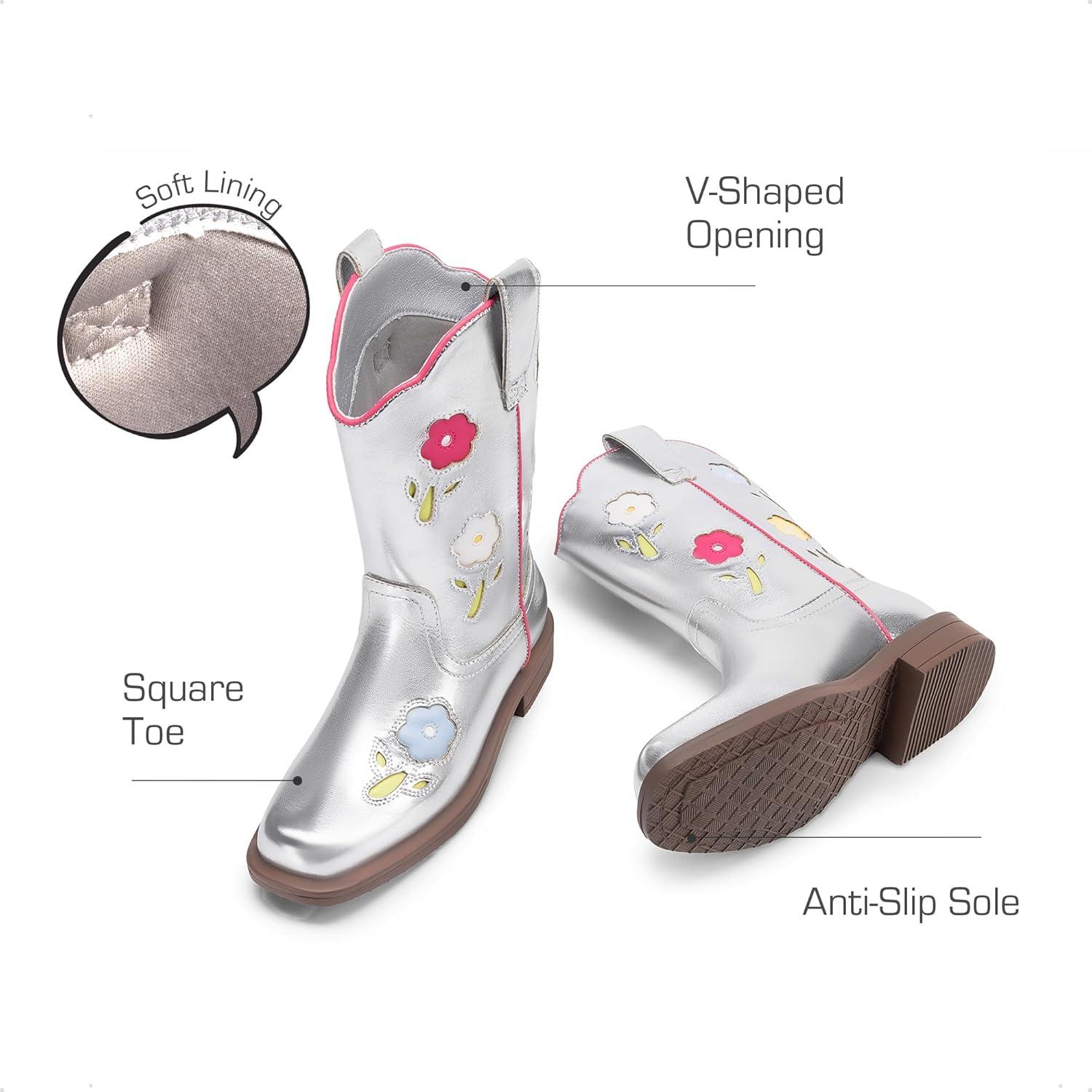 DREAM PAIRS Girls Cowgirl Boots Kids Mid Calf Western Boots Riding Shoes for Toddler/Little Kid/Big Kid(Silver)