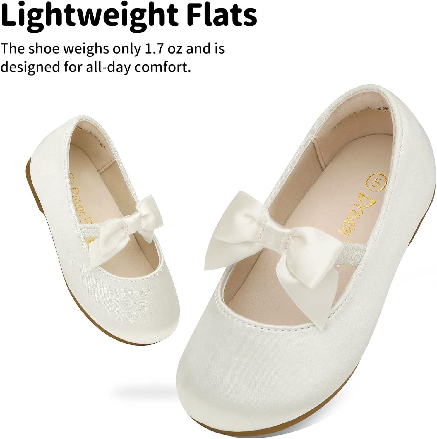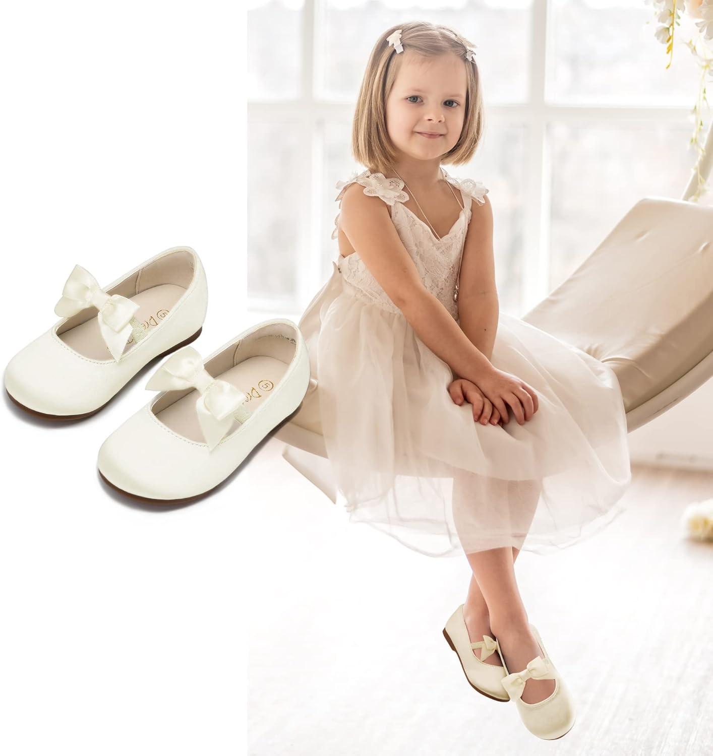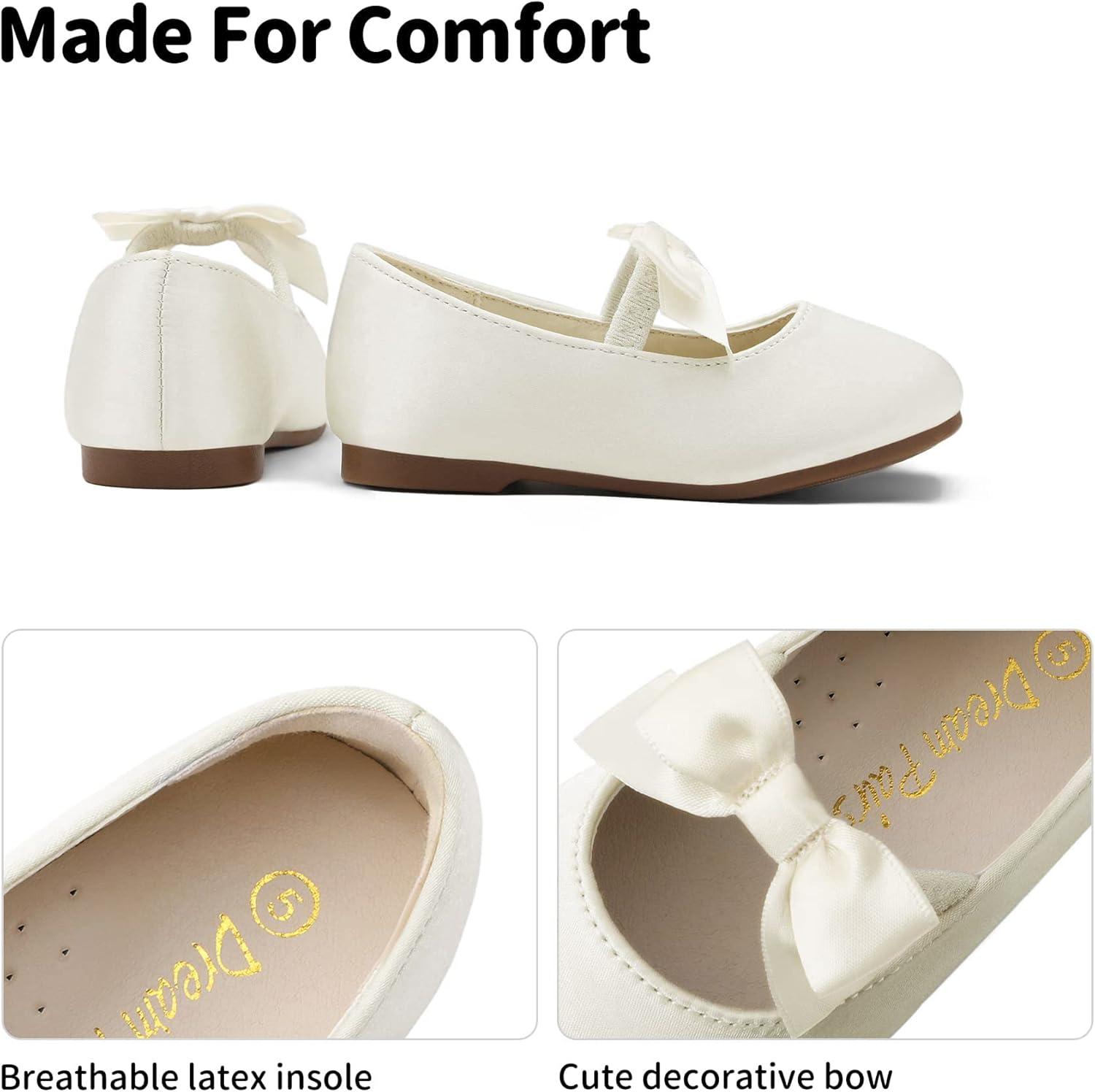 DREAM PAIRS Girls Dress Shoes Mary Jane Flower Girl Bow Ballet Flats for Wedding Party Toddler/Little Kid(Ivory)