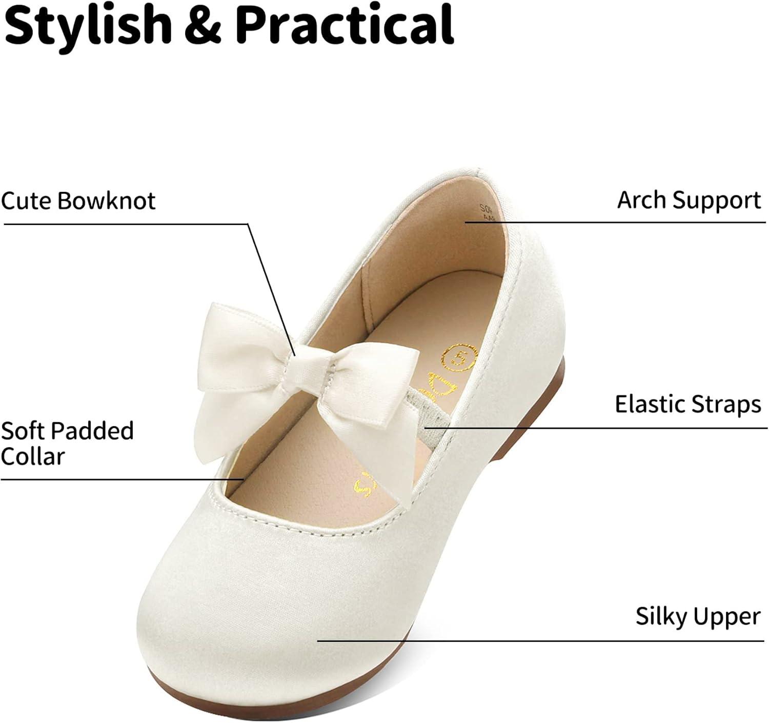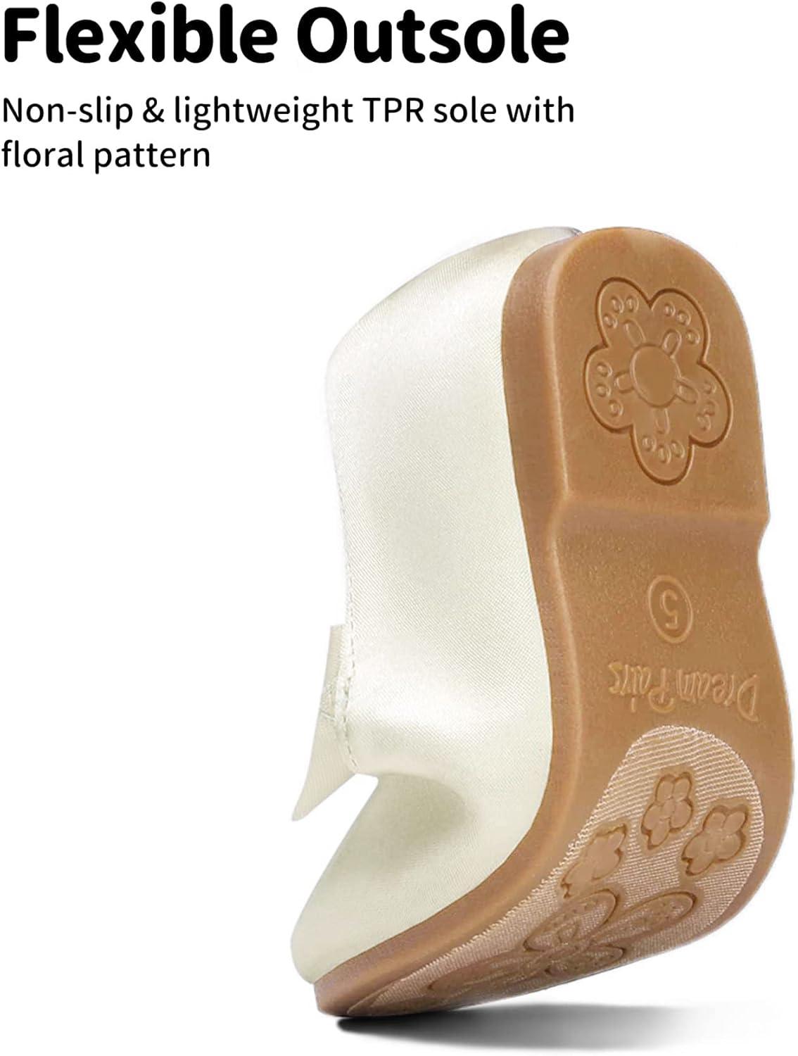 Your little princess will look and feel comfortable with a pair of this Dream Pairs girl's pearl bow ballet flat. Feature a beautiful satin fabric upper, satin bow embelished on elastic strap, and extra padding for comfort. Pick from one of the assorted colors and mix and match with her favorite legging or dress for an adorable style.