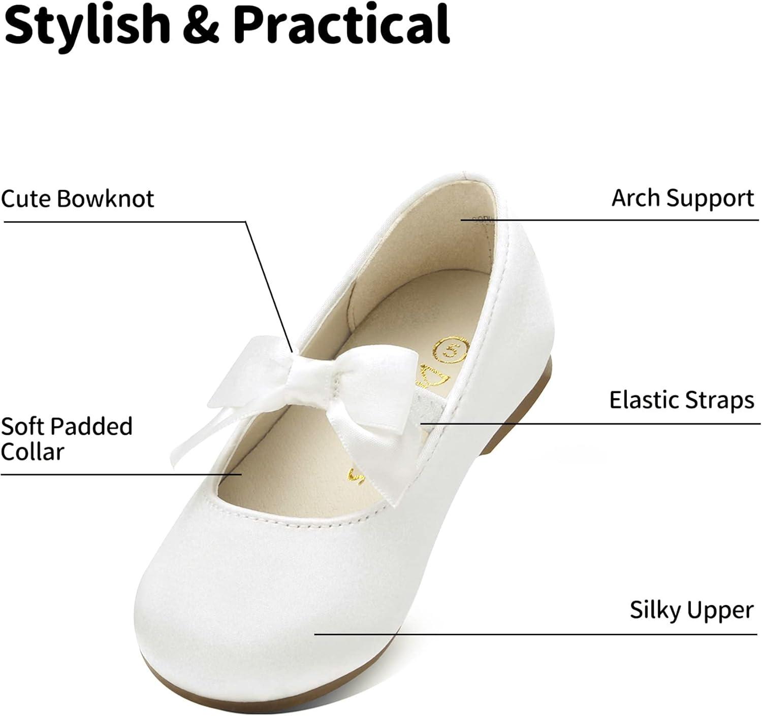 Your little princess will look and feel comfortable with a pair of this Dream Pairs girl's pearl bow ballet flat. Feature a beautiful satin fabric upper, satin bow embelished on elastic strap, and extra padding for comfort. Pick from one of the assorted colors and mix and match with her favorite legging or dress for an adorable style.