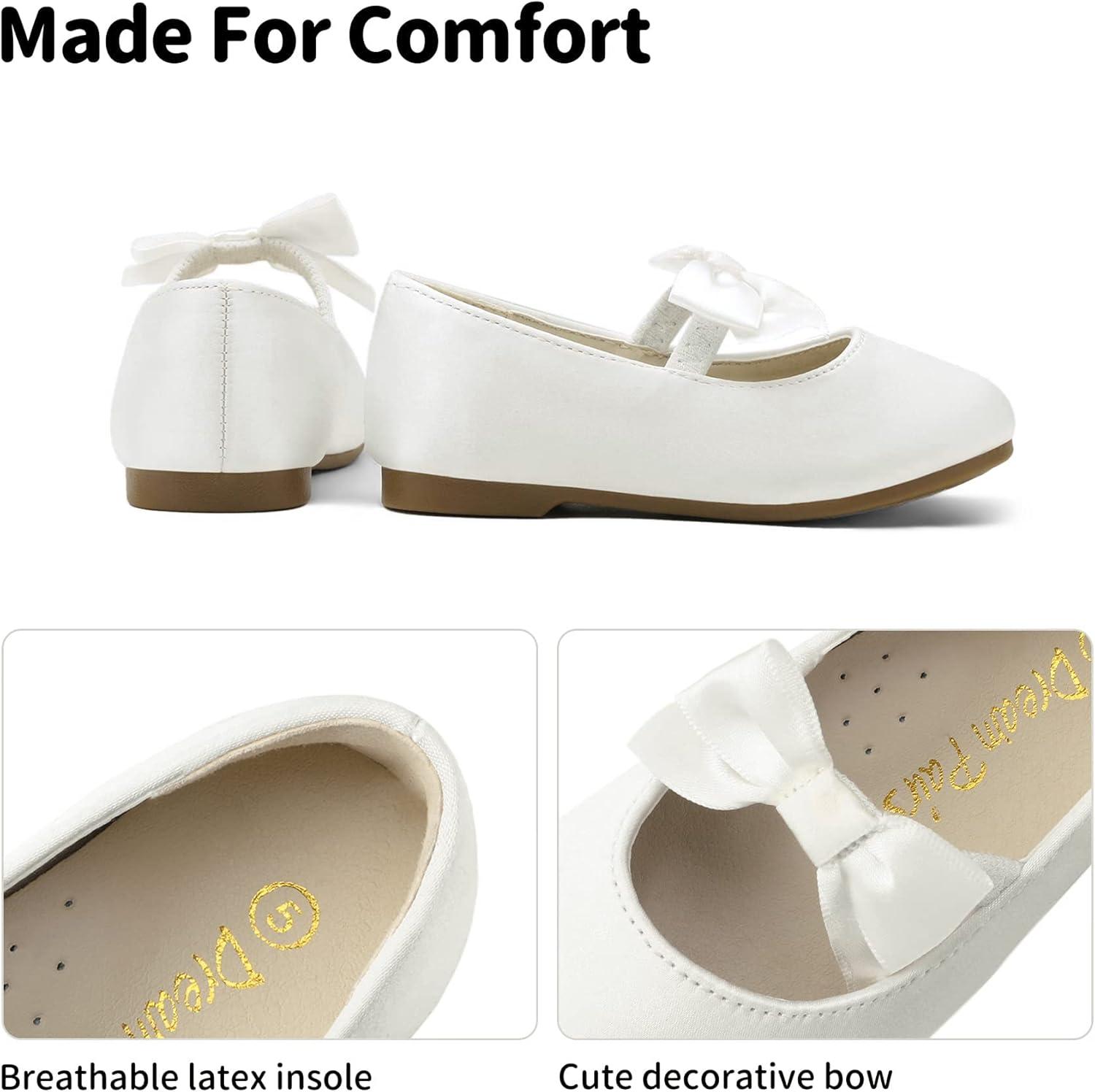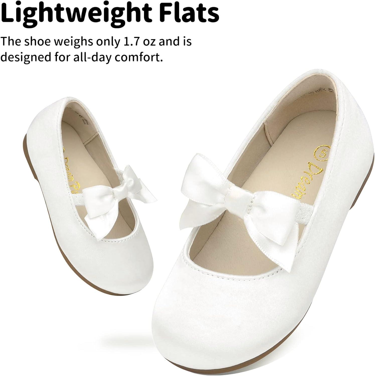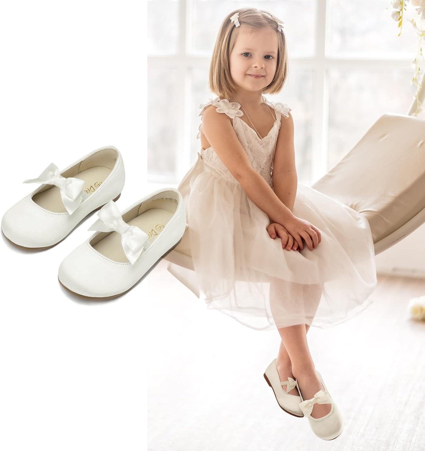 DREAM PAIRS Girls Dress Shoes Mary Jane Flower Girl Bow Ballet Flats for Wedding Party Toddler/Little Kid(Sophia-22-white)