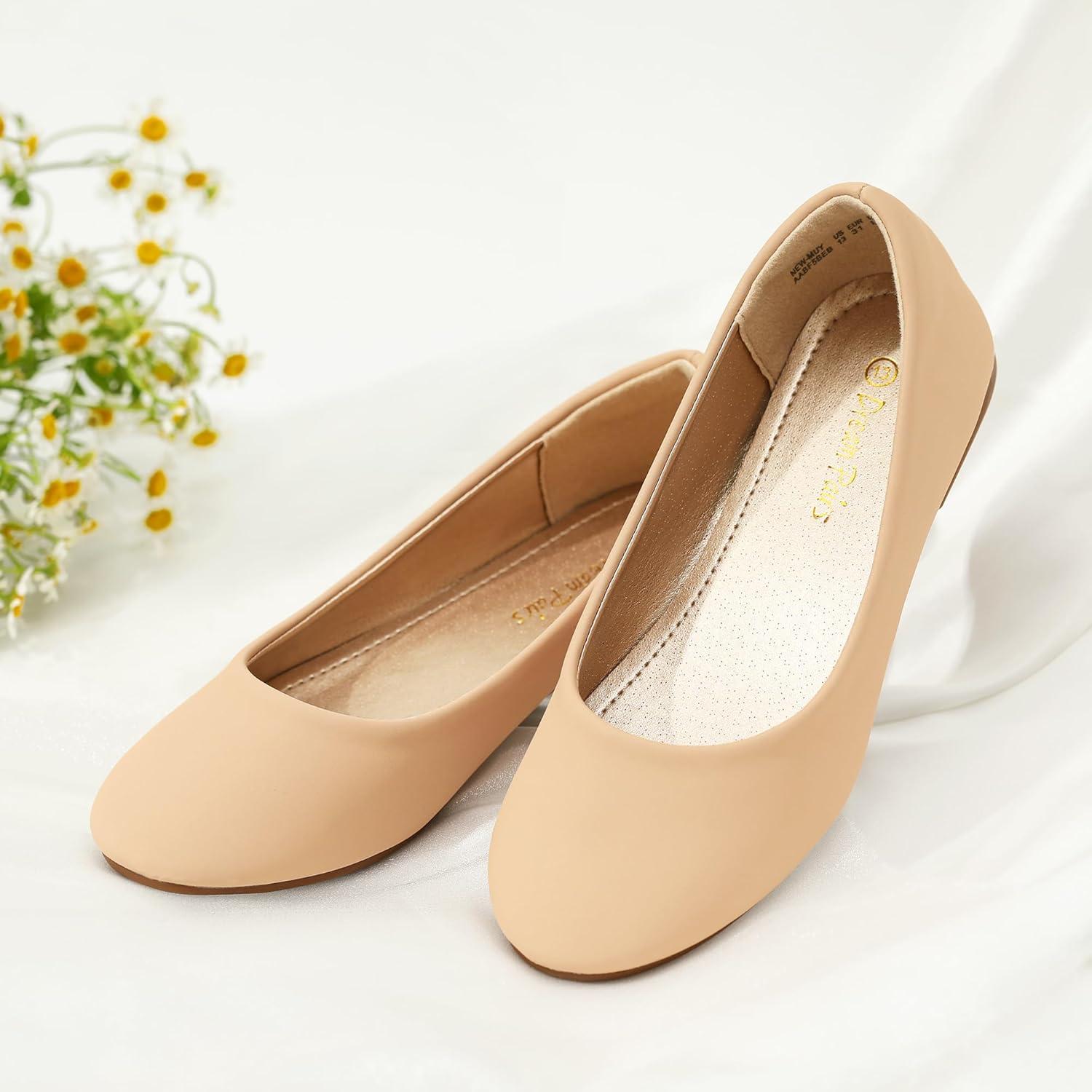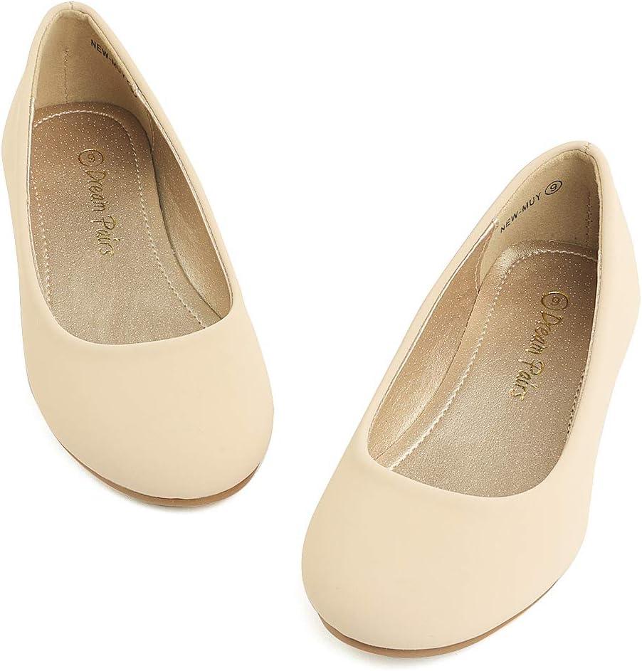 DREAM PAIRS Girls Dress Shoes Slip on Ballerina Flats for Wedding/Party(Nude/Nubuck)