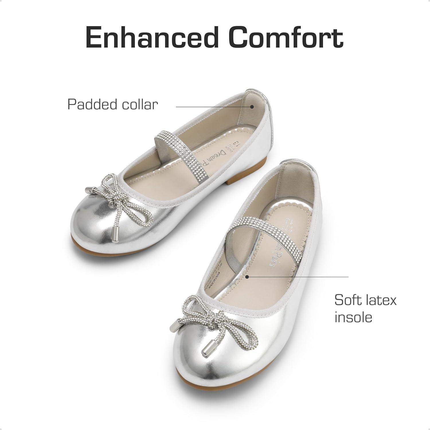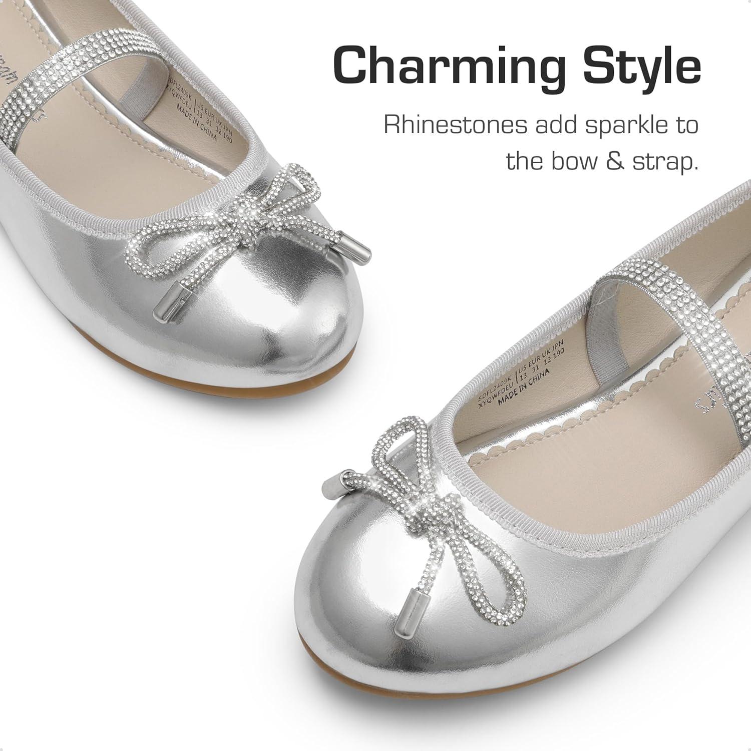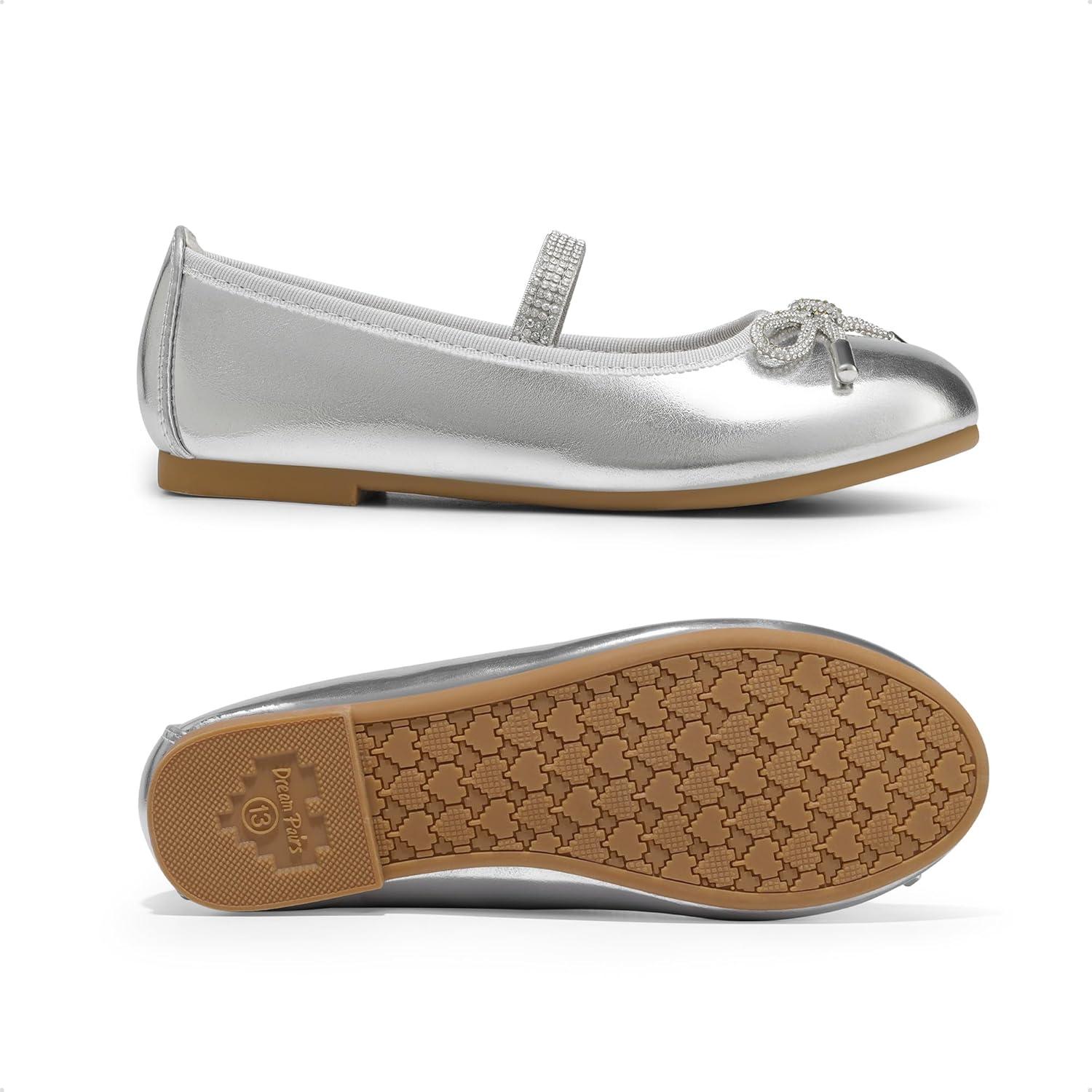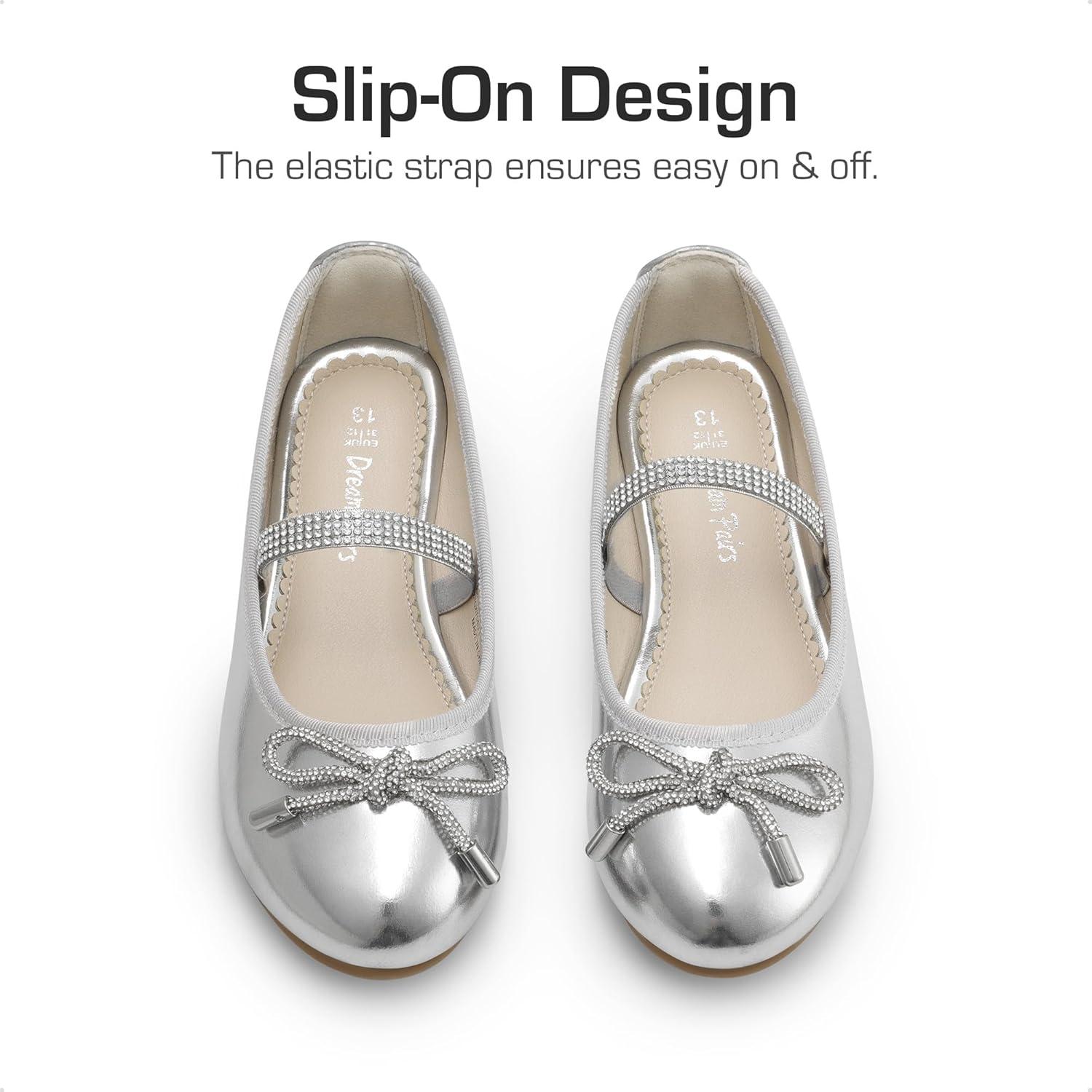 DREAM PAIRS Girls Dress Shoes Slip-on Flower Girl Ballet Flats for Party, Wedding, Performance, Prom, Graduation(Silver)