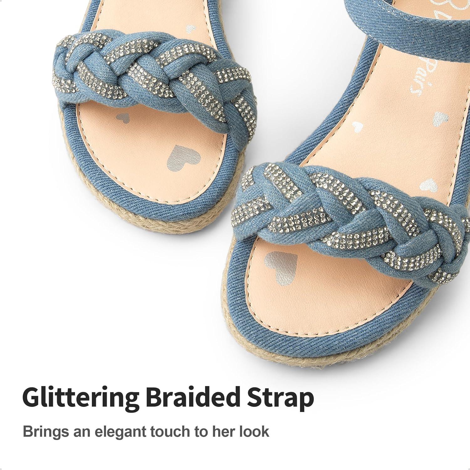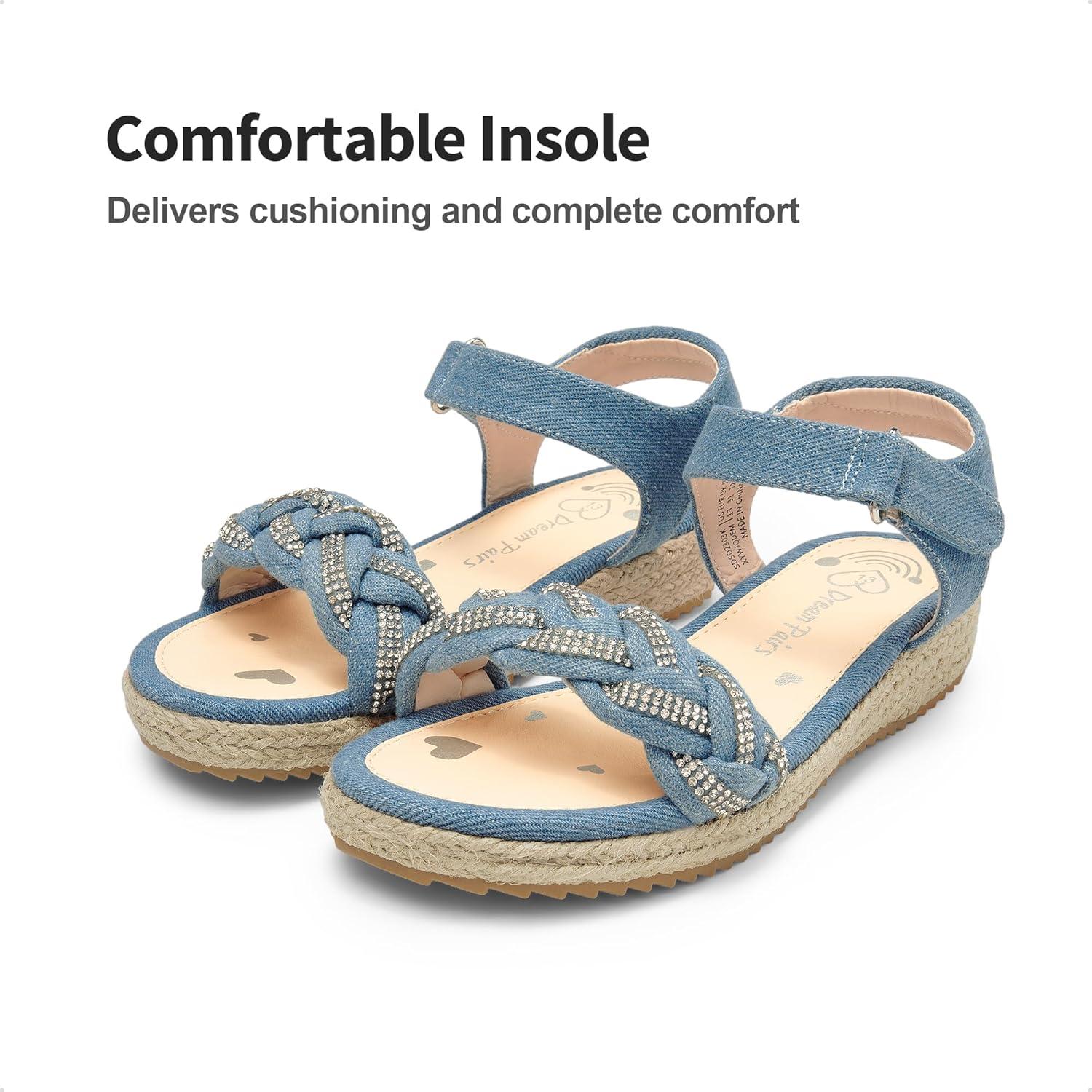 DREAM PAIRS Girls Espadrille Flatform Platform Wedge Open Toe Summer Sandals for Little Kid, Big Kid, Casual, Vacation or Formal Use(Denim Blue)