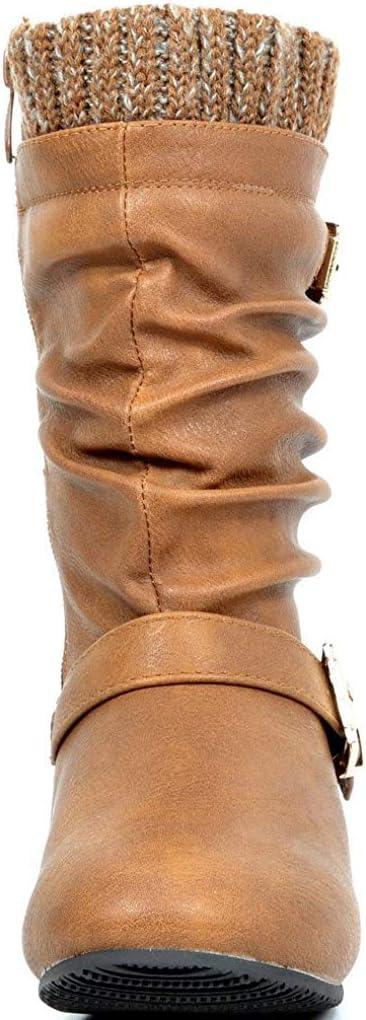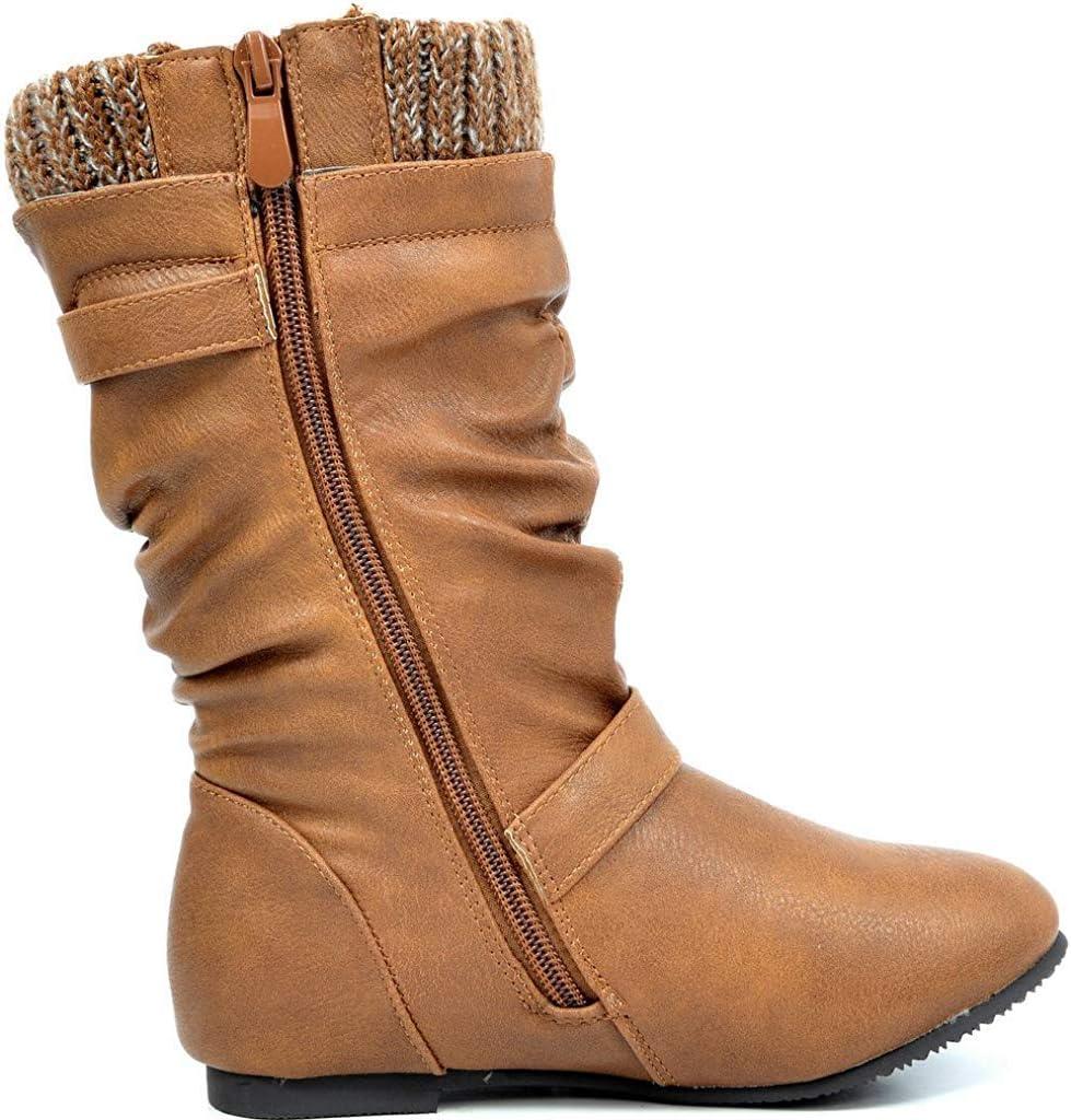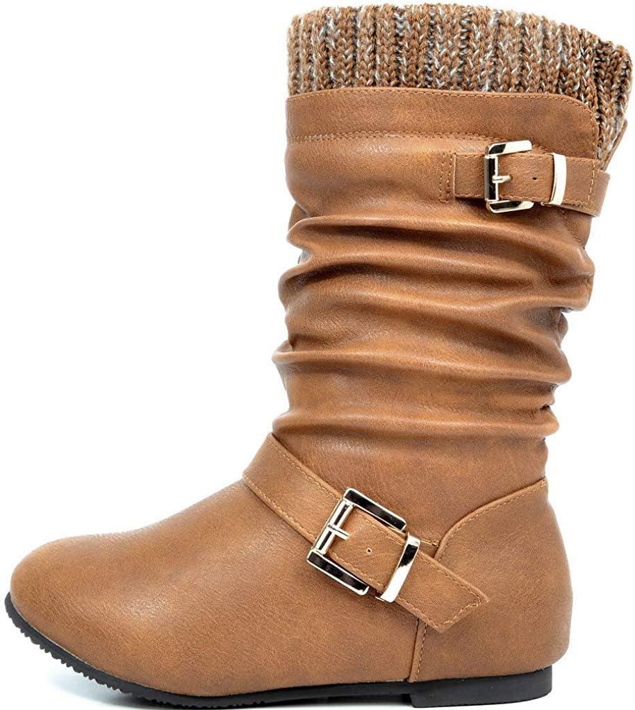 Your little angel will look very cute with a pair of this Dream Pairs girl's double buckles riding boots. These adorable knee high boots is featured with elastic knitted fabric upper, one adjustable buckle, warm faux fur lining, and lightweight rubber sole. Pick from one of the assorted colors and mix and match with her favorite legging and sweaters for an adorable style. Full size only, please order half size up for loose fit.