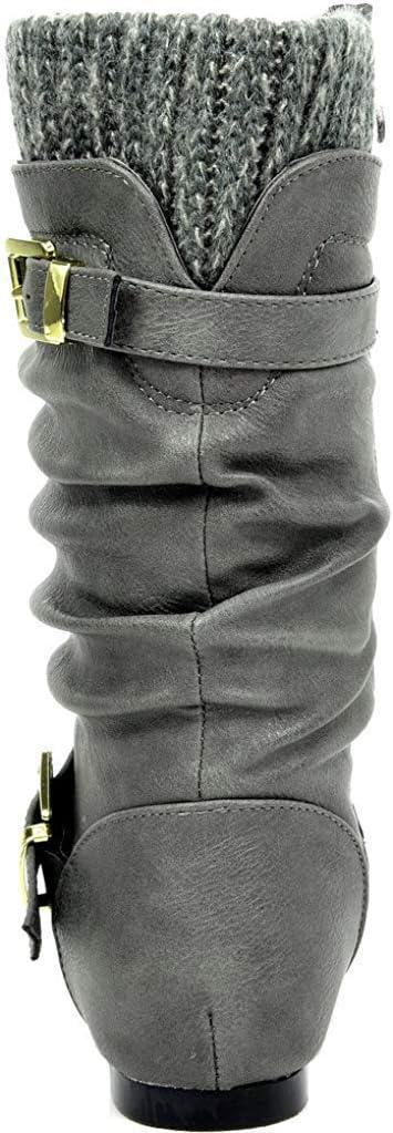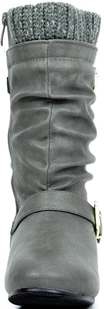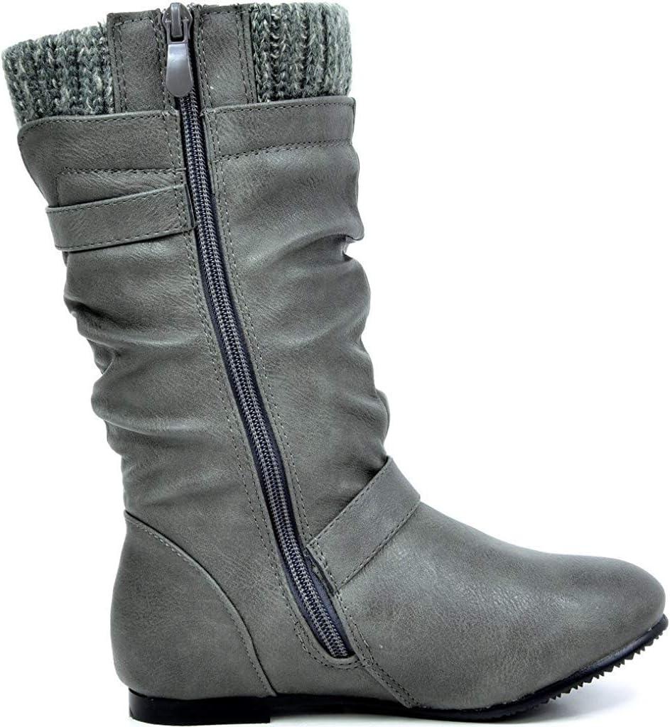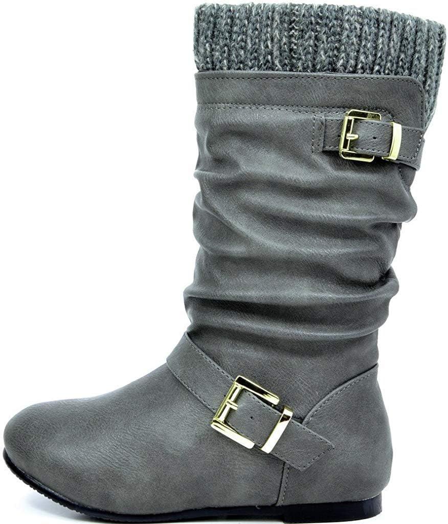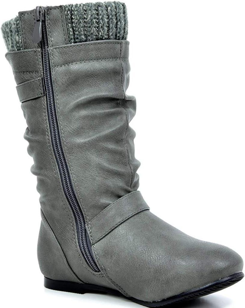 Your little angel will look very cute with a pair of this Dream Pairs girl's double buckles riding boots. These adorable knee high boots is featured with elastic knitted fabric upper, one adjustable buckle, warm faux fur lining, and lightweight rubber sole. Pick from one of the assorted colors and mix and match with her favorite legging and sweaters for an adorable style. Full size only, please order half size up for loose fit.