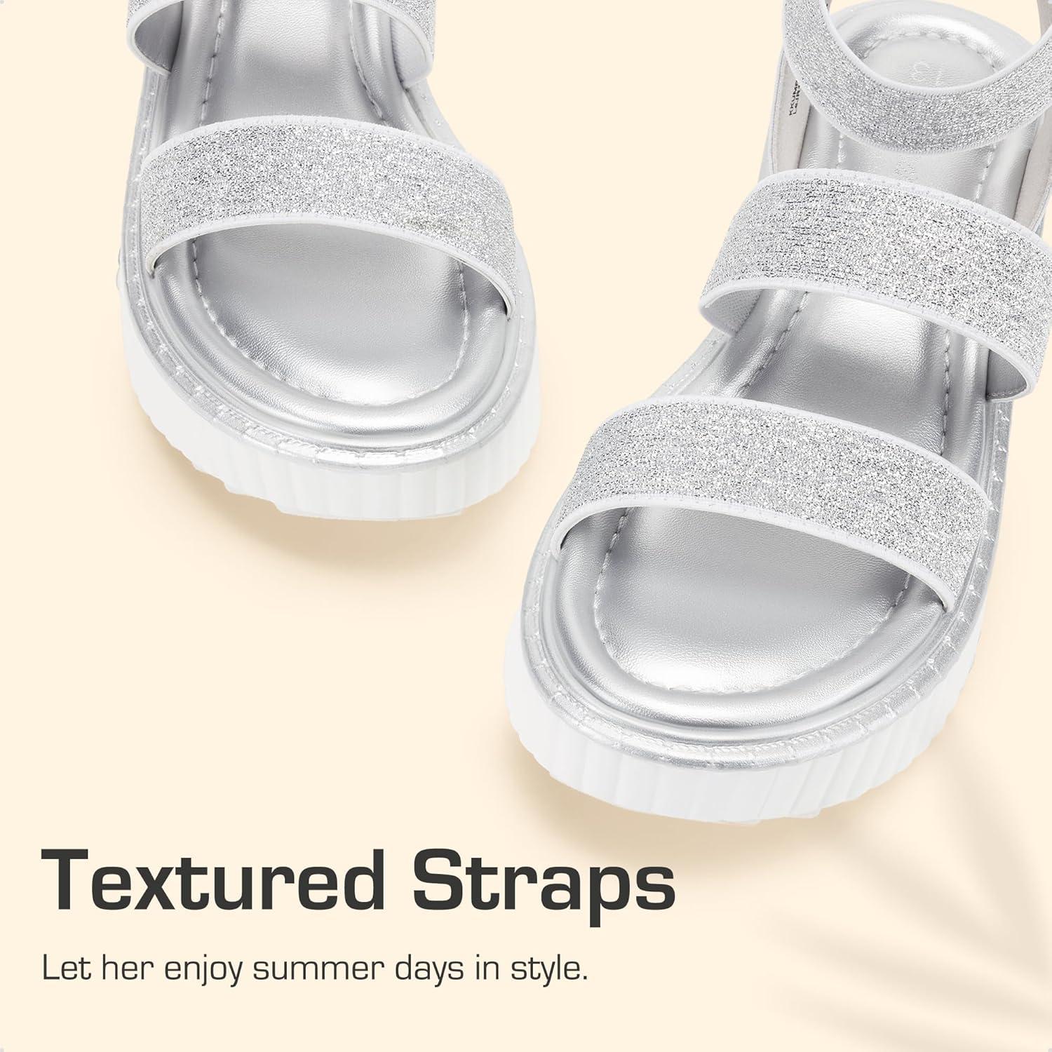 DREAM PAIRS Girls Flatform Wedge Open Toe Platform Summer Sandals with Buckle Ankle Strap for Little Kid/Big Kid(Silver)