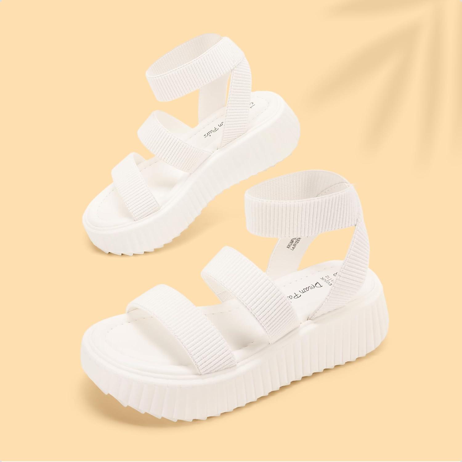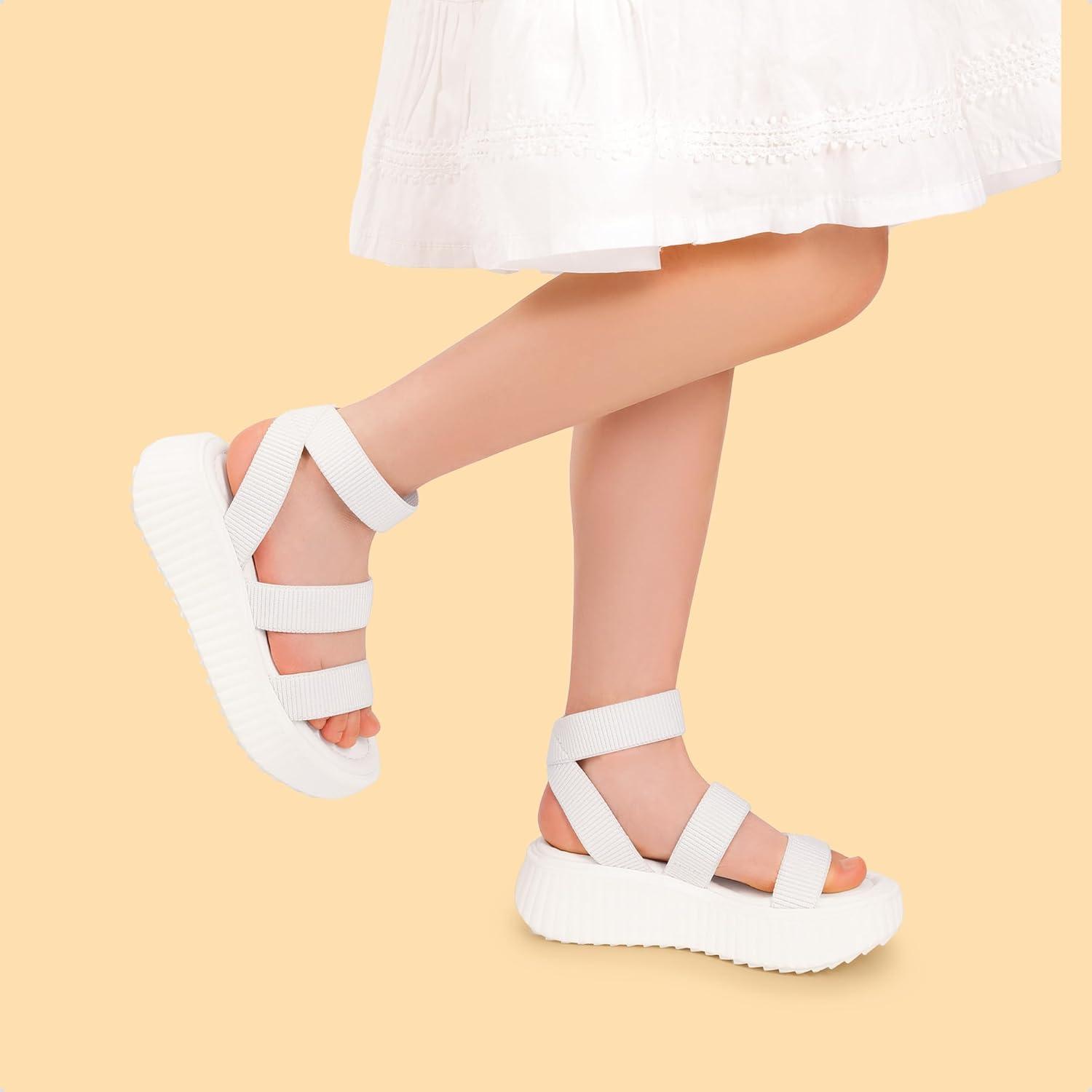 DREAM PAIRS Girls Flatform Wedge Open Toe Platform Summer Sandals with Buckle Ankle Strap for Little Kid/Big Kid(White)