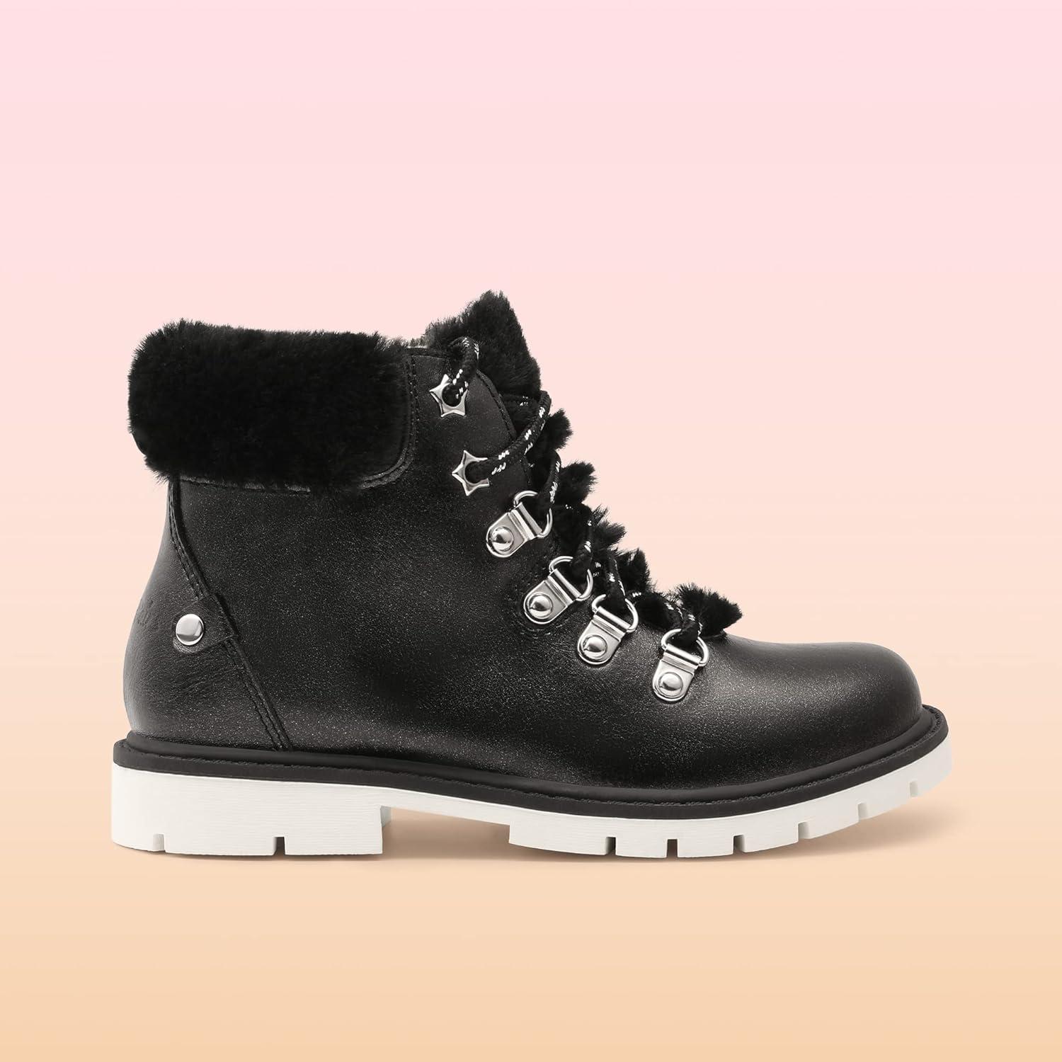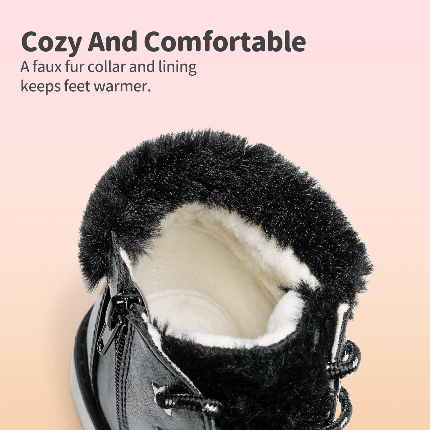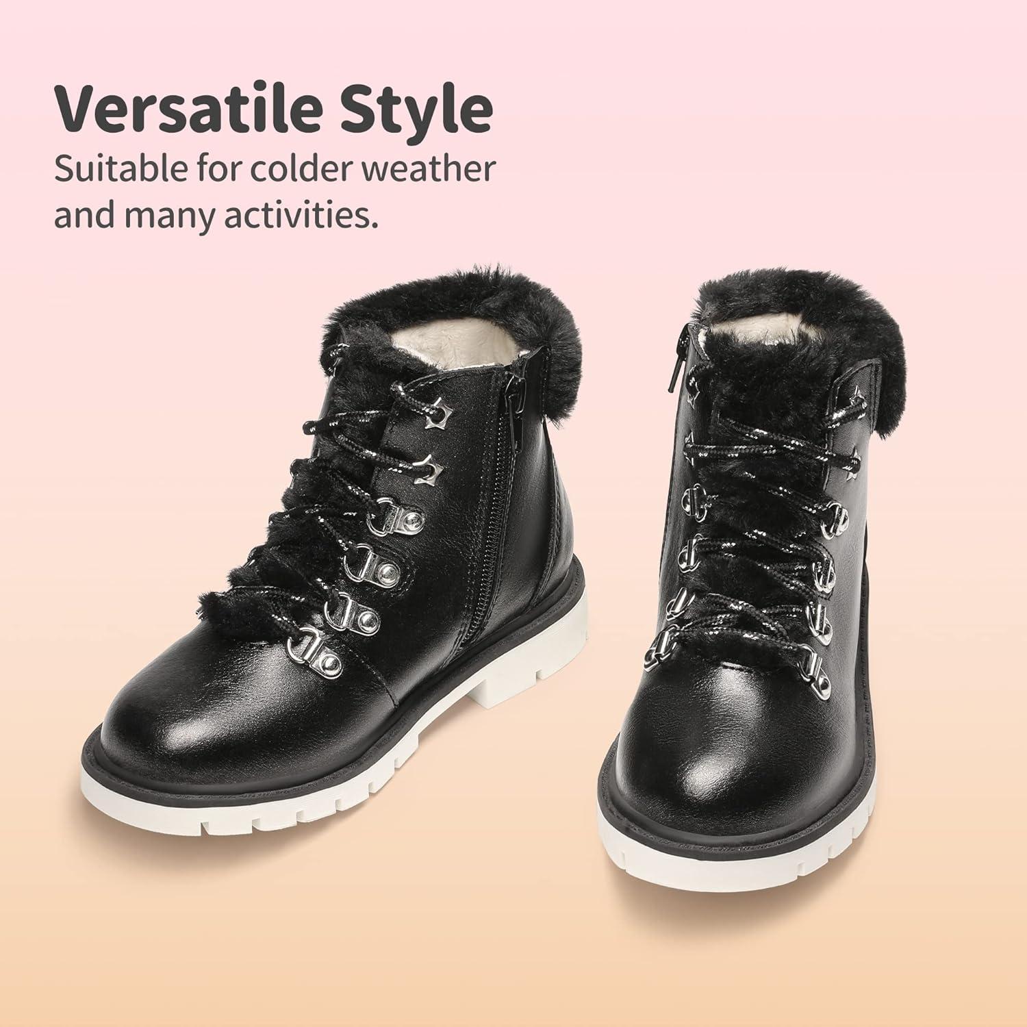 DREAM PAIRS Girls Kids Side Zipper Lace up Faux Fur Ankle Boots(Black/Pu)