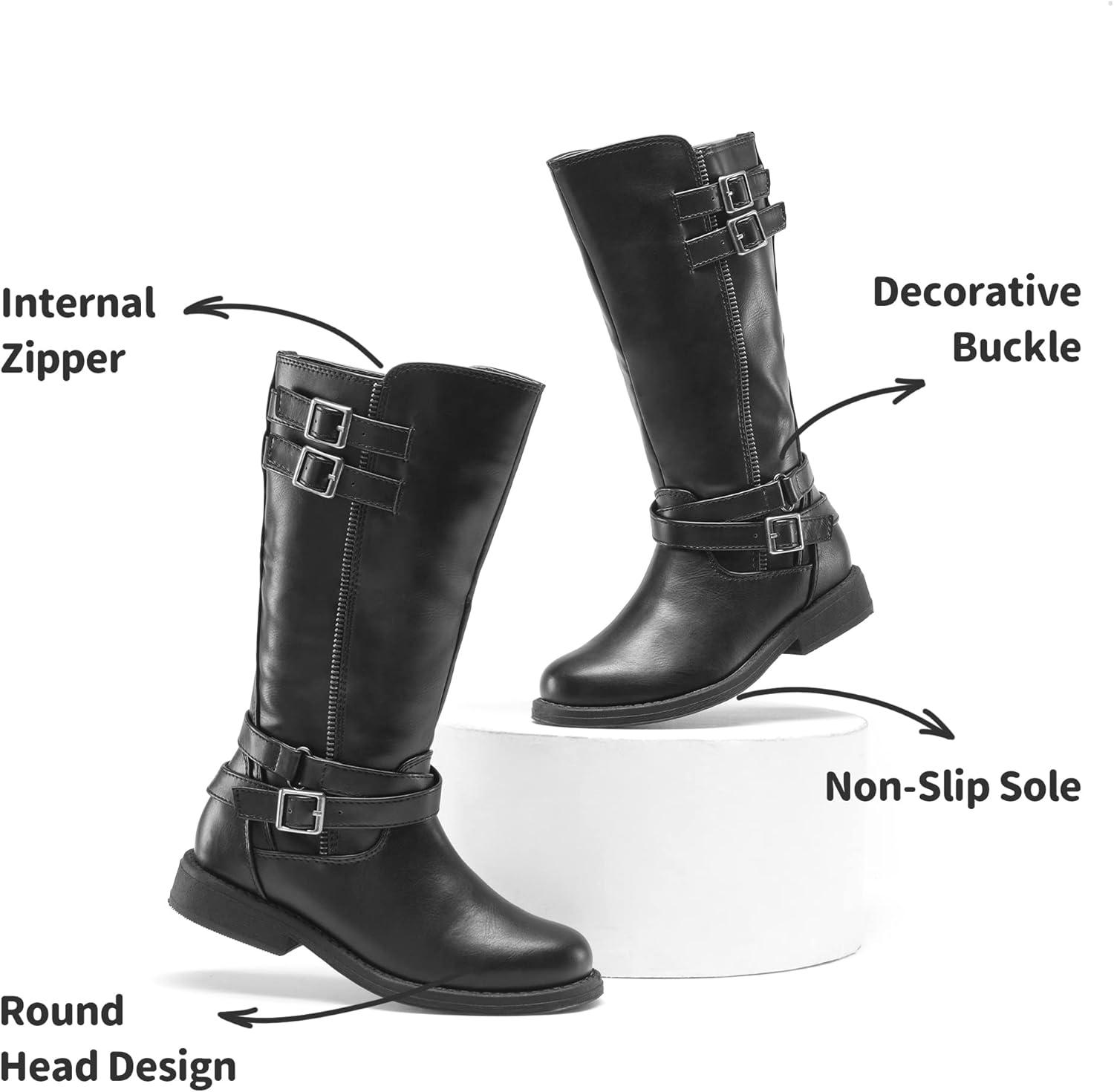 DREAM PAIRS Girls Knee High Fashion Riding Boots for Toddler/Little Kid/Big Kid(Black 03)